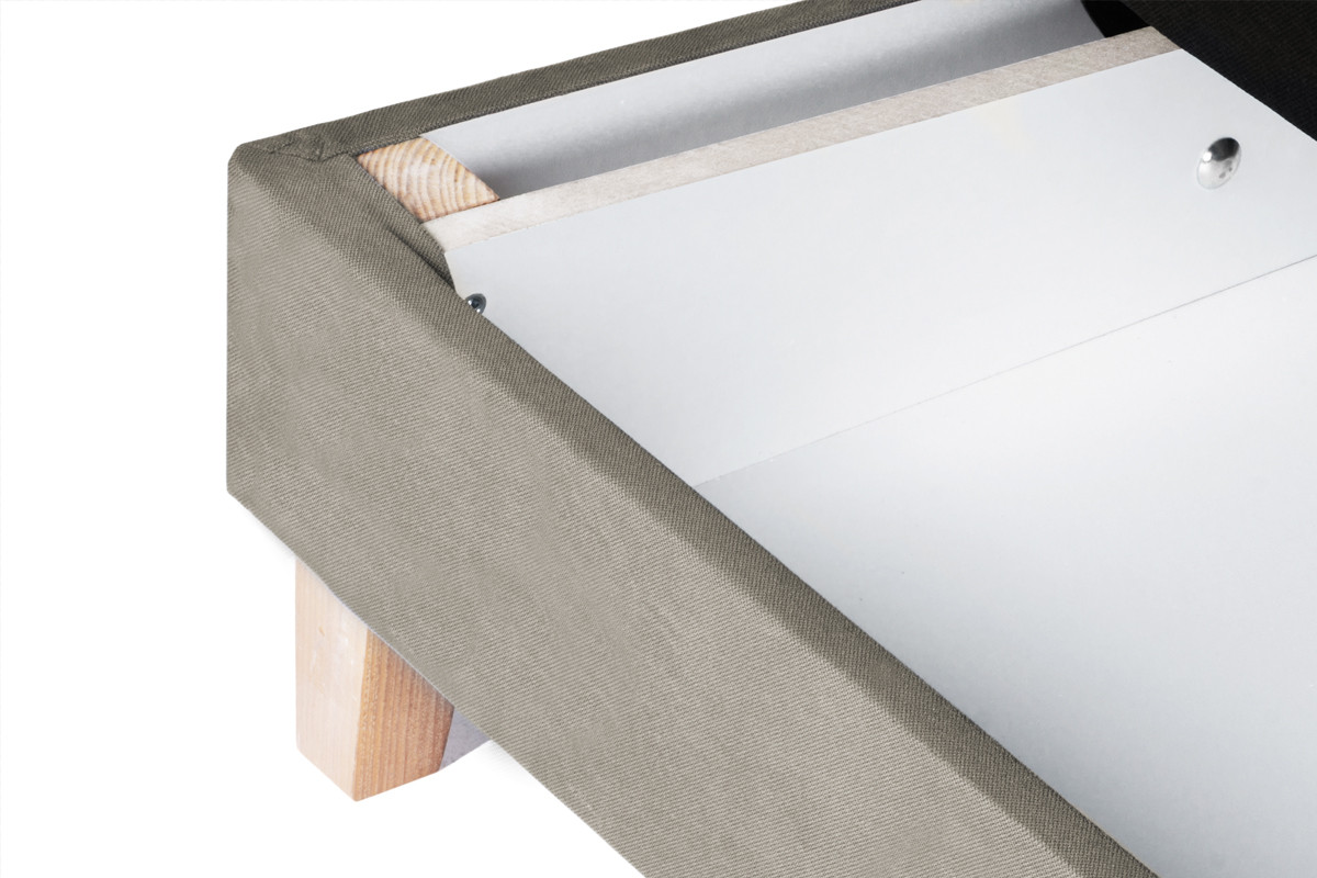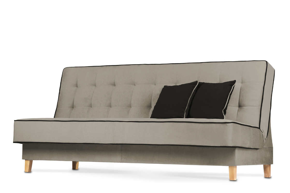 Świetnie sprawdza się jako kanapa do spania dla gości oraz podstawowe łóżko w mniejszych mieszkaniach, czy akademikach. Wykonane z pianki wysokoelastycznej i sprężyny falistej siedzisko zapewnia komfort użytkowania i doskonały wypoczynek. Pojemnik na pościel wyposażony został w otwory wentylacyjne. Nóżki są z drewna bukowego, a ich wysokość to 11 cm.