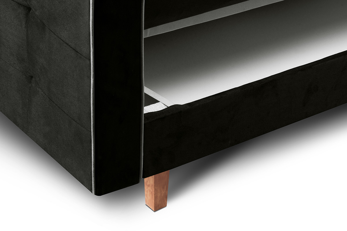 Zaprojektowana z myślą o codziennym komforcie, czarna sofa 3 osobowa z funkcją spania DOZER w nowoczesnym stylu zapewni wygodę i spokojny wypoczynek domownikom i gościom. Wyposażona w wygodny mechanizm, rozkłada się i składa błyskawicznie – ze stylowej sofy staje się dużym, ergonomicznym łóżkiem. Wykonane z pianki wysokoelastycznej i sprężyny falistej siedzisko gwarantuje swobodę i komfort odpoczynku.