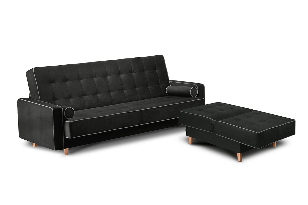 DOZER Czarna sofa 3 osobowa z funkcją spania