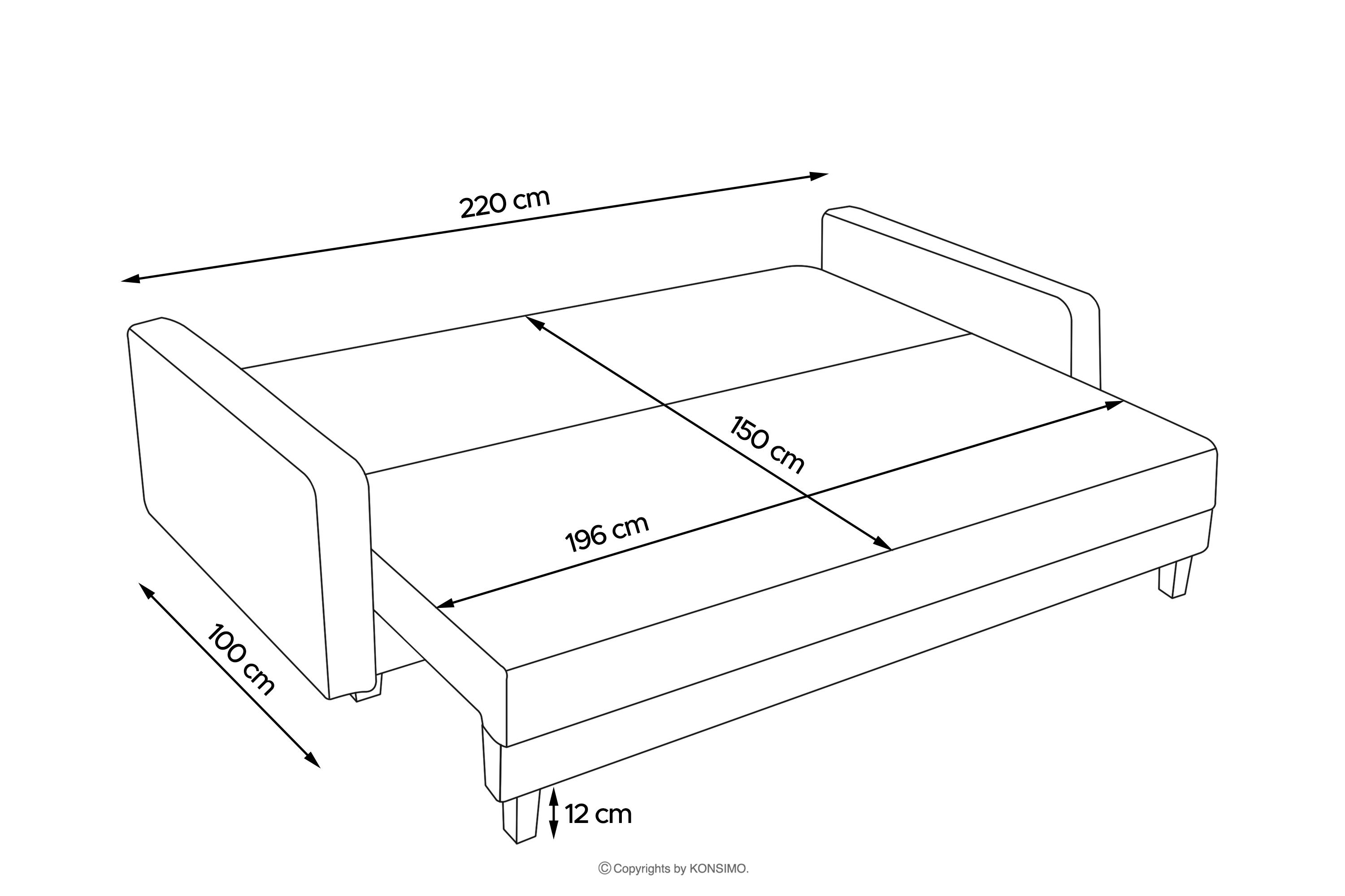 Skandynawska, trzyosobowa sofa ERISO to znakomita propozycja dla wszystkich ceniących sobie meble najwyższej jakości – odporne na uszkodzenia mechaniczne – przetarcia, rozdarcia, ale także zabrudzenia. Piękny kolor tapicerki i skandynawski styl idealnie dopełni każde wnętrze swoim niepowtarzalnym charakterem, który z pewnością zostanie doceniony nie tylko przez mieszkańców, ale także gości odwiedzających nasze mieszkanie. Drewniane nóżki i materiał najwyższej jakości dodają sofie Eriso elegancji i podkreślają jej skandynawski styl. To również mebel, który wkomponuje się w kolorową przestrzeń – dzięki uniwersalnemu kolorowi będzie stanowił świetny dodatek każdej aranżacji. Rozkładana sofa posiada dużą powierzchnię spania 196x150 (na której swobodnie mogą zasnąć dwie osoby) oraz pojemnik na pościel. Sofa Eriso jest idealnym wyborem do salonu, sypialni czy pokoju dziennego.