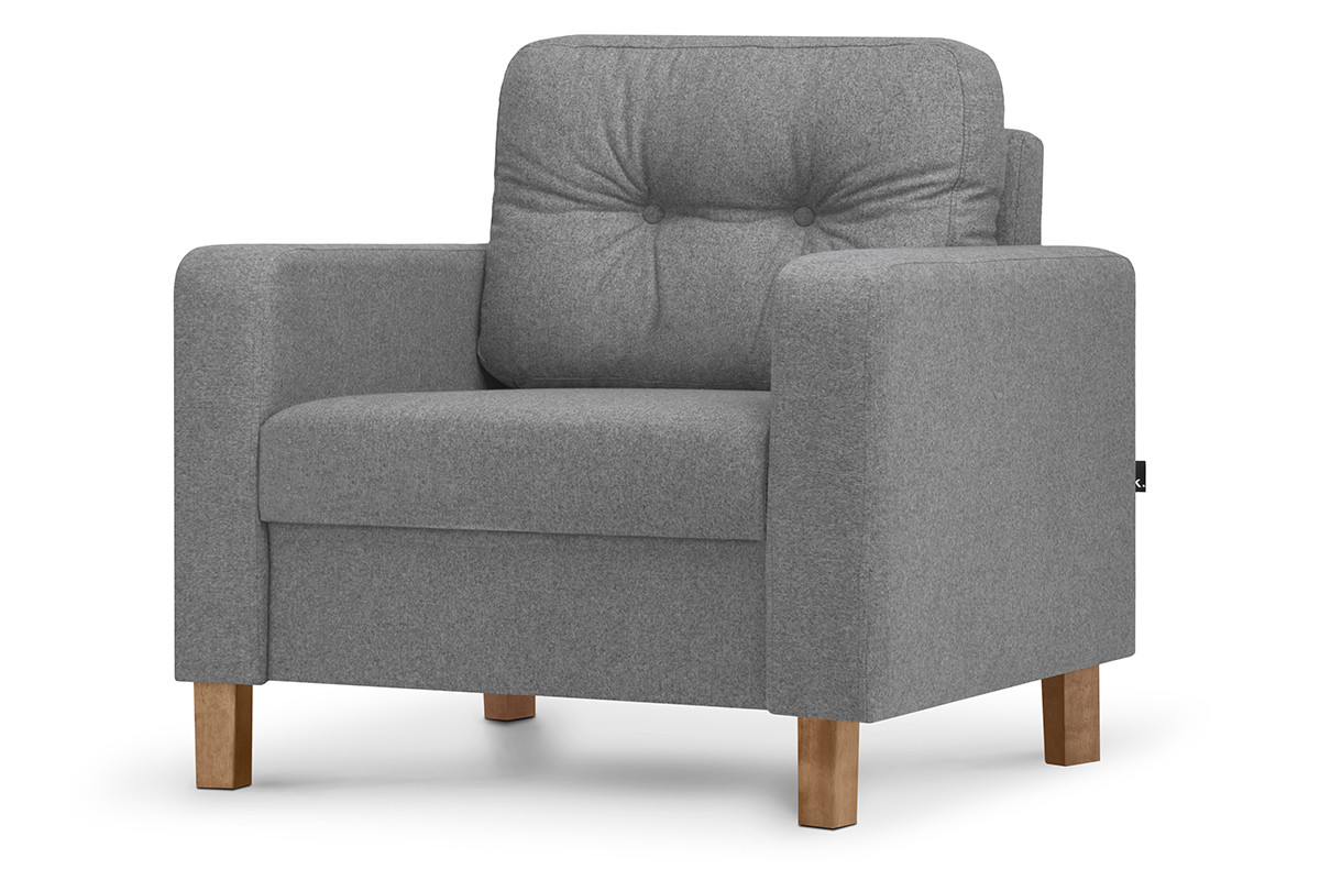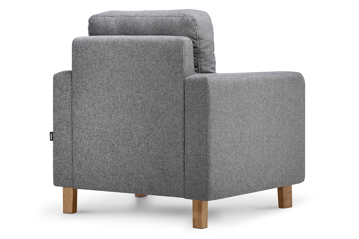 Komfort siedzenia zapewnia wytrzymała, profesjonalna sprężyna bonellowa oraz wypełnienie z pianki poliuretanowej. Mocny stelaż wspierają stabilne nóżki z naturalnego drewna bukowego. Wygodne boki na odpowiedniej wysokości zapewniają komfort i ergonomię. Ten minimalistyczny skandynawski fotel sprawdzi się samodzielnie lub w kompozycji z innymi meblami z kolekcji ERISO.
