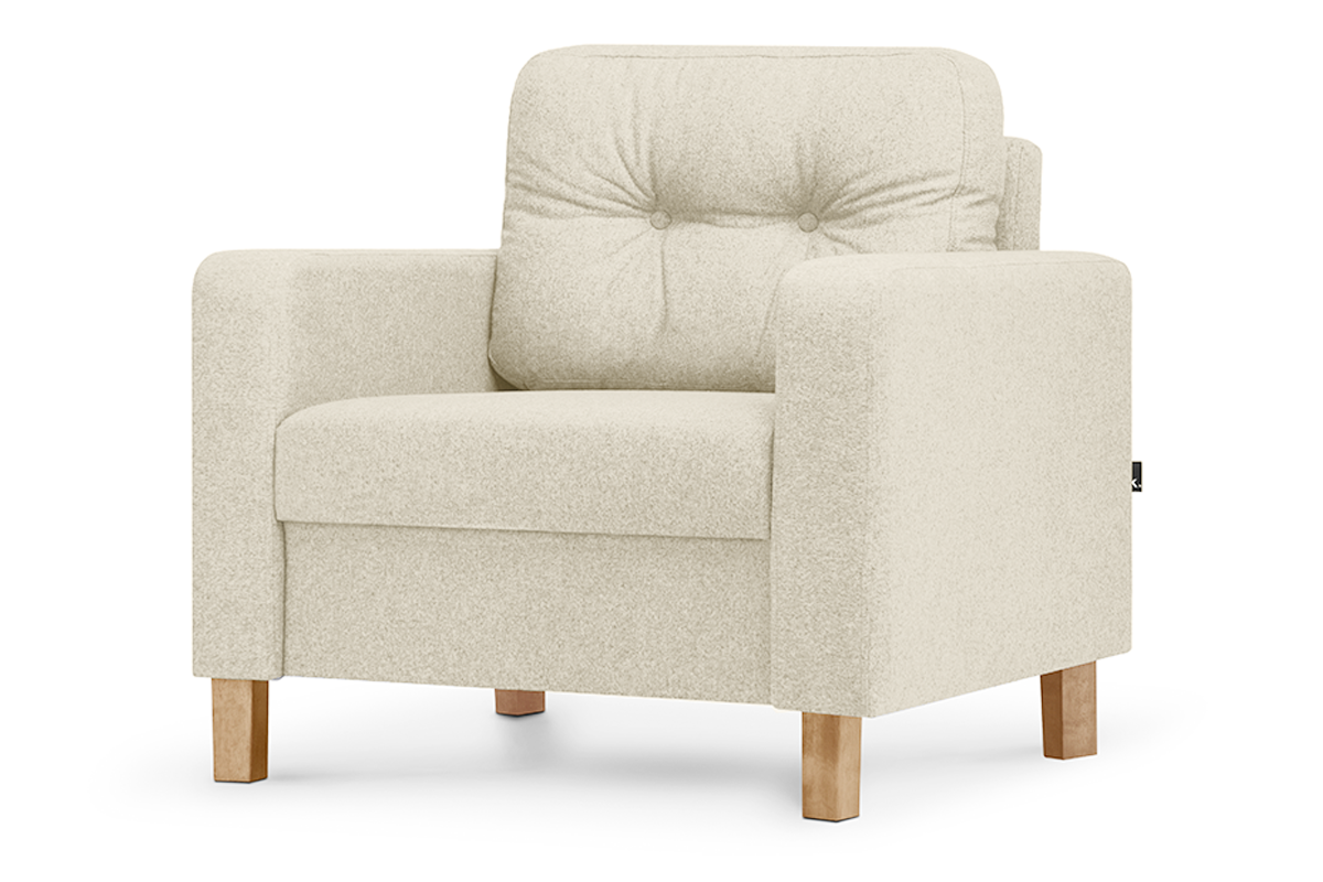 Jeśli cenisz sobie ponadczasowe rozwiązania i styl z klasycznymi wzorami, fotel ERISO na drewnianej podstawie spełni Twoje oczekiwania. Kształty inspirowane stylem skandynawskim oraz ozdobne guziki na oparciu przyciągają uwagę i dodają charakteru wnętrzu. Sprawiają również, że modele świetnie prezentują się zarówno w wersji tradycyjnej, jak i nowoczesnej. Elegancki, kremowy odcień to esencja dobrego smaku i jednocześnie baza wielu ciekawych połączeń. Jest to idealny fotel do salonu, który zapewnia doskonały komfort wypoczynku dzięki odpowiednio wyprofilowanemu oparciu i podłokietnikom.