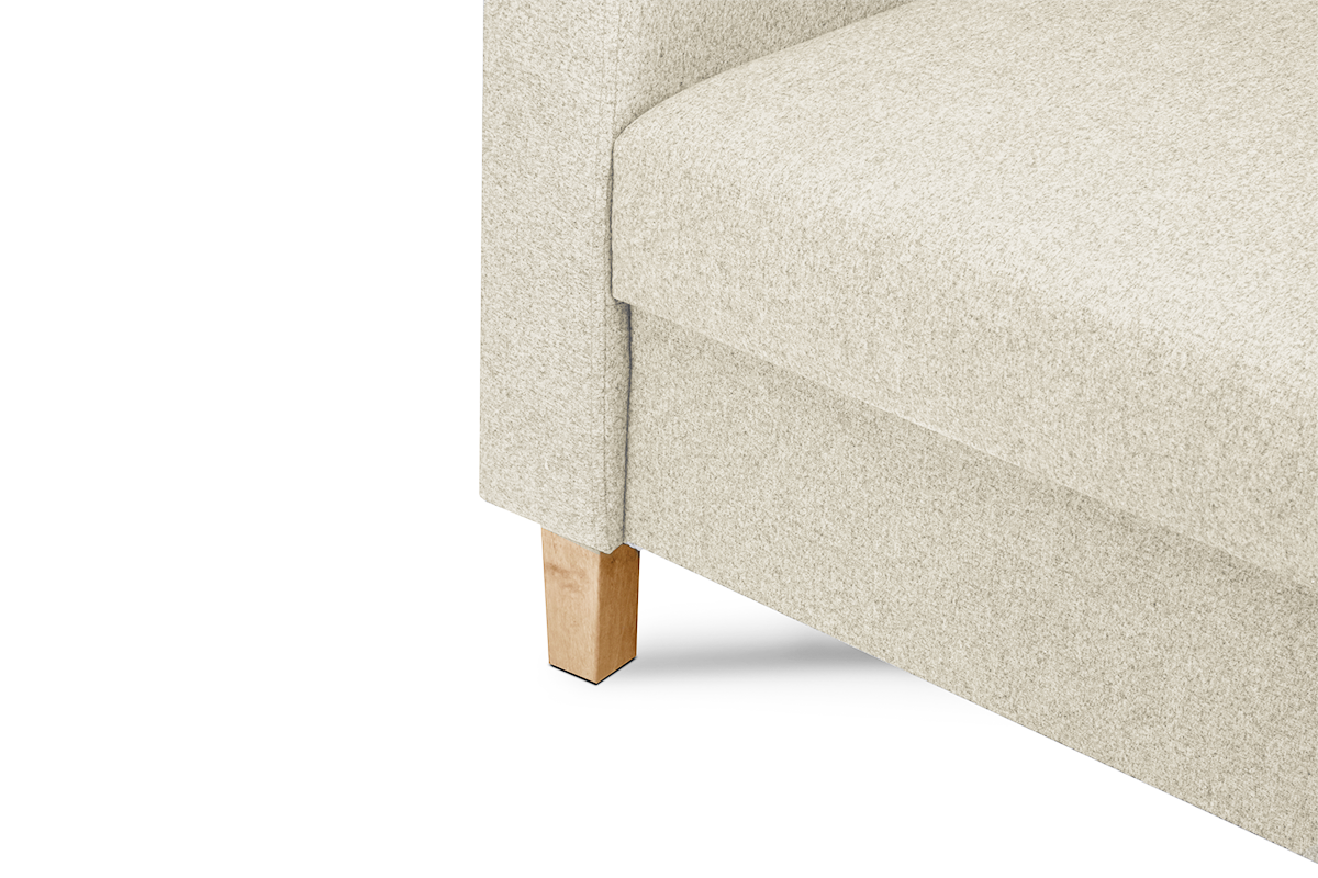 Komfort siedzenia zapewnia wytrzymała, profesjonalna sprężyna bonellowa oraz wypełnienie z pianki poliuretanowej. Mocny stelaż wspierają stabilne nóżki z naturalnego drewna bukowego. Wygodne boki na odpowiedniej wysokości zapewniają komfort i ergonomię. Ten minimalistyczny skandynawski fotel sprawdzi się samodzielnie lub w kompozycji z innymi meblami z kolekcji ERISO.