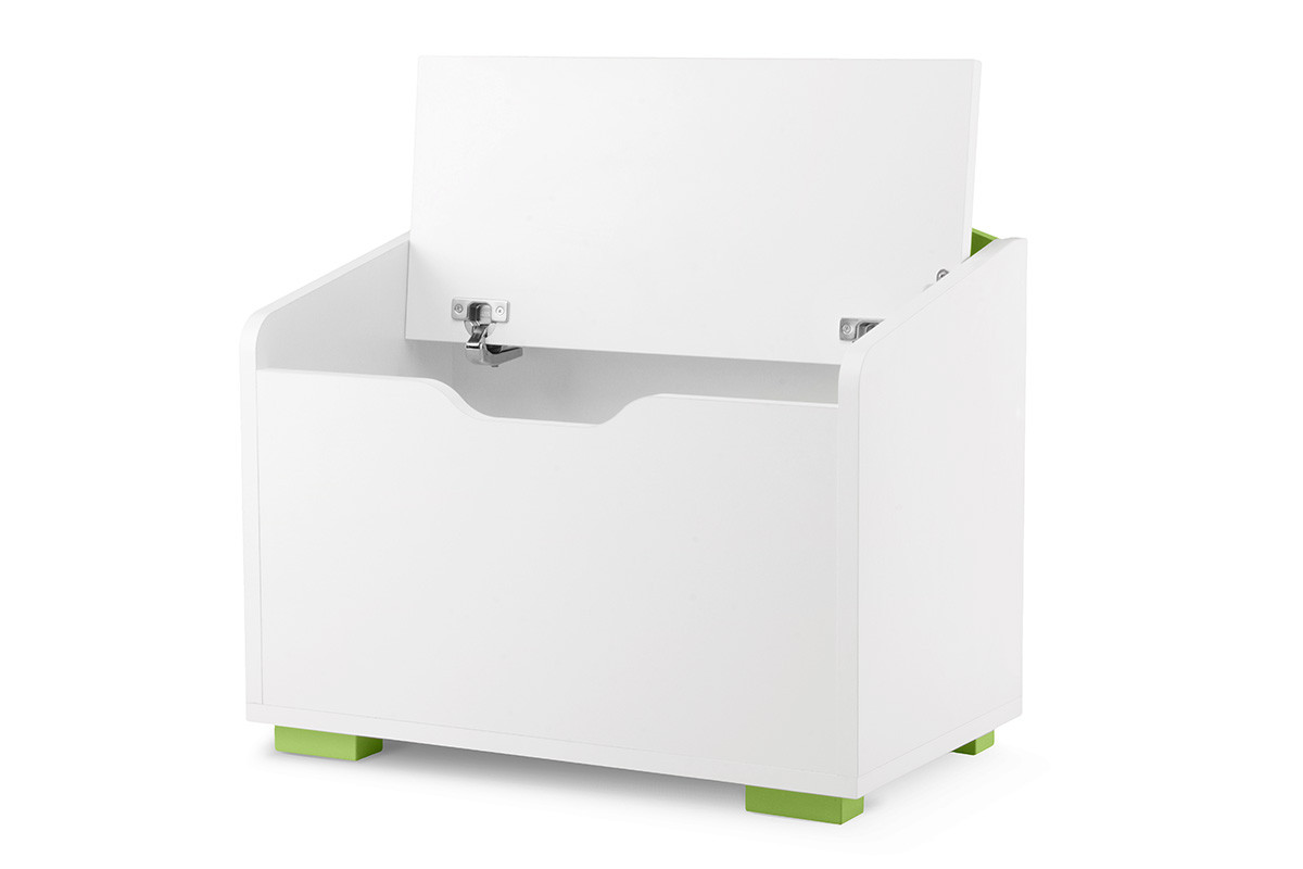 Biały pojemnik na zabawki wykonany został z grubej, solidnej płyty. Obrzeża ABS i fazowanie na krawędziach gwarantują bezpieczeństwo podczas codziennego użytkowania. To wyjątkowo praktyczne rozwiązanie, które trafi w potrzeby zarówno młodszych, jak i starszych dzieci.