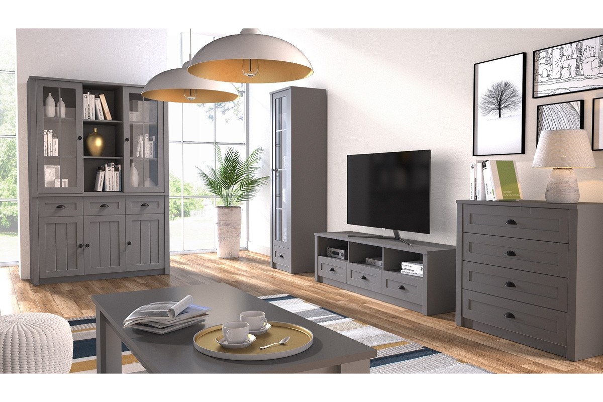 LEMAS zobacz całą kolekcję Komoda z witryną styl prowansalski szara- kolor szary