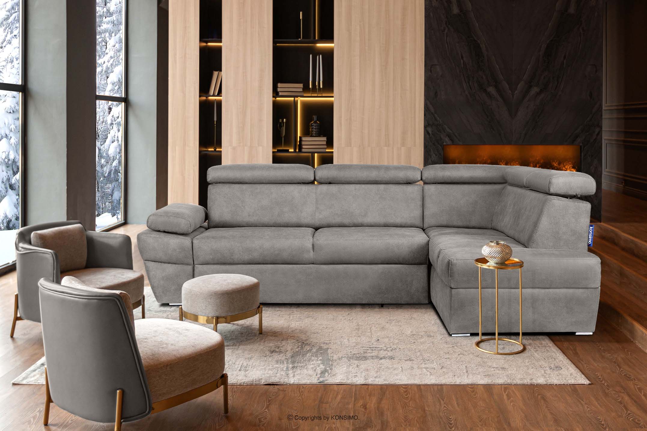 dla produktu Narożnik z funkcją spania w tkaninie skóropodobnej stalowy prawy