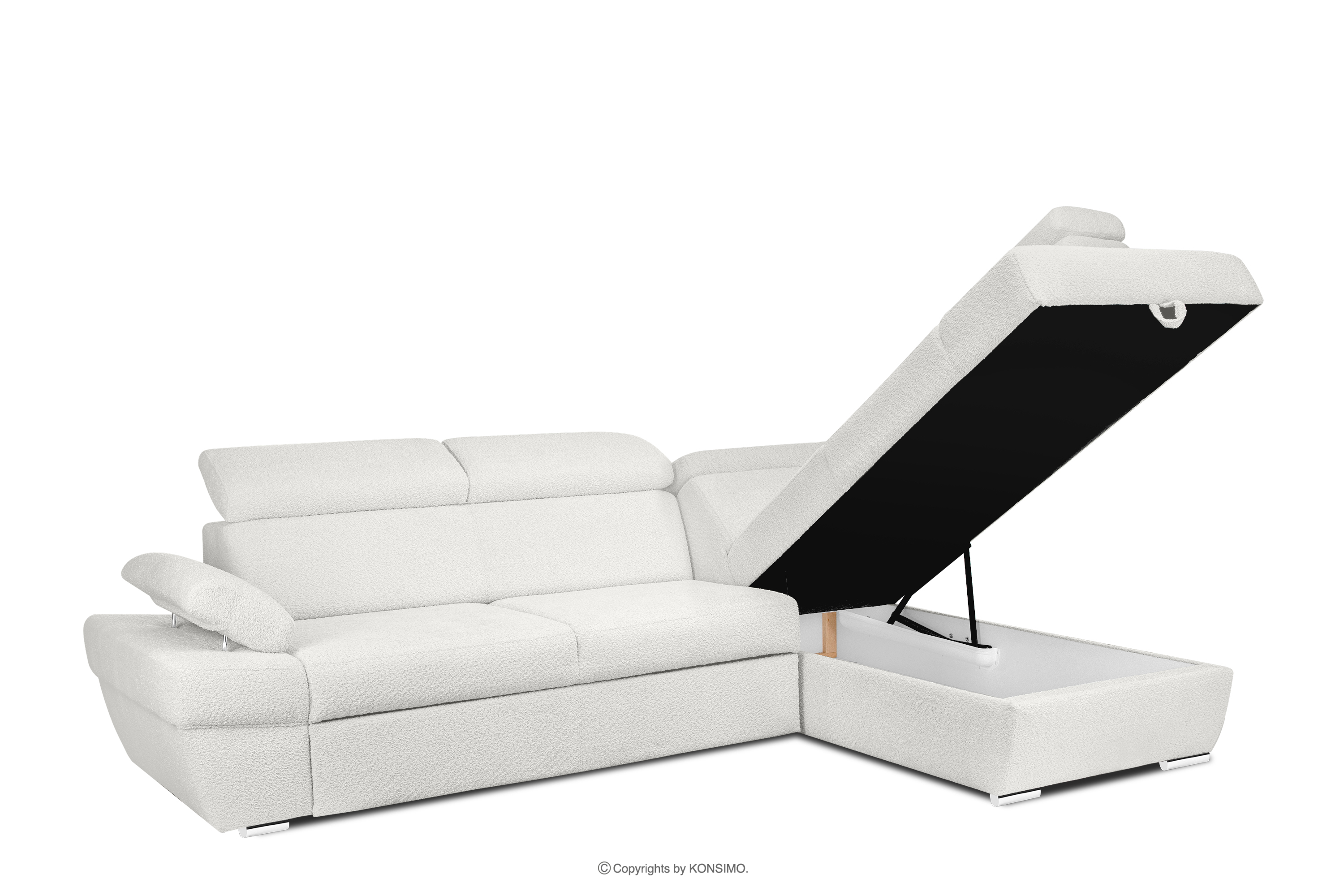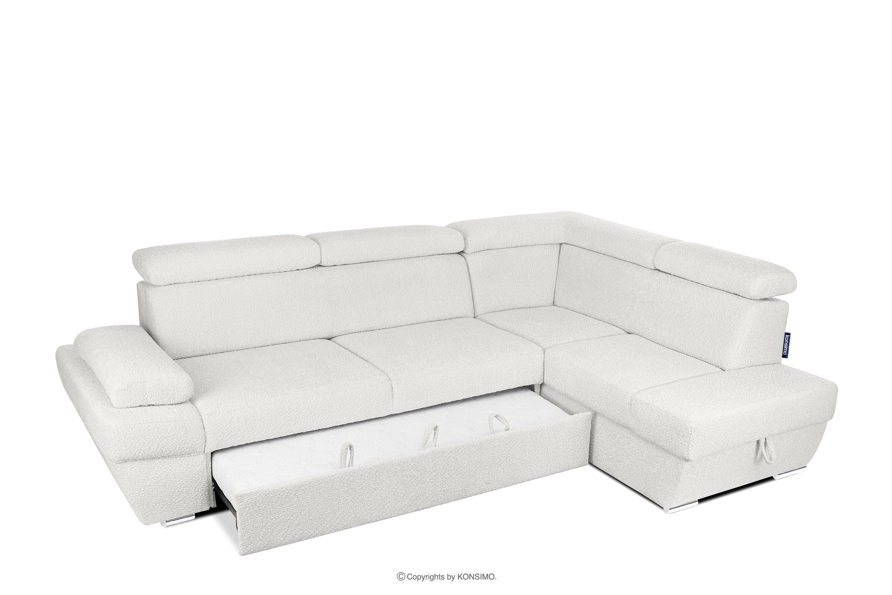 RATLO Rozkładany narożnik baranek z pojemnikiem na pościel kremowy prawy