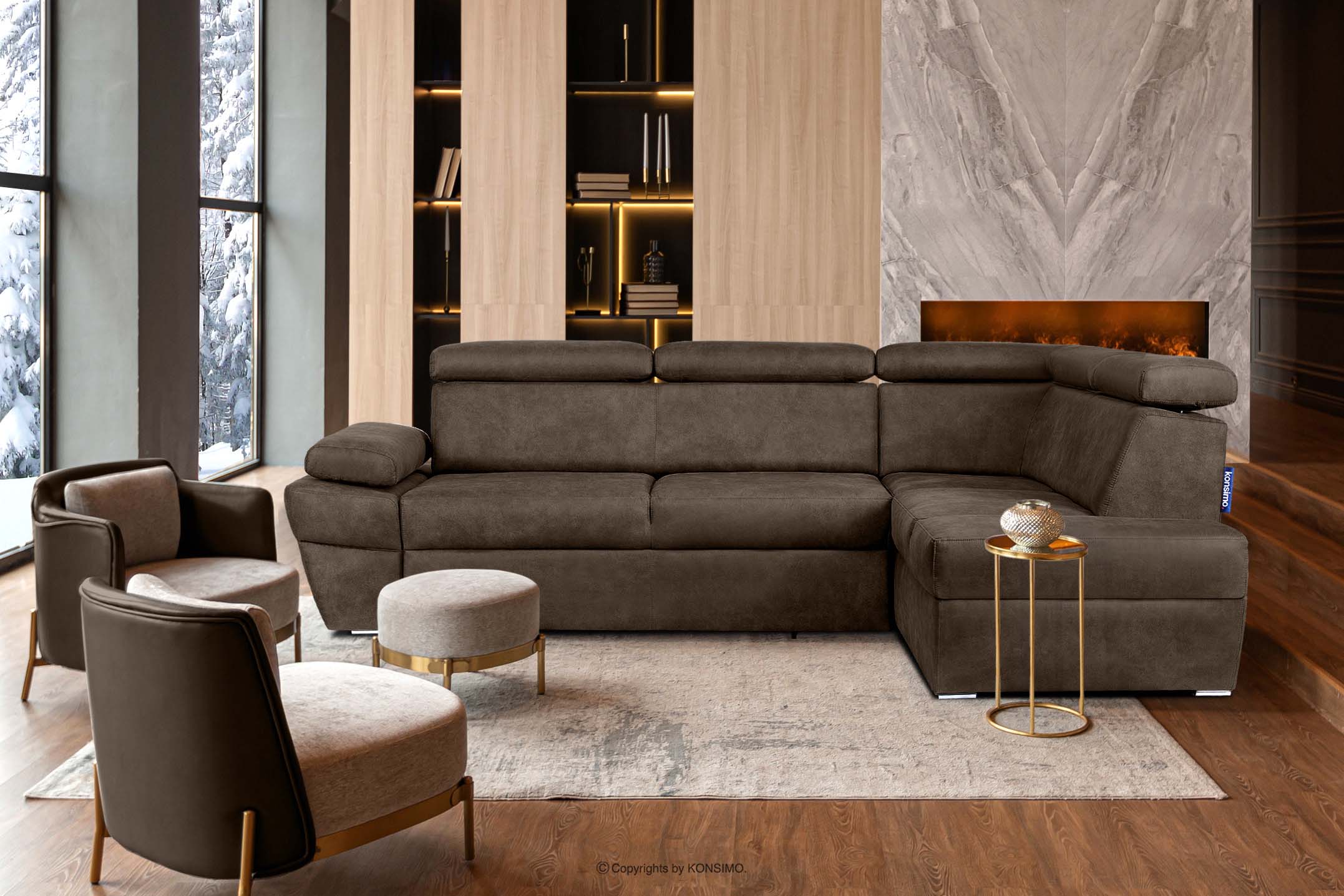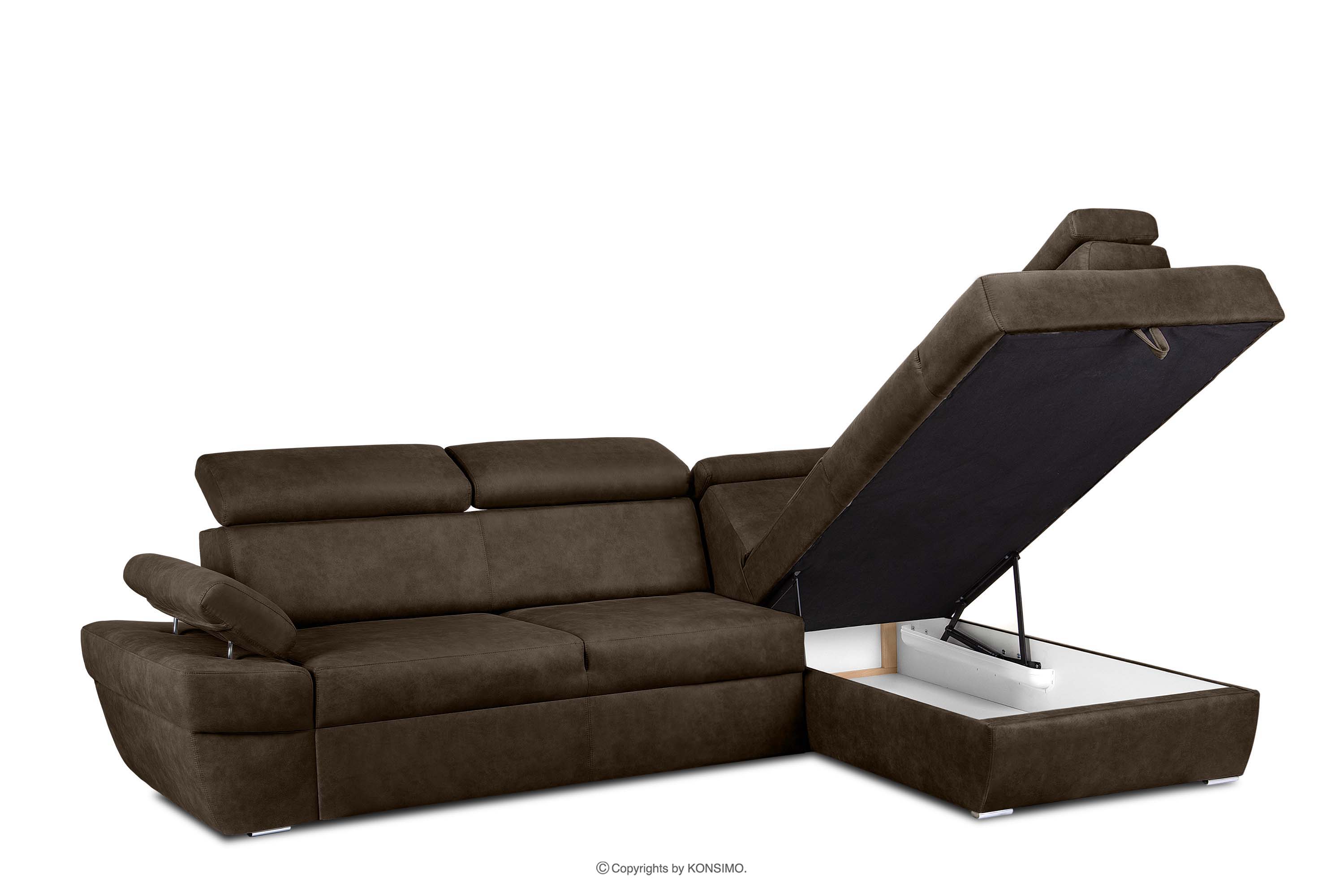 dla produktu Narożnik z funkcją spania w tkaninie skóropodobnej ciemny brązowy prawy