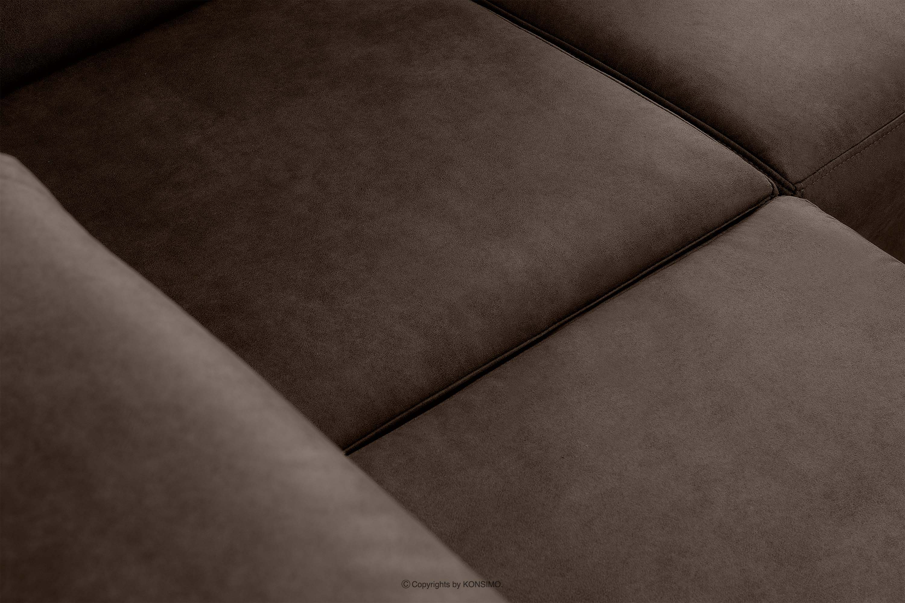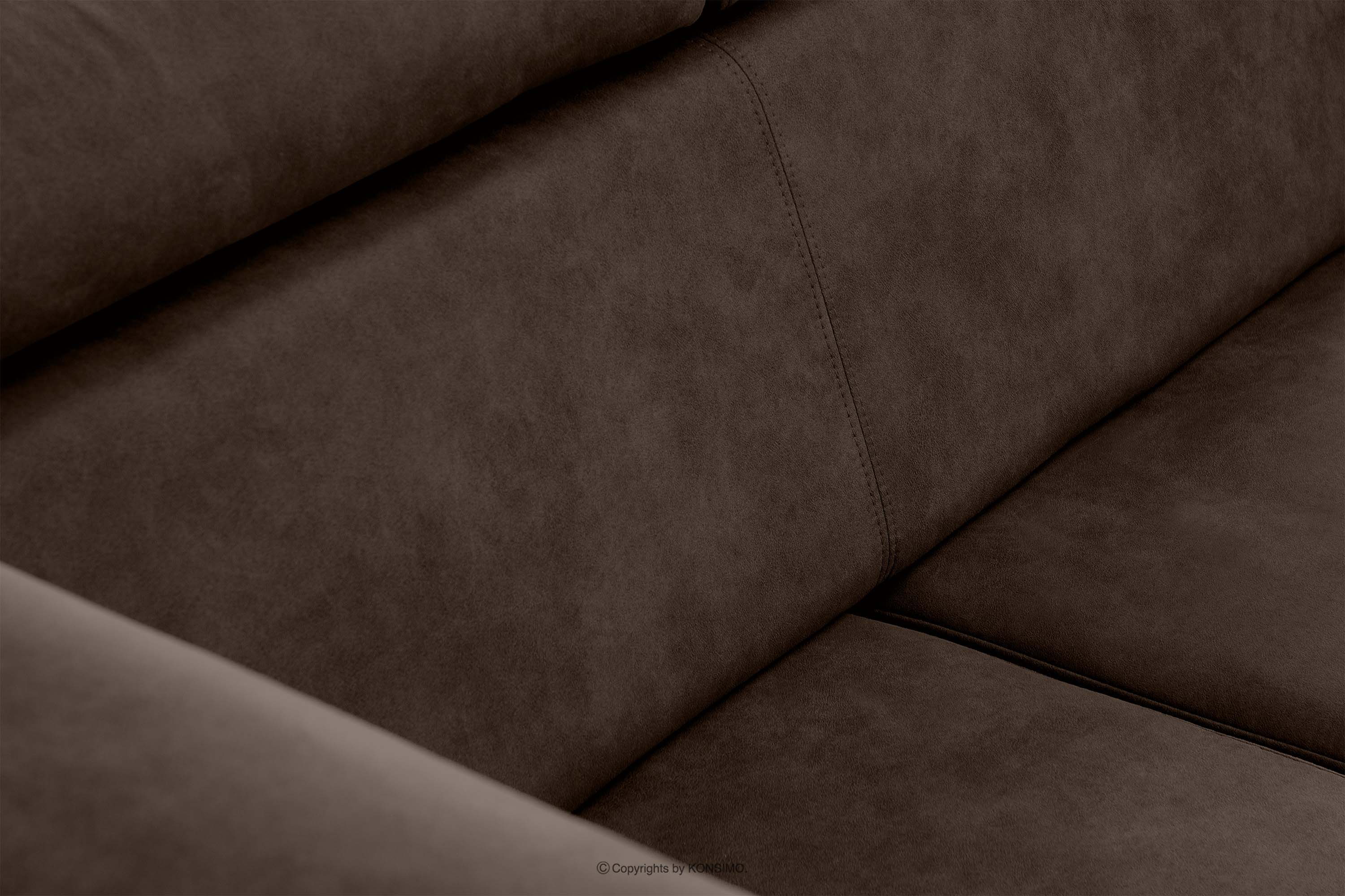 Wytrzymały, łatwy do utrzymania w czystości, wykonany z solidnych i trwałych materiałów, narożnik z funkcją spania w tkaninie skóropodobnej ciemny brązowy prawy z kolekcji nowoczesnych mebli RATLO to propozycja dla wymagających. Łatwo rozkładany, wyposażony w dużą skrzynię, doskonale sprawdza się w niewielkich mieszkaniach. Obicie z tkaniny skóropodobnej jest wyjątkowo odporna na ścieranie i uszkodzenia.