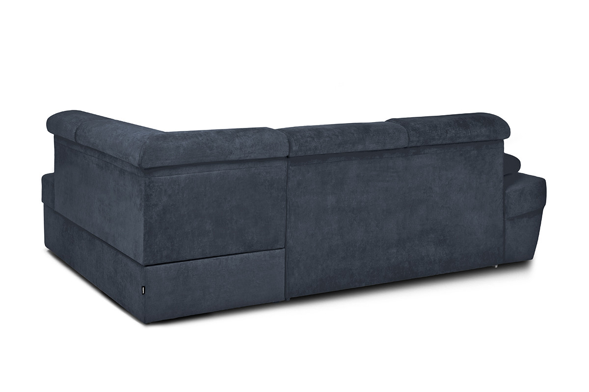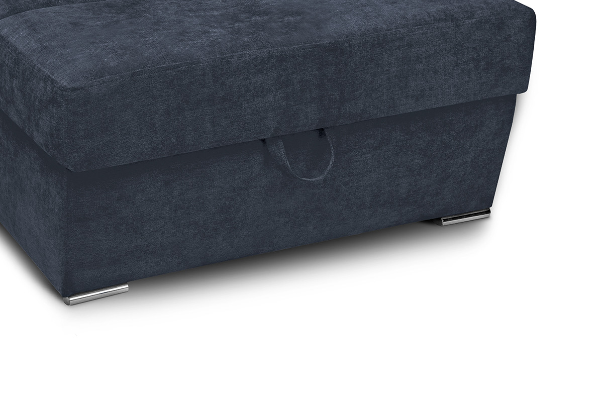 Trwały, łatwy w utrzymaniu czystości, wykonany z mocnych i trwałych materiałów, rozkładany narożnik prawy z pojemnikiem na pościel granatowy, z nowoczesnej kolekcji mebli RATLO to propozycja dla wymagających klientów. Łatwy do rozłożenia, z dużą skrzynią, idealny do małych mieszkań. Tkaniny są przyjemne w dotyku i niezwykle odporne na przetarcia i uszkodzenia.