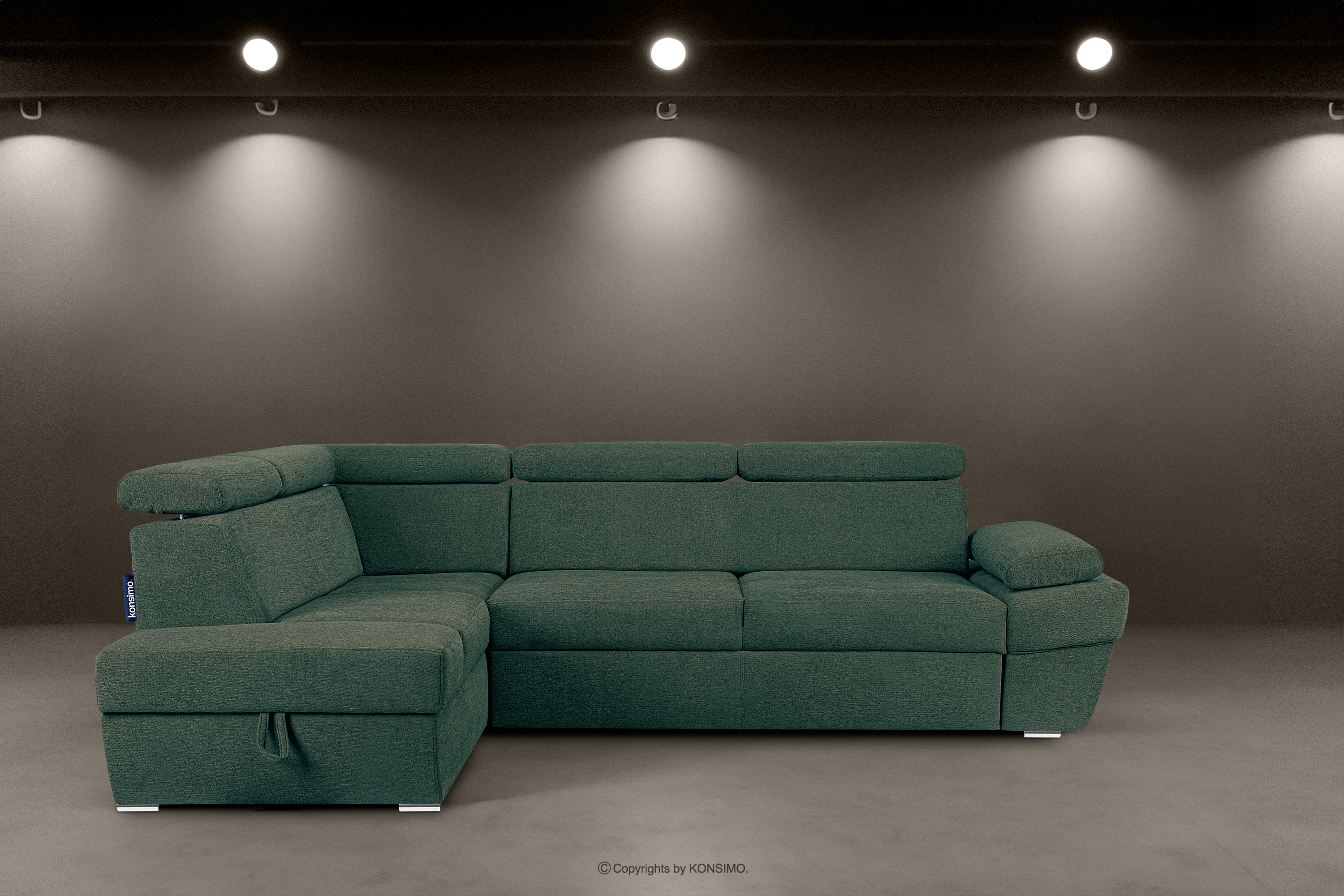Narożnik z funkcją spania i pojemnikiem na pościel morski/beżowy lewy