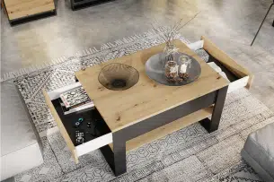 - Stelaż: obrzeża oklejone abs 1 mm, płyta pilśniowa 3 mm, płyta wiórowa 16 mm