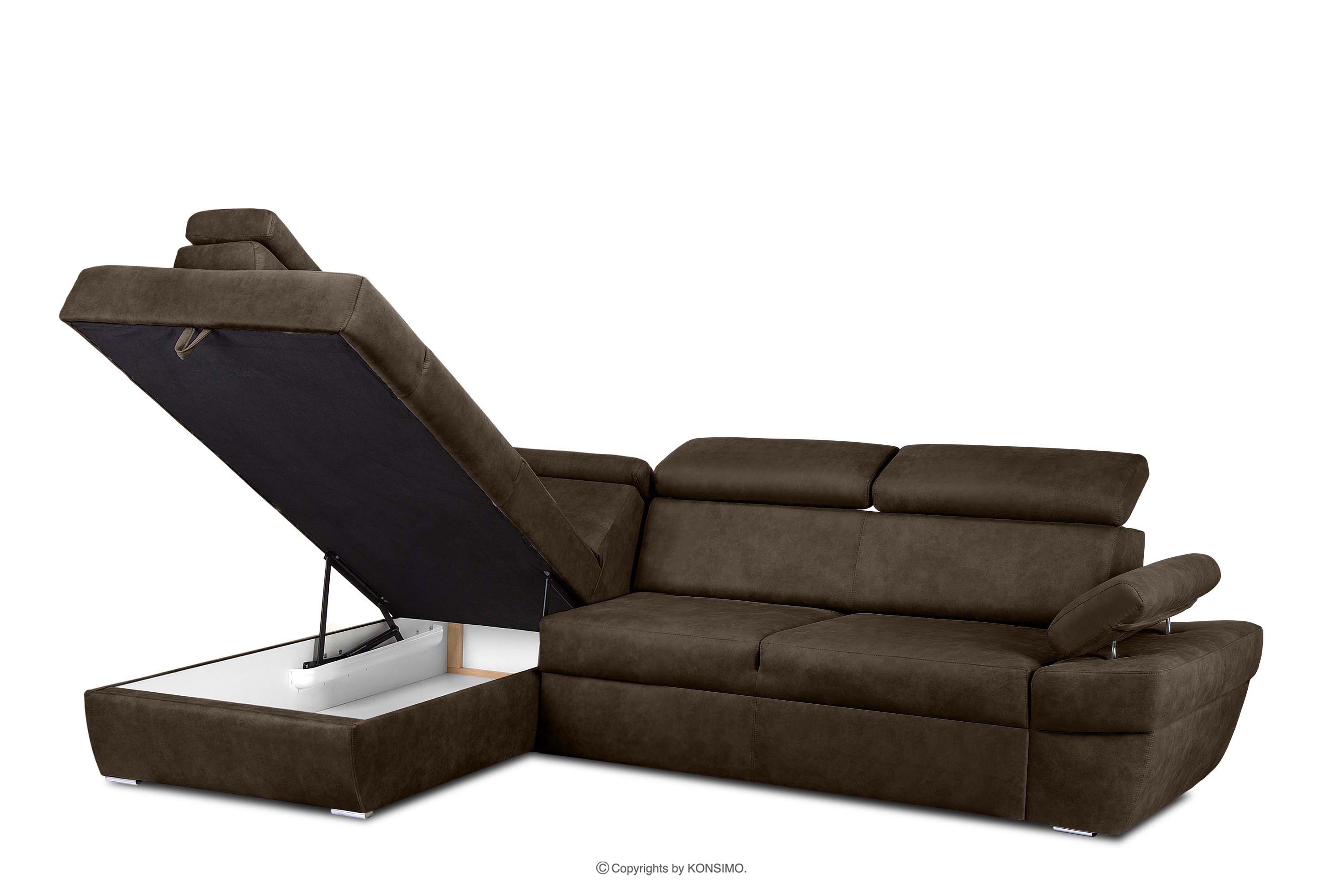 dla produktu Narożnik z funkcją spania w tkaninie skóropodobnej ciemny brązowy lewy