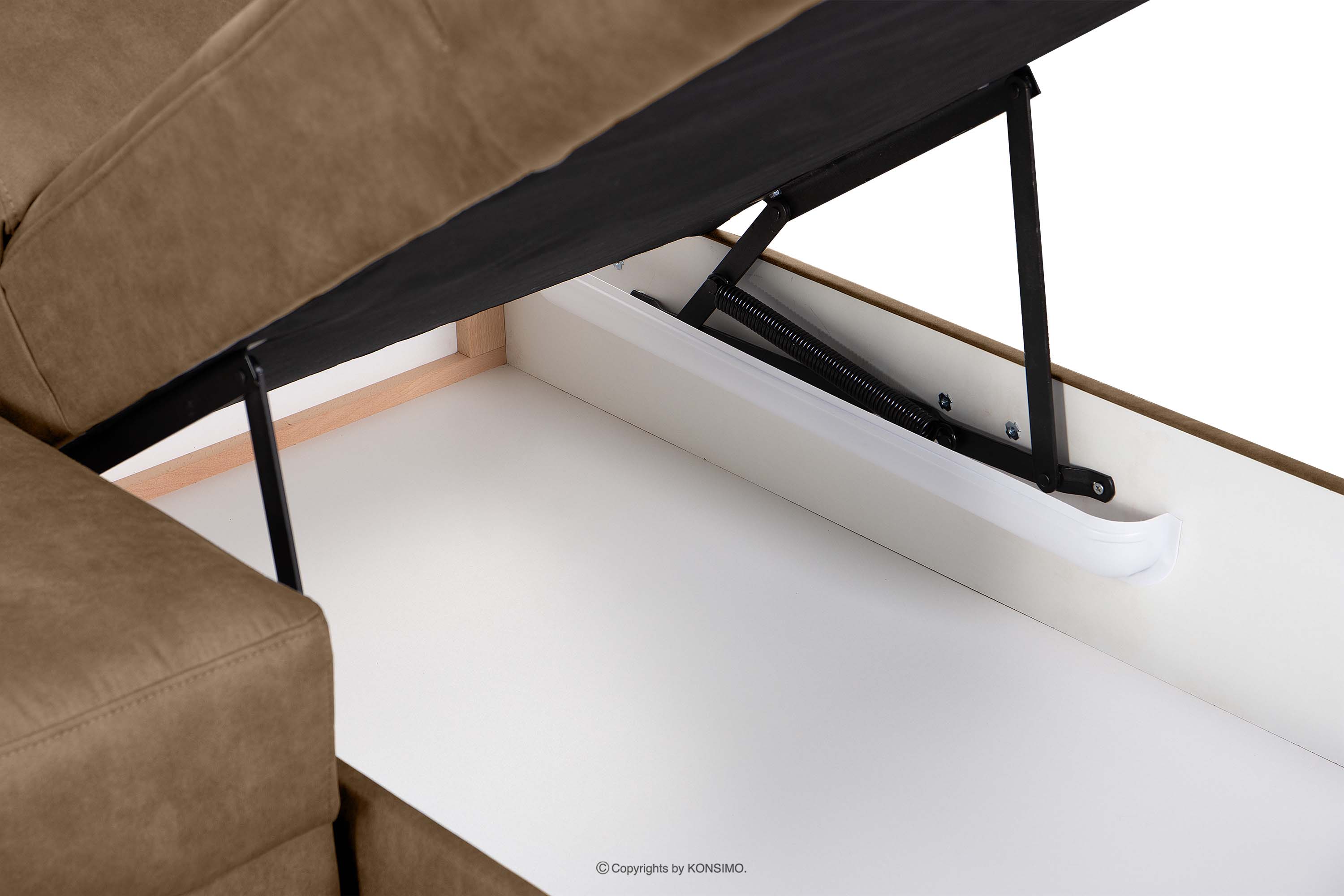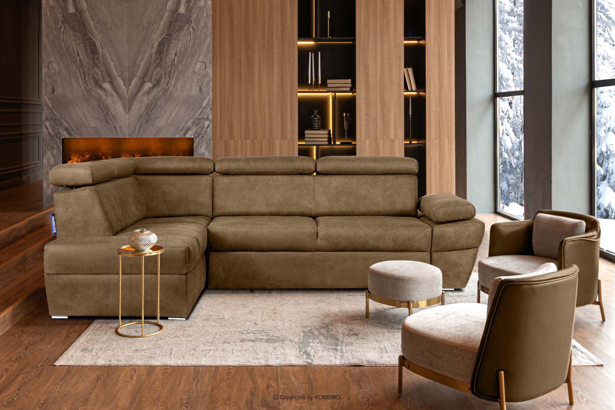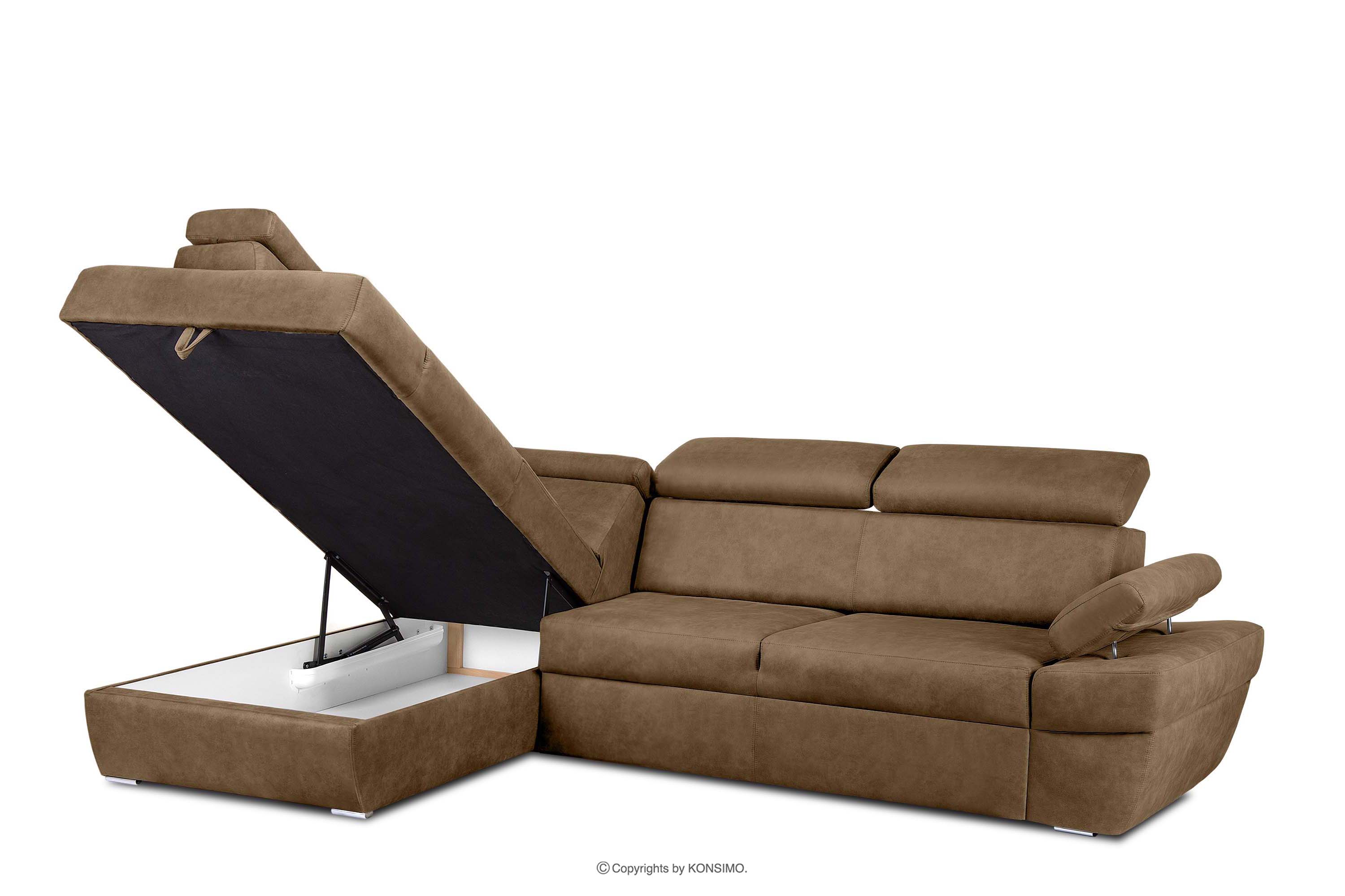 RATLO Narożnik z funkcją spania w tkaninie skóropodobnej cappuccino lewy