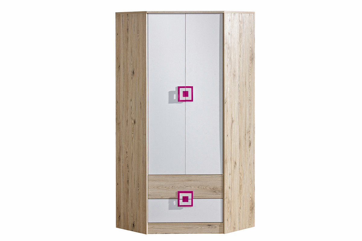 CAMBI zobacz całą kolekcję Kolorowa szafa narożna do pokoju dziecięcego biała / jasny dąb / różowa- kolor biały/jasny dąb/różowy