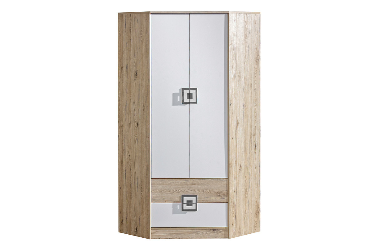 CAMBI zobacz całą kolekcję Kolorowa szafa narożna do pokoju dziecięcego biała / jasny dąb / szara- kolor biały/jasny dąb/szary