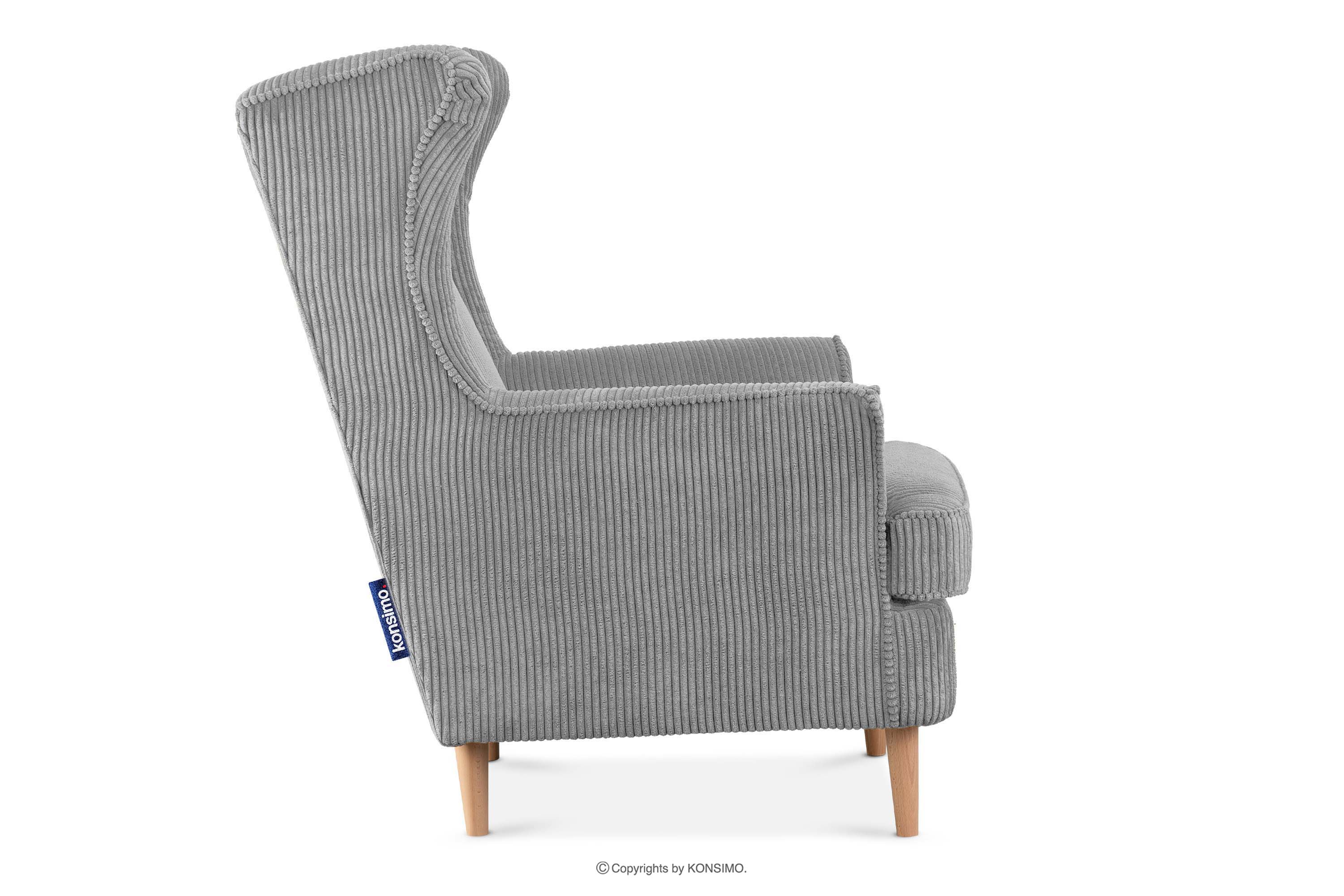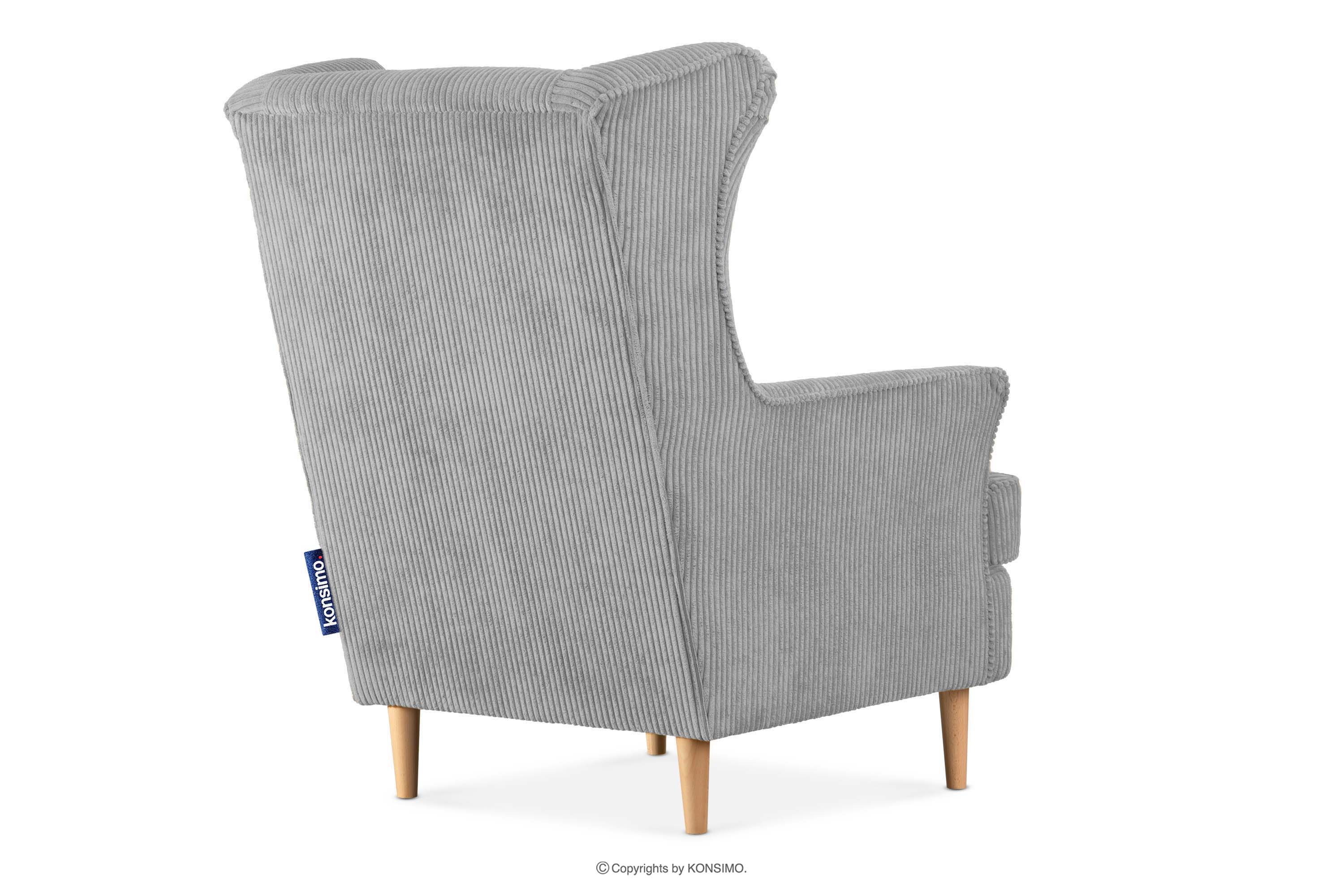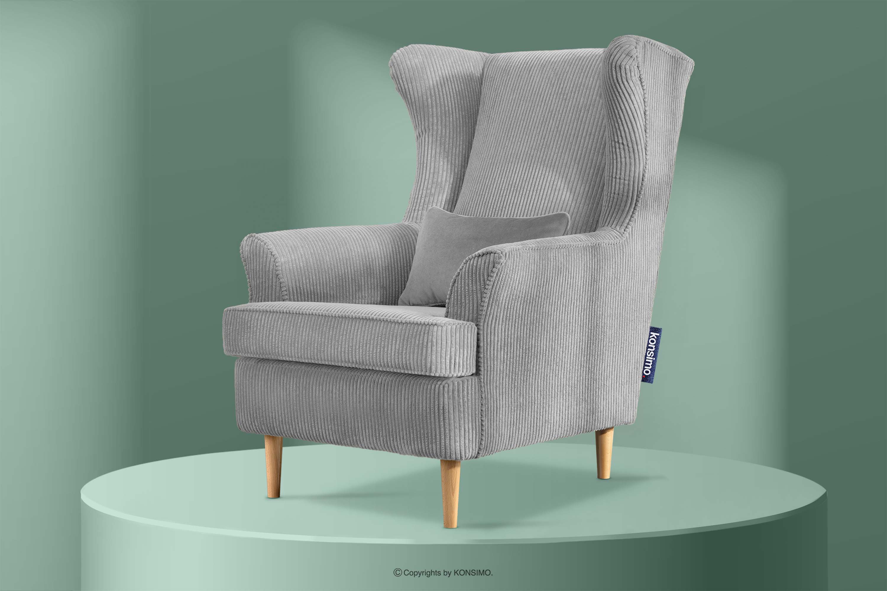 STRALIS zobacz całą kolekcję Fotel uszak w tkaninie sztruks z poduszką welur siwy- kolor siwy