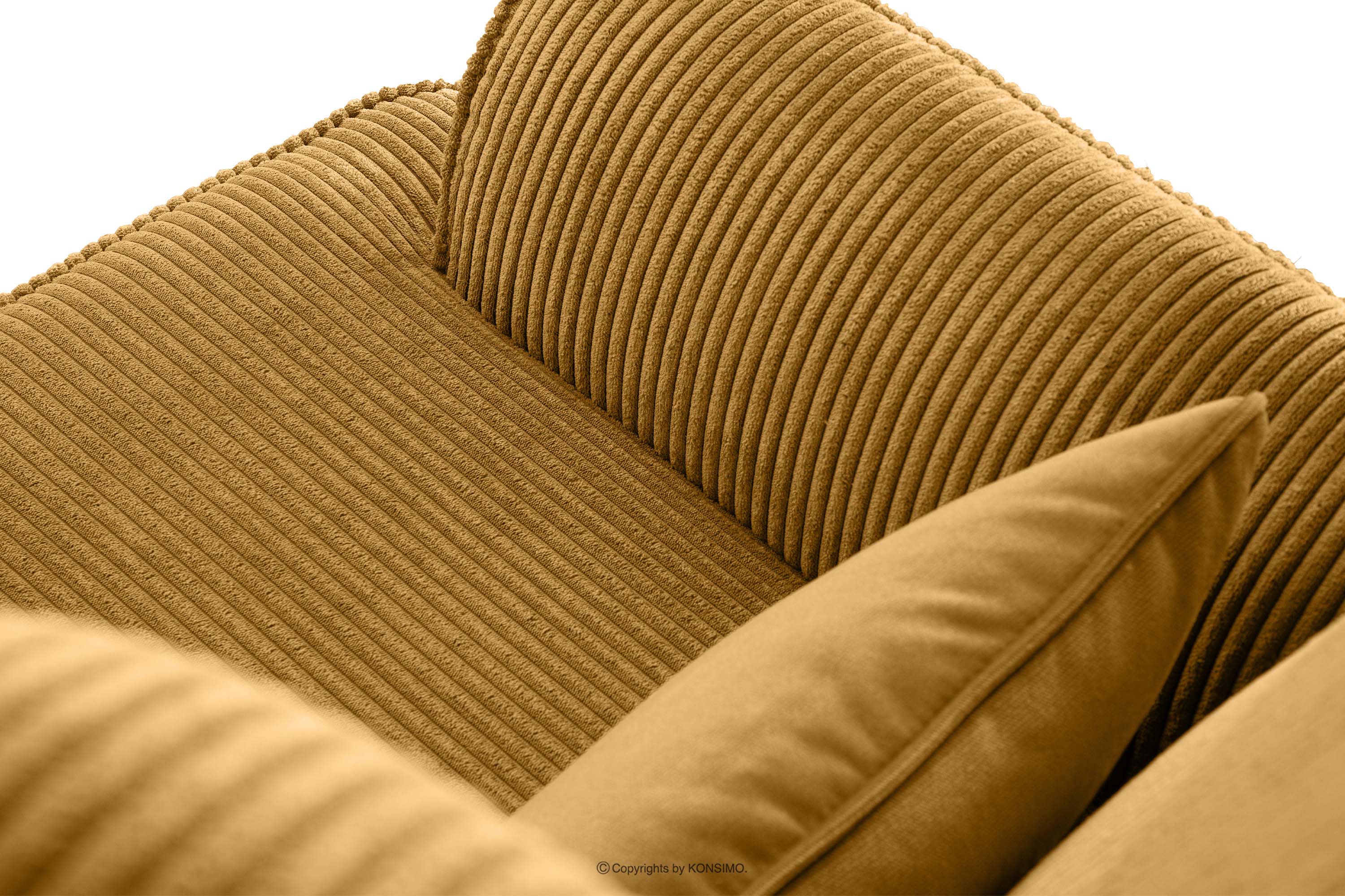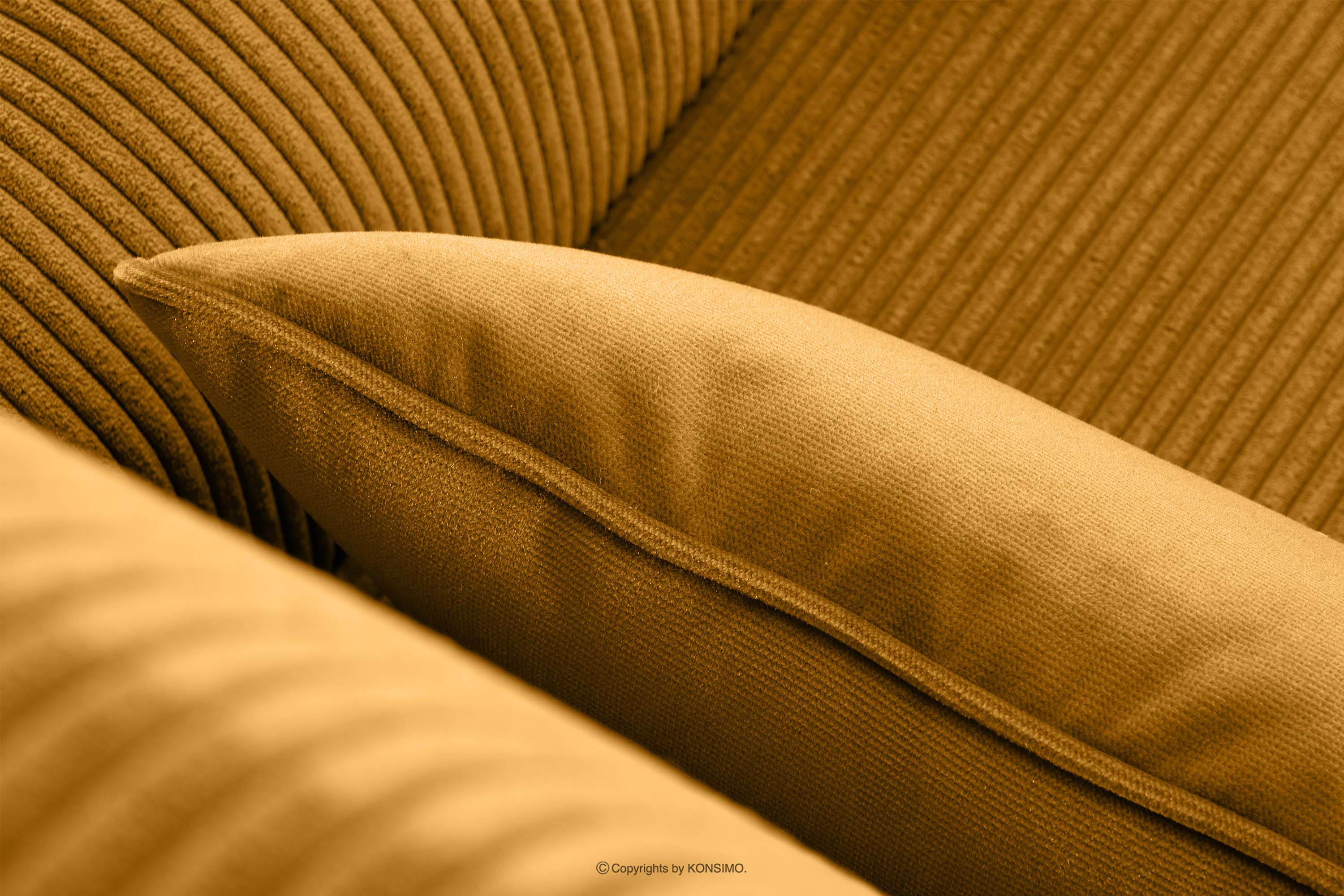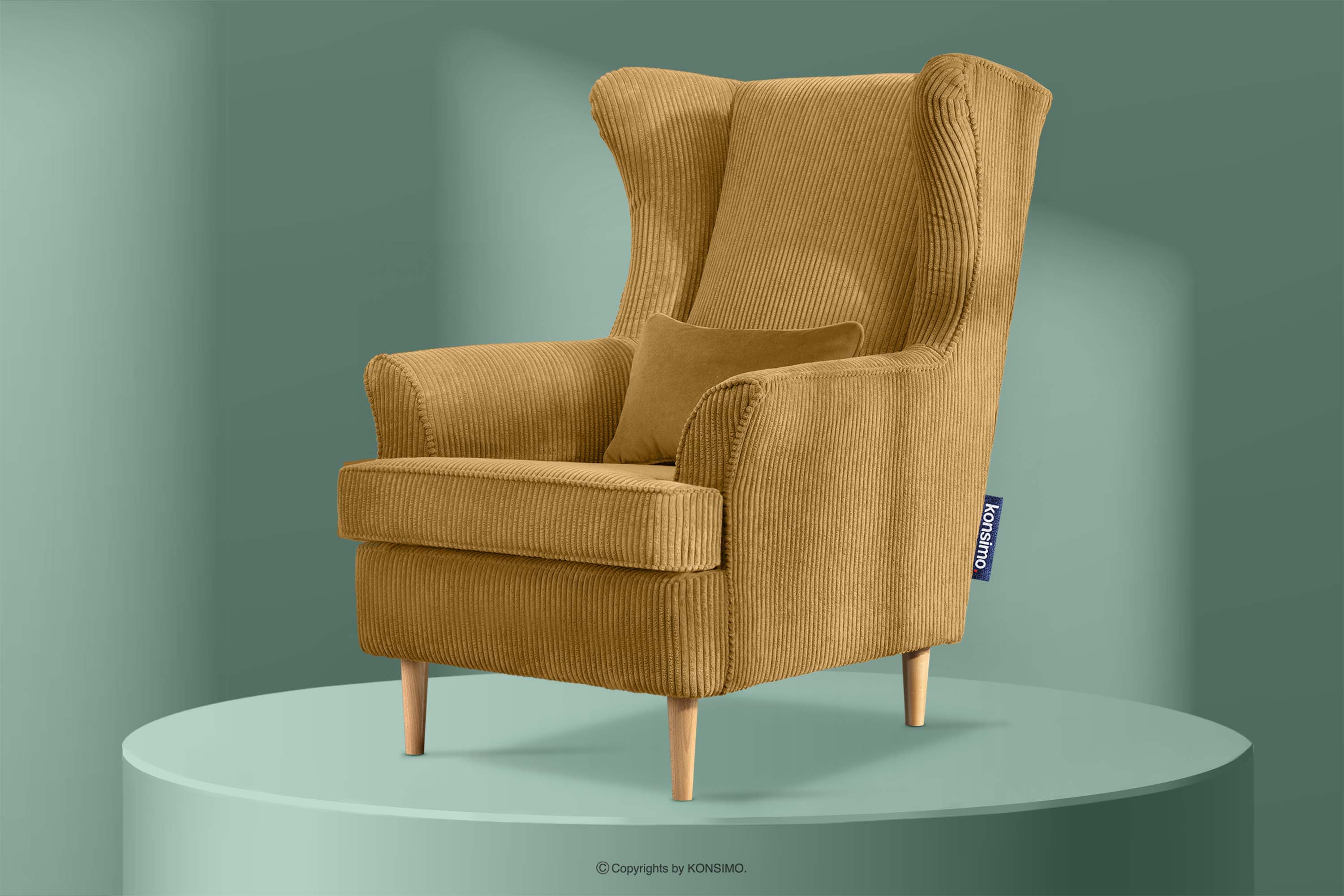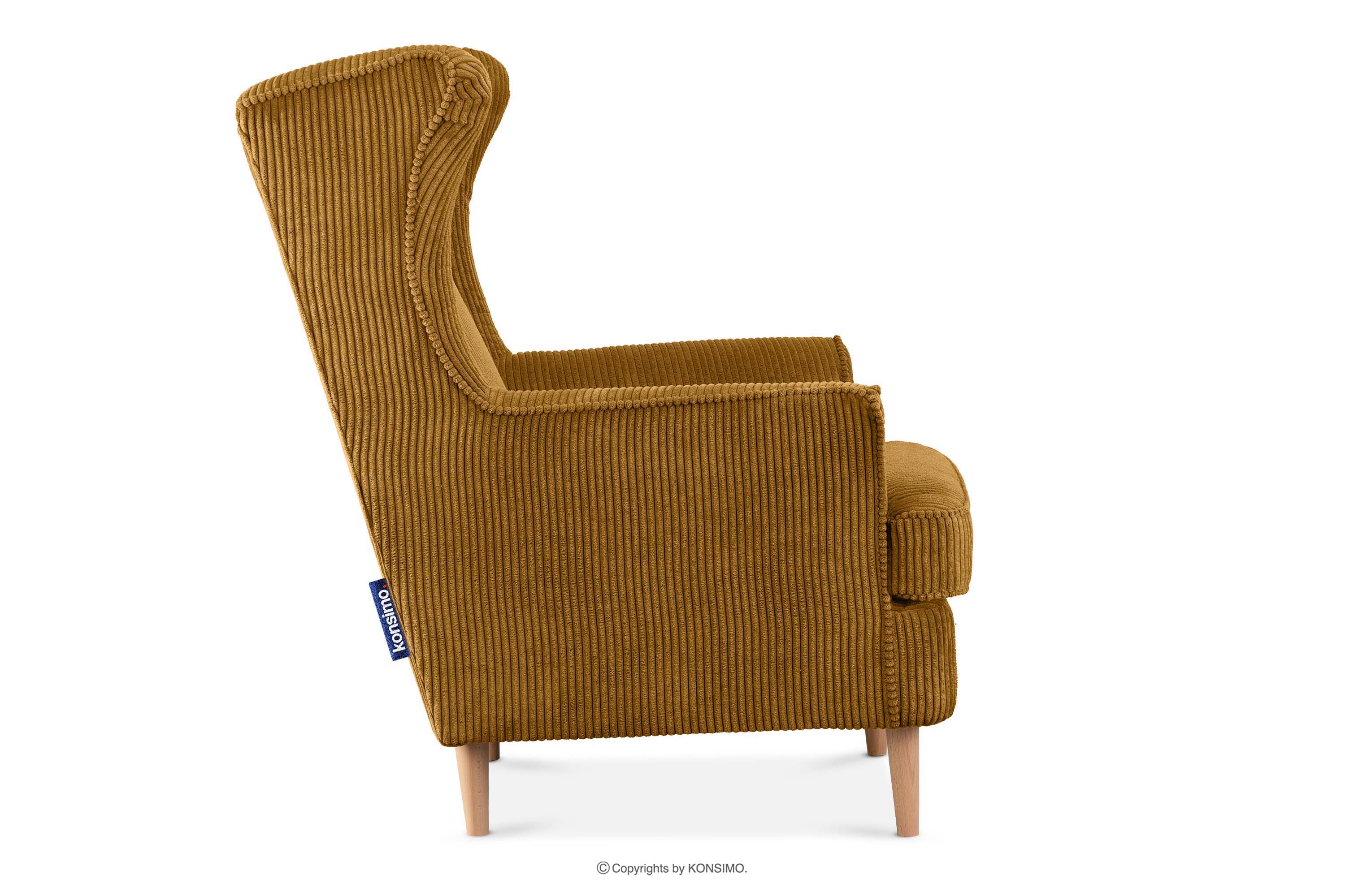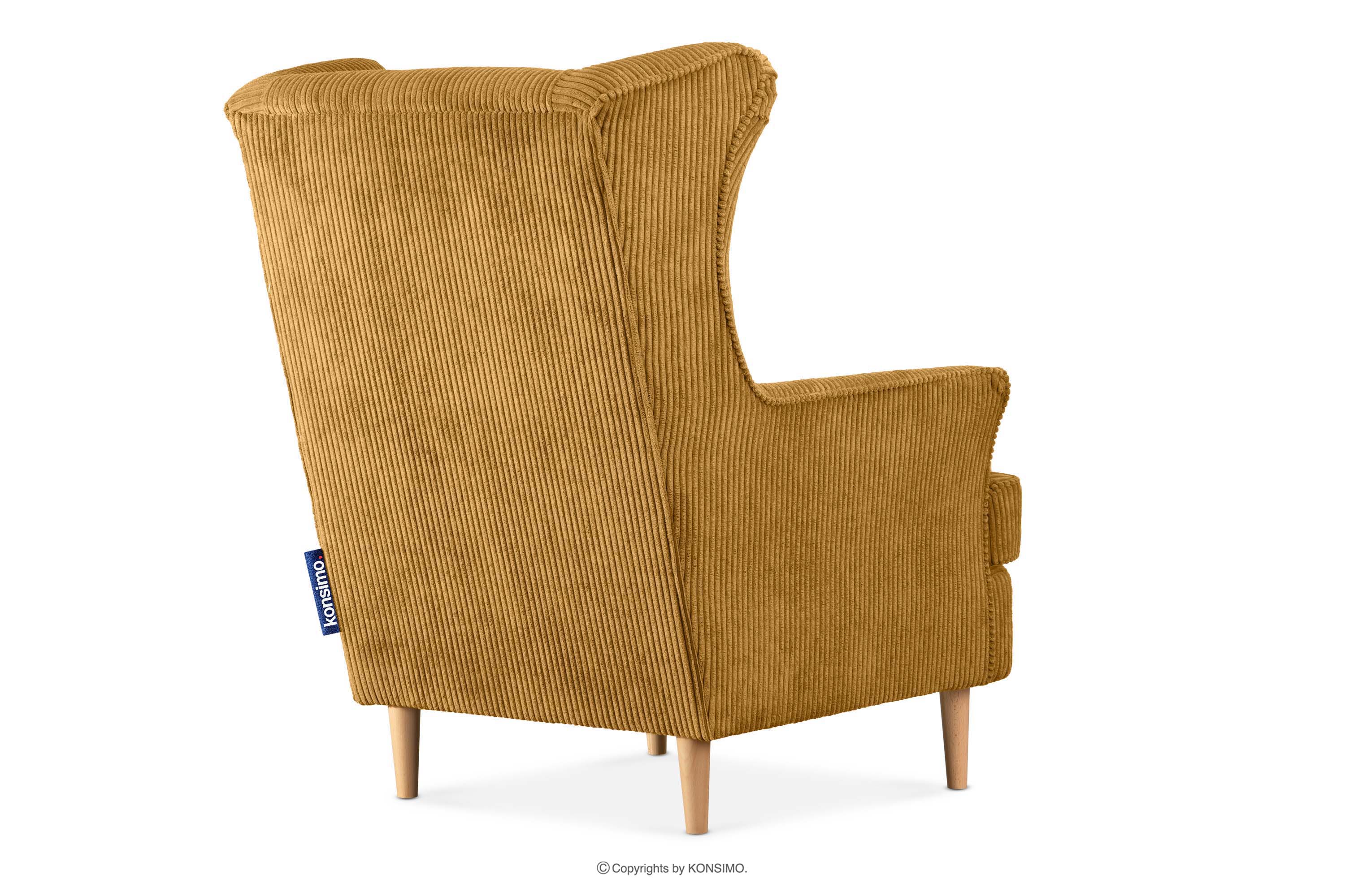 STRALIS zobacz całą kolekcję Fotel uszak w tkaninie sztruks z poduszką welur miodowy- kolor miodowy