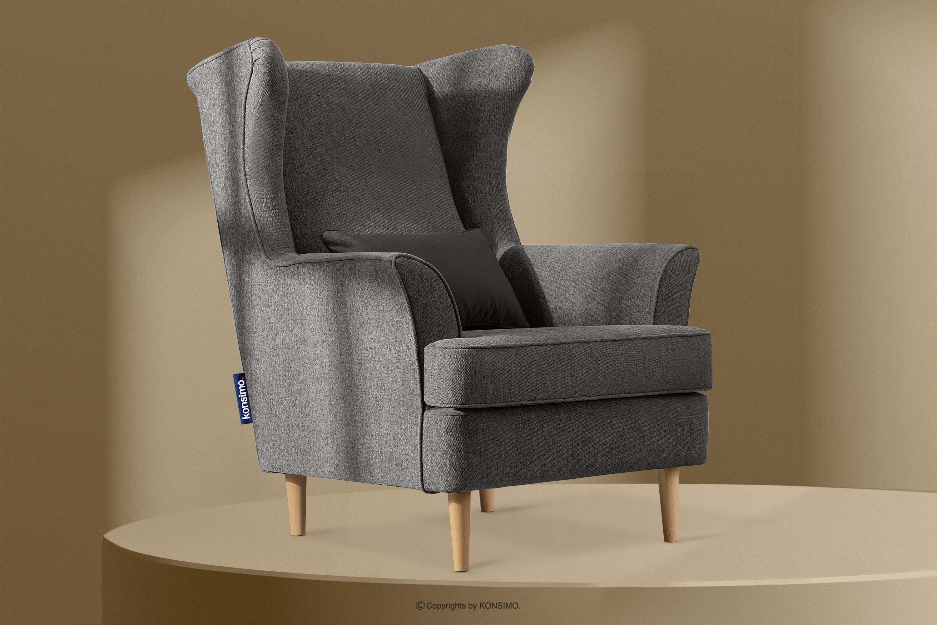 STRALIS zobacz całą kolekcję Fotel uszak do sypialni tkanina pleciona grafitowy- kolor grafitowy