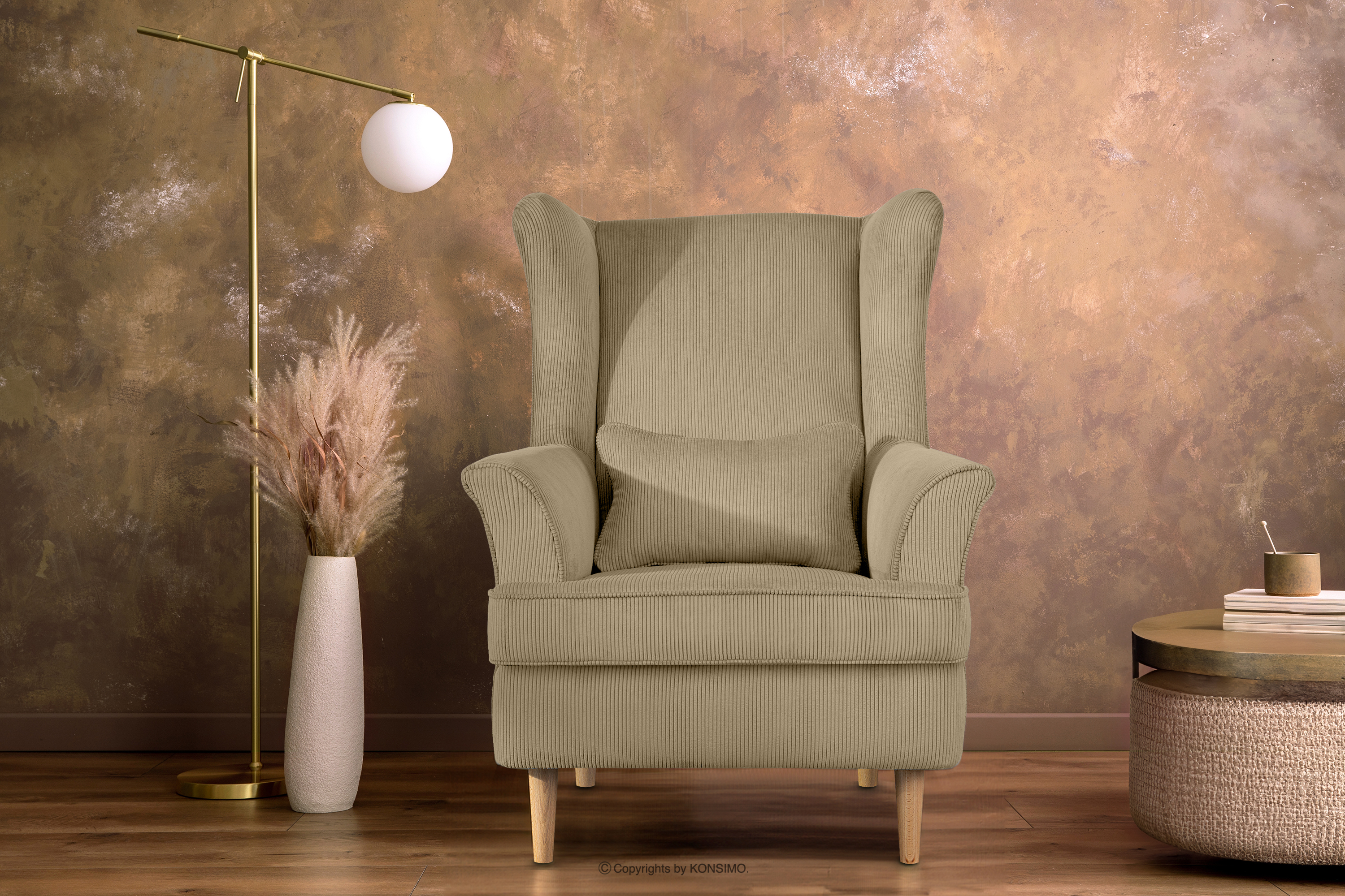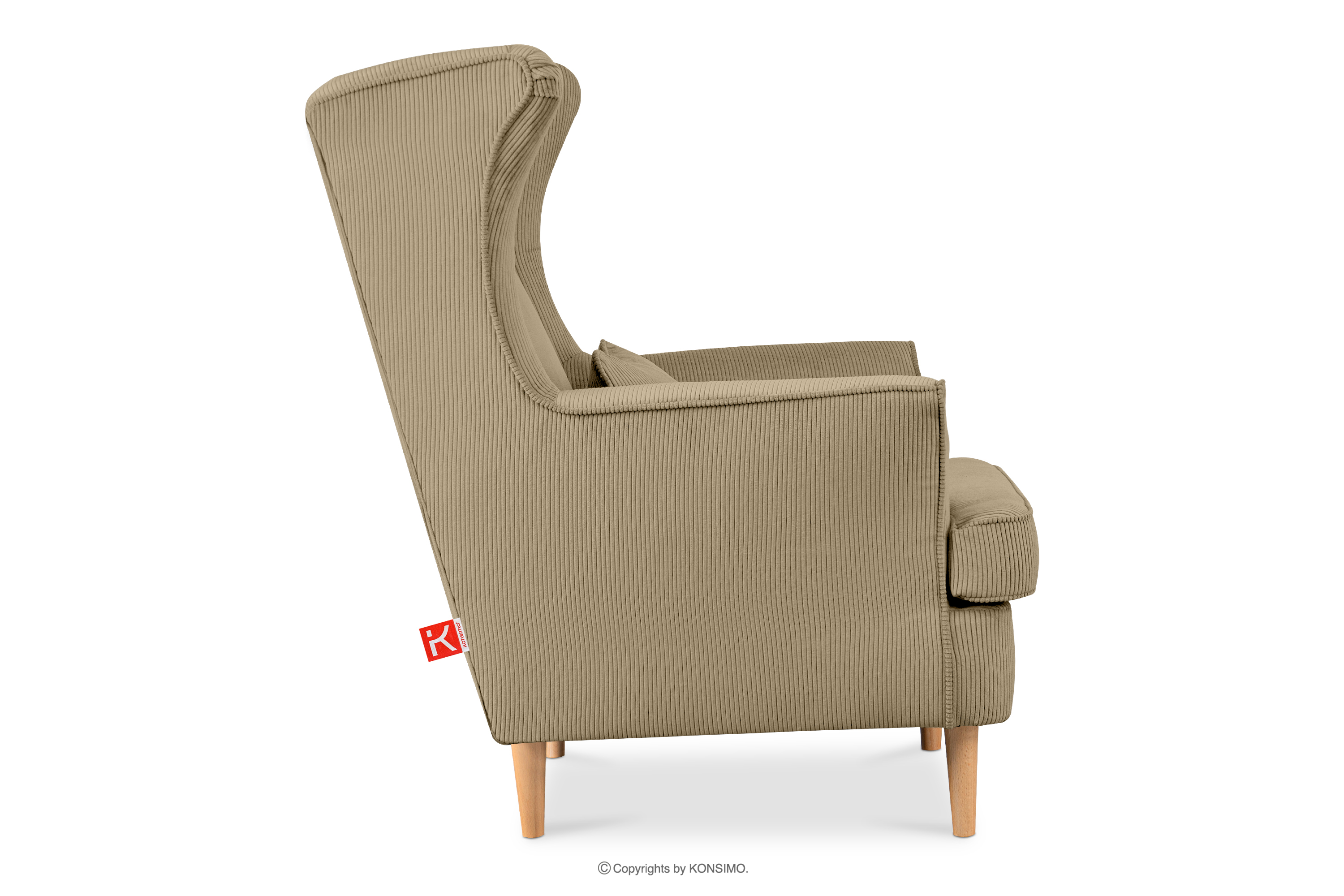 STRALIS zobacz całą kolekcję Fotel uszak sztruks na drewnianych nóżkach ciemny kremowy- kolor ciemny kremowy