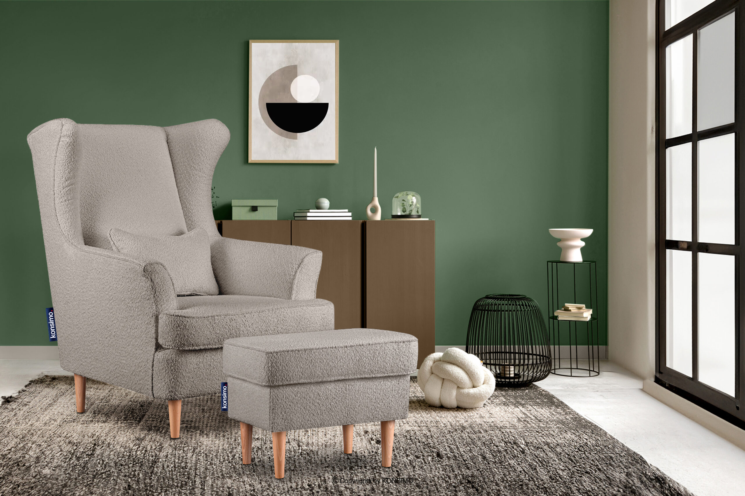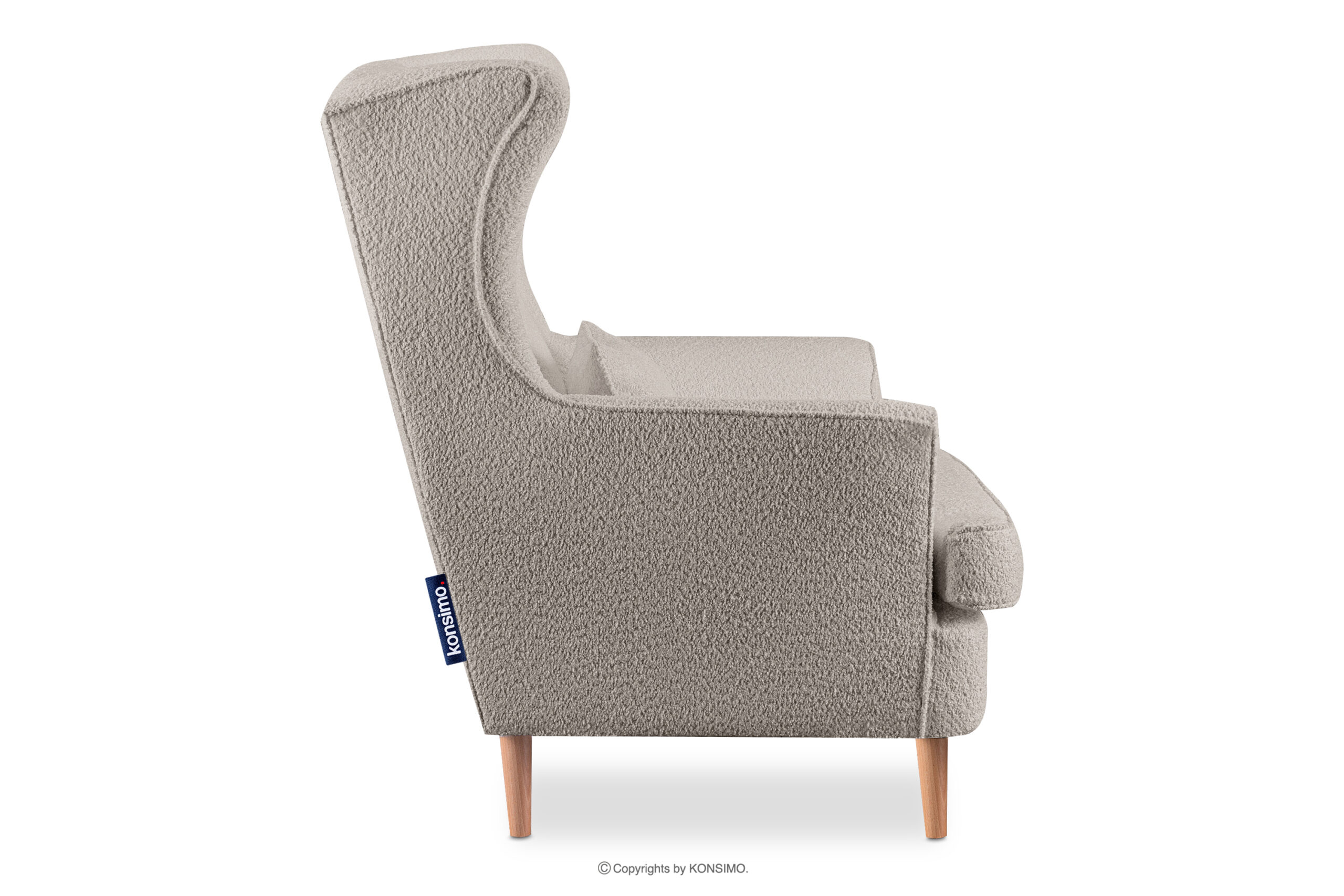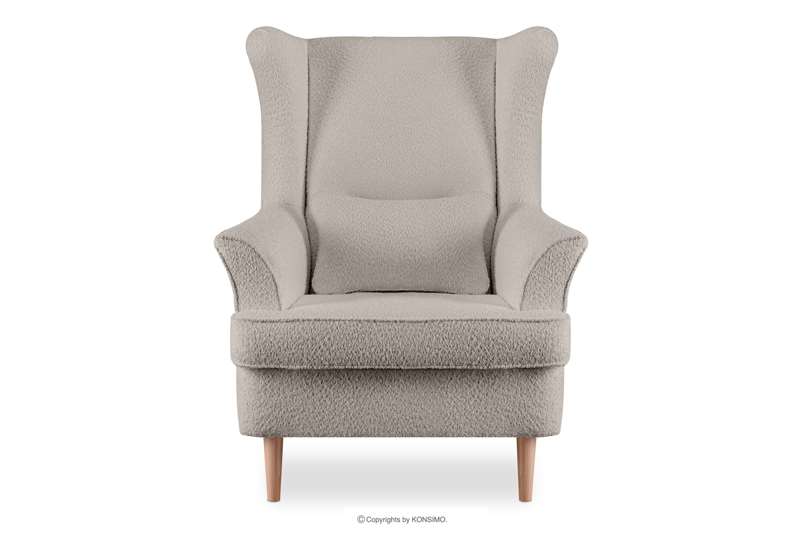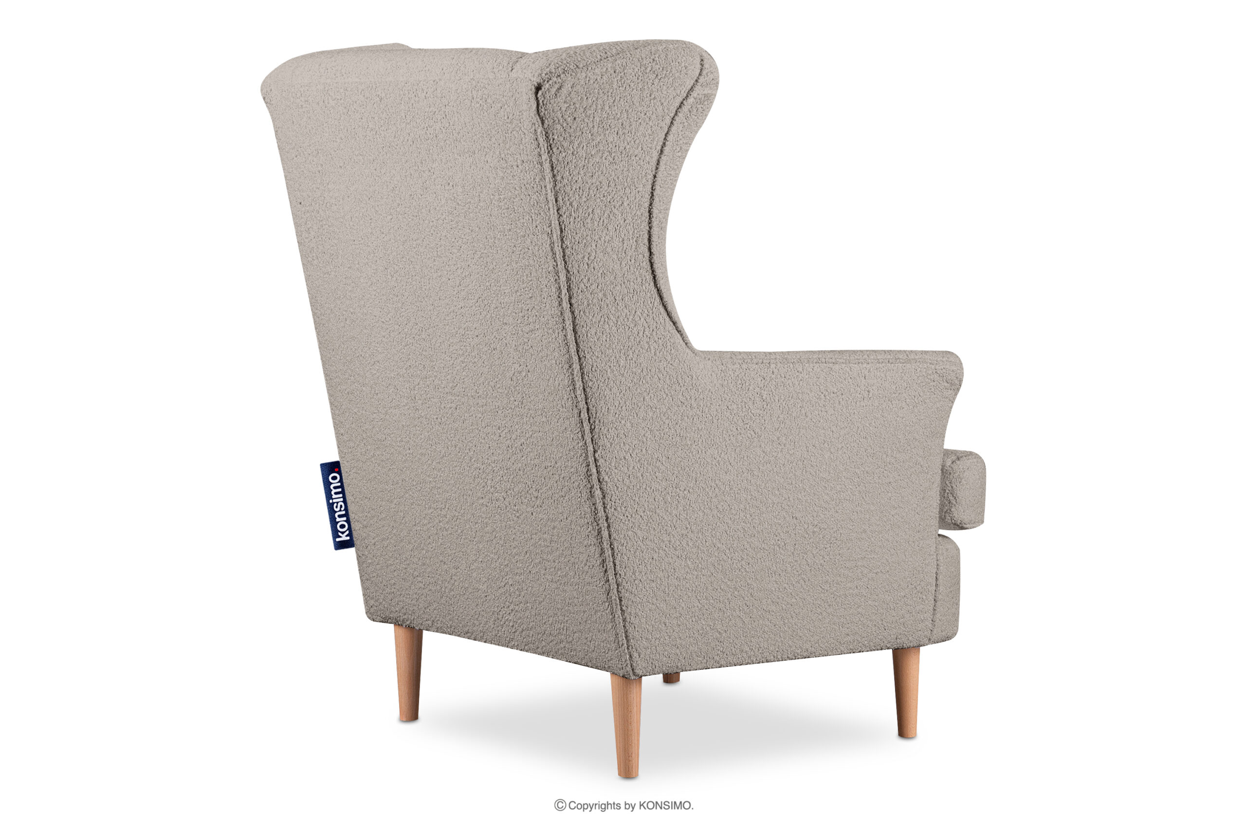 STRALIS zobacz całą kolekcję Wygodny fotel uszak beżowy w tkaninie boucle- kolor beżowy