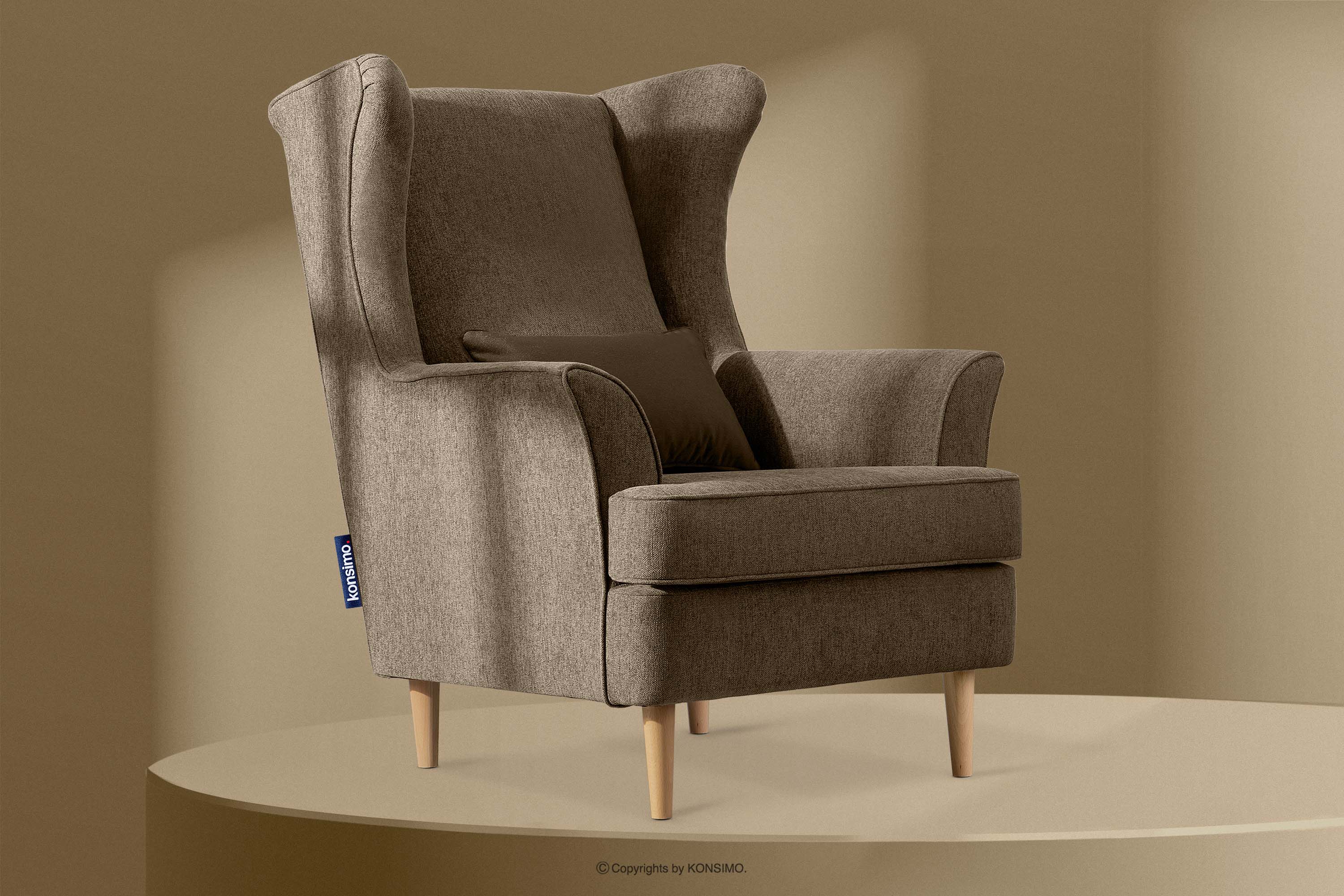 STRALIS zobacz całą kolekcję Fotel uszak do sypialni tkanina pleciona brązowy- kolor brązowy
