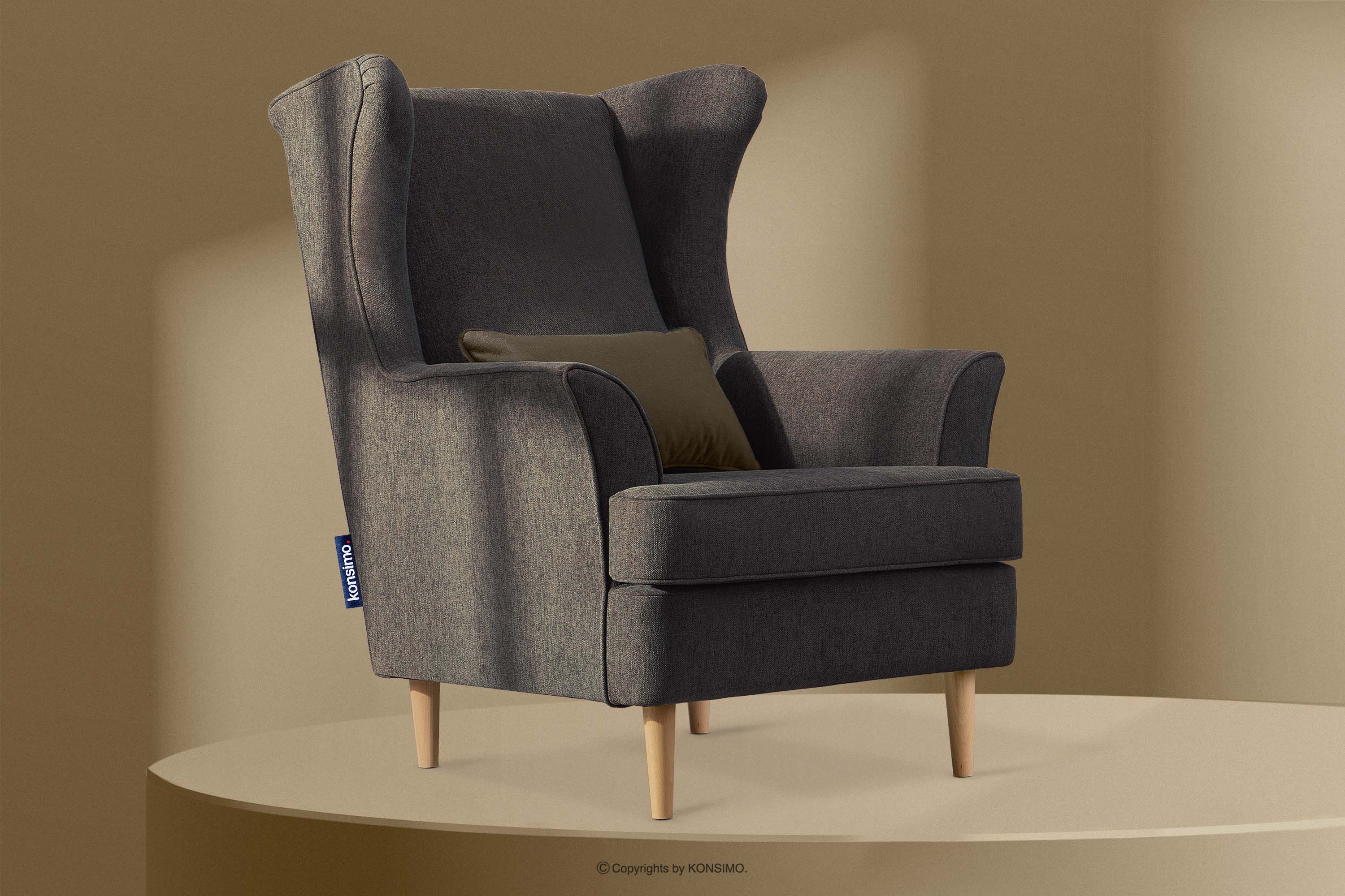 STRALIS zobacz całą kolekcję Fotel uszak do sypialni tkanina pleciona granatowy/brązowy- kolor granatowy/brązowy