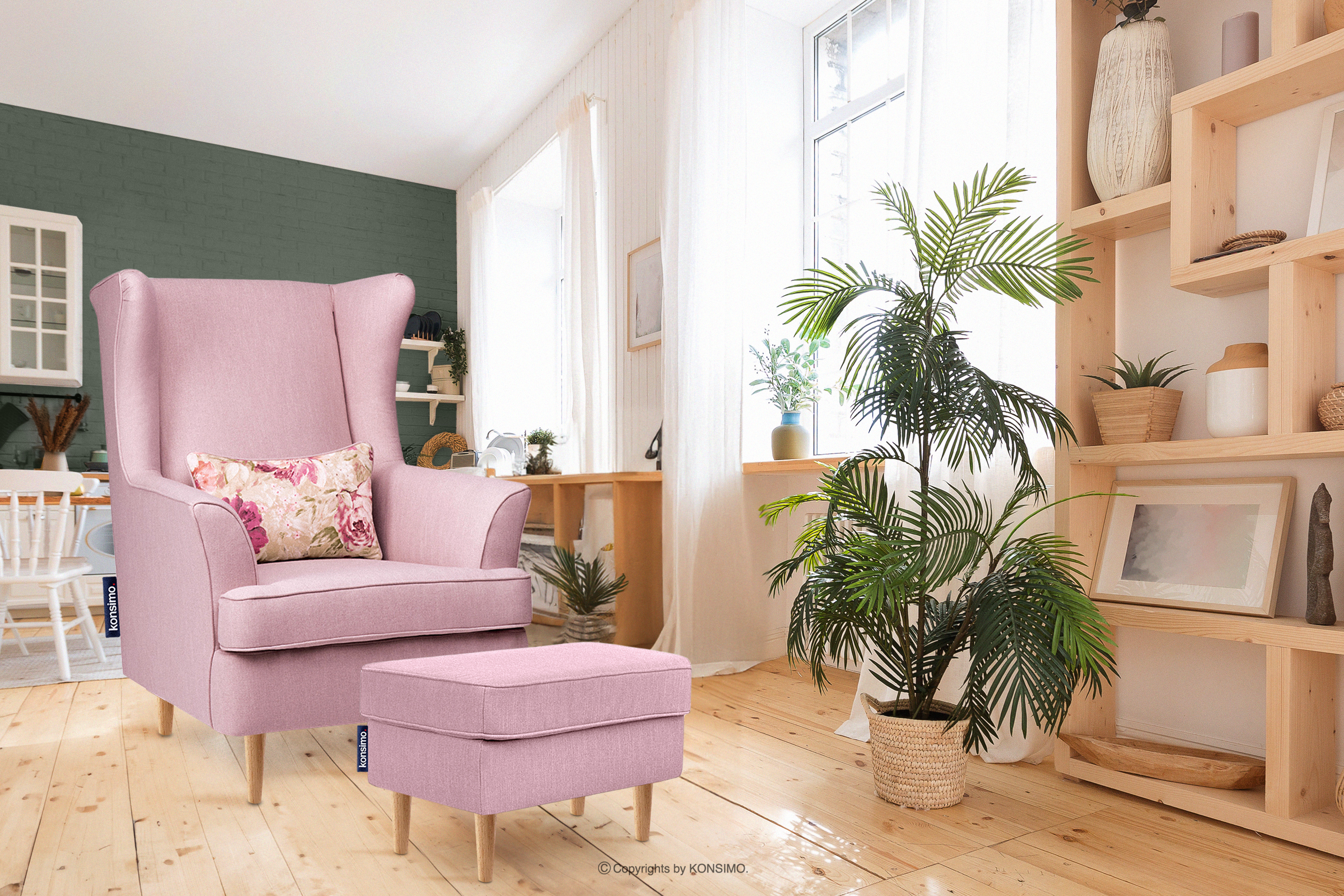 dla produktu Skandynawski fotel pudrowy róż na nóżkach