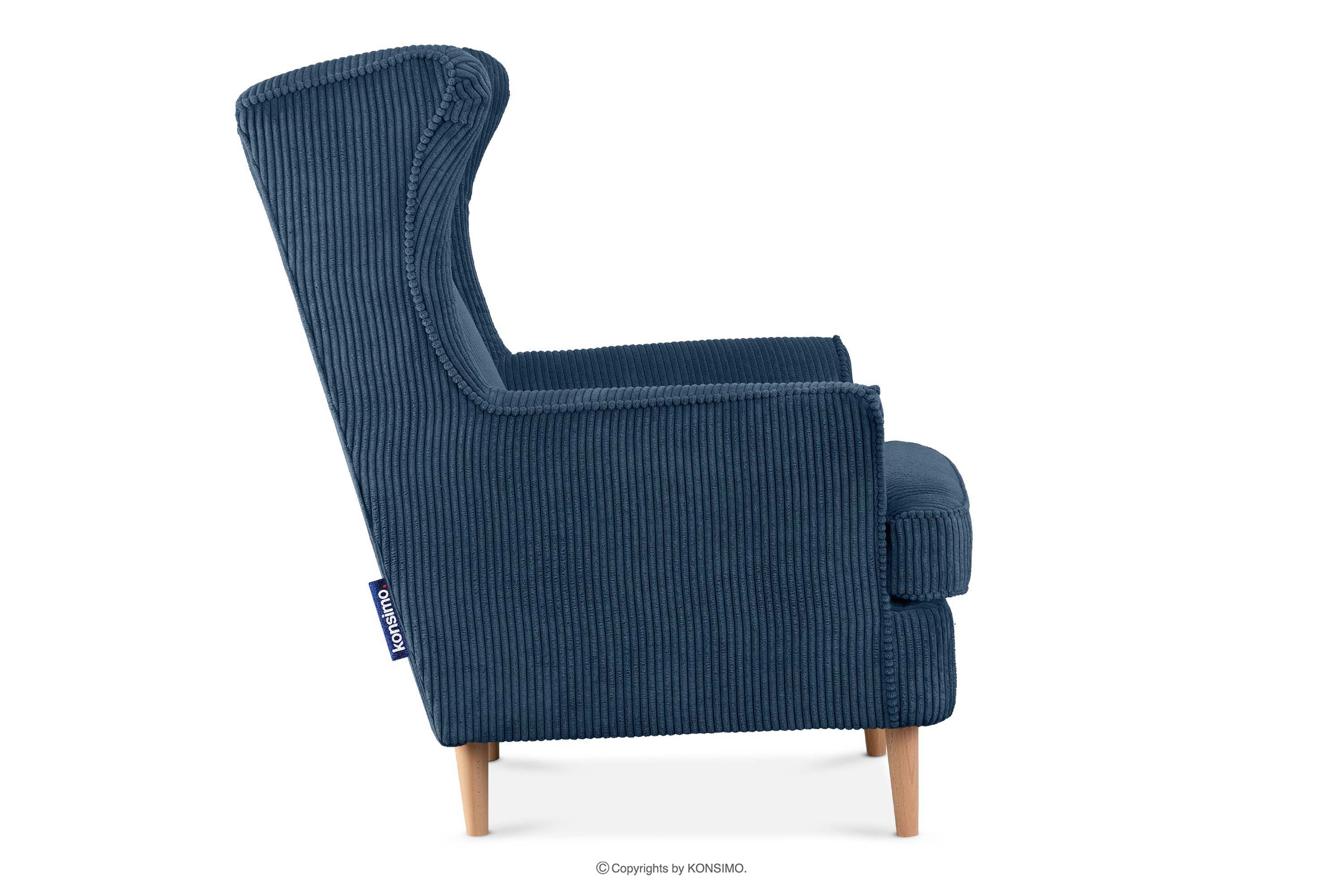 STRALIS Fotel uszak w tkaninie sztruks z poduszką welur ciemny niebieski