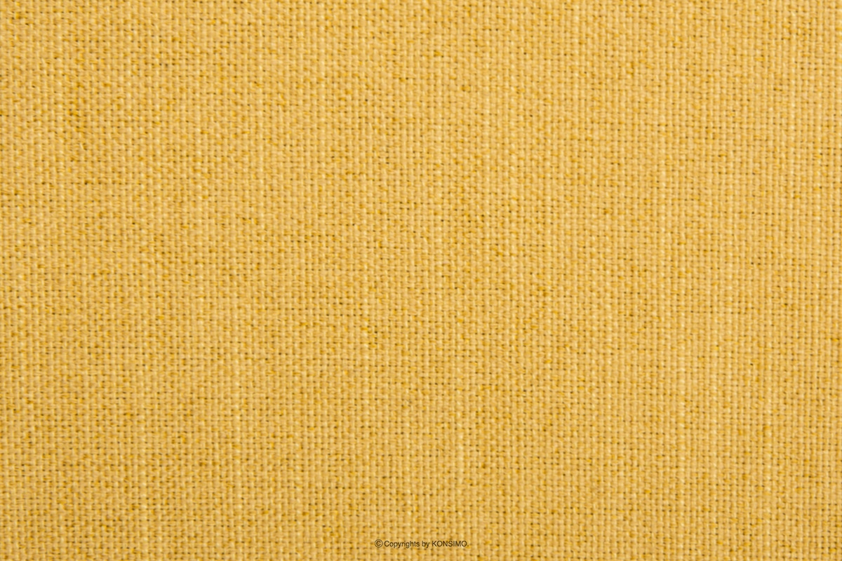 Skandynawski puf obity tkaniną plecioną w żółtym kolorze znakomicie prezentuje się w pojedynkę lub w towarzystwie fotela oraz sofy z tej kolekcji. W siedzisku zastosowano sprężynę falistą, która gwarantuje, że siedzisko się nie zapada i wytrzyma wiele lat. Solidną konstrukcję wspierają wysokie nóżki wykonane z naturalnego drewna. Wysokiej jakości tapicerka z miłej w dotyku tkaniny plecionej jest nie tylko odporna na ścieranie, ale też łatwa do utrzymania w czystości.