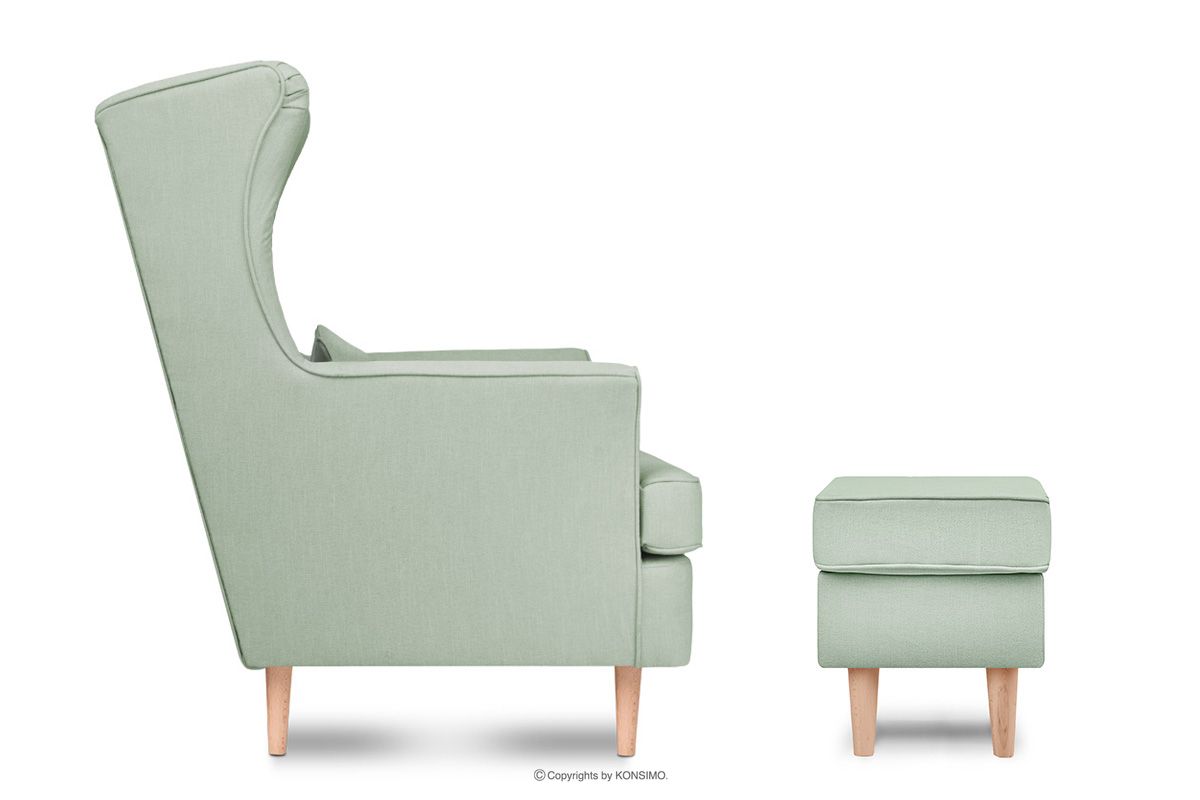 Fotel i puf na drewnianych nóżkach miętowy STRALIS - kolor miętowy