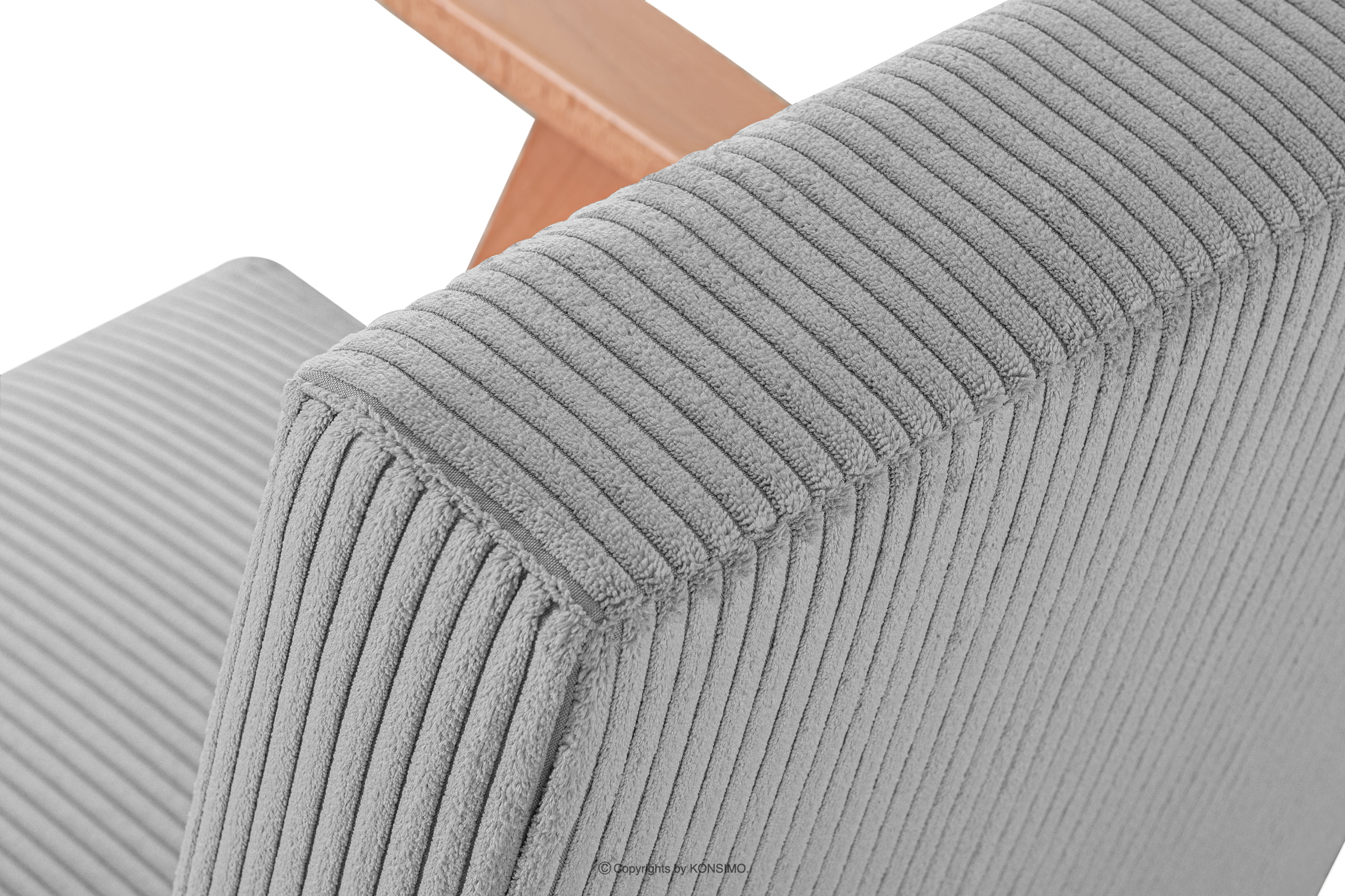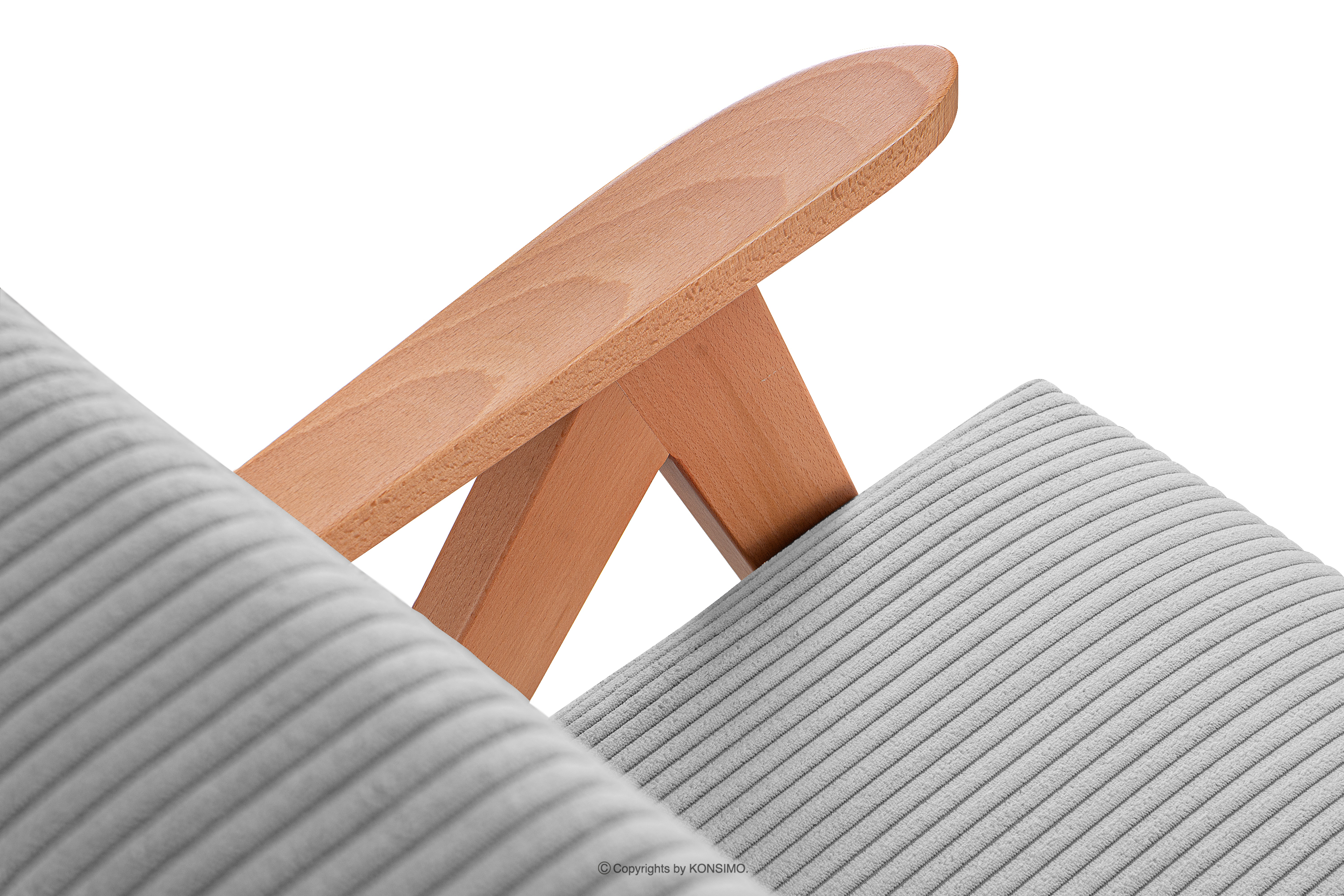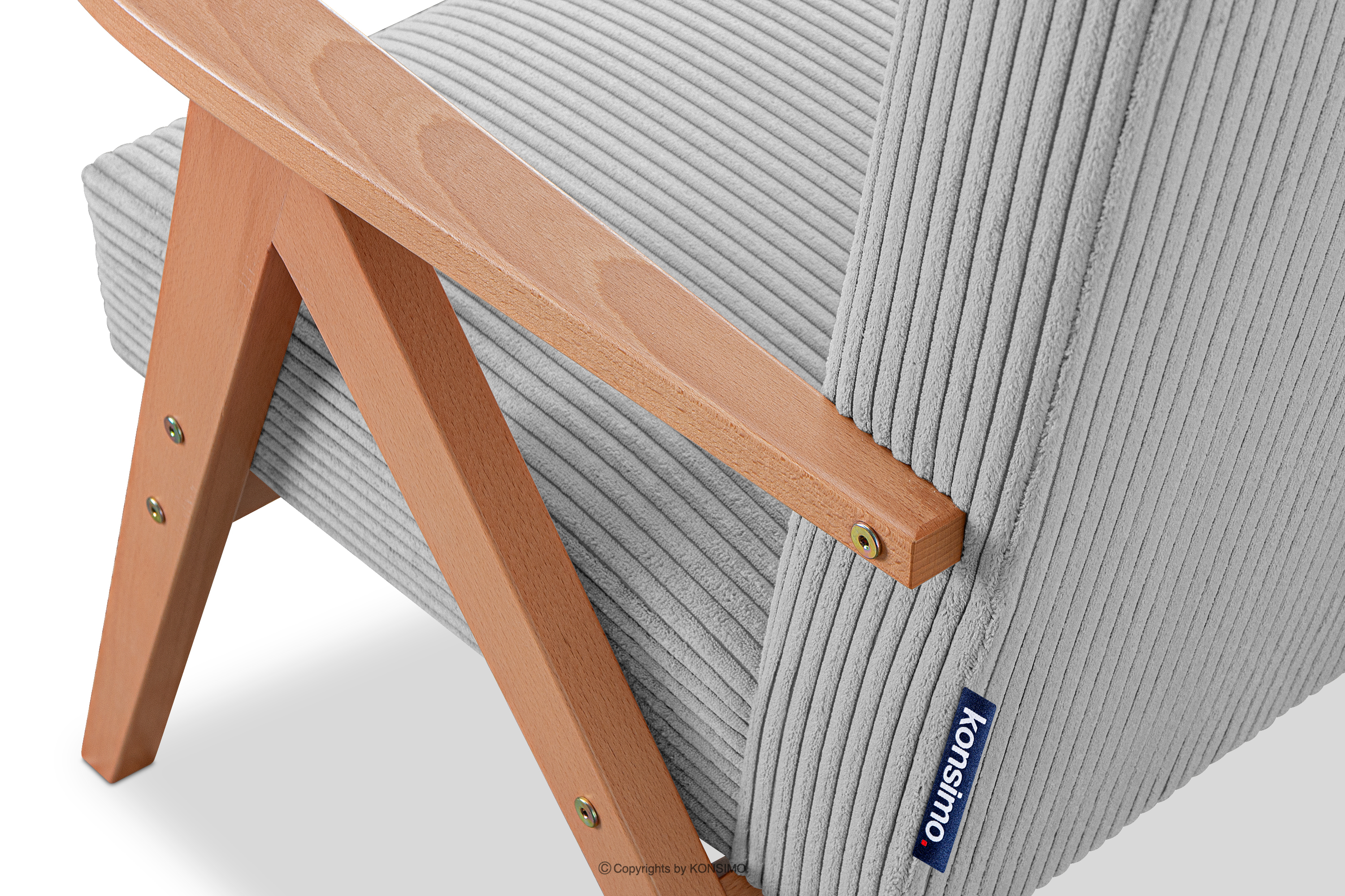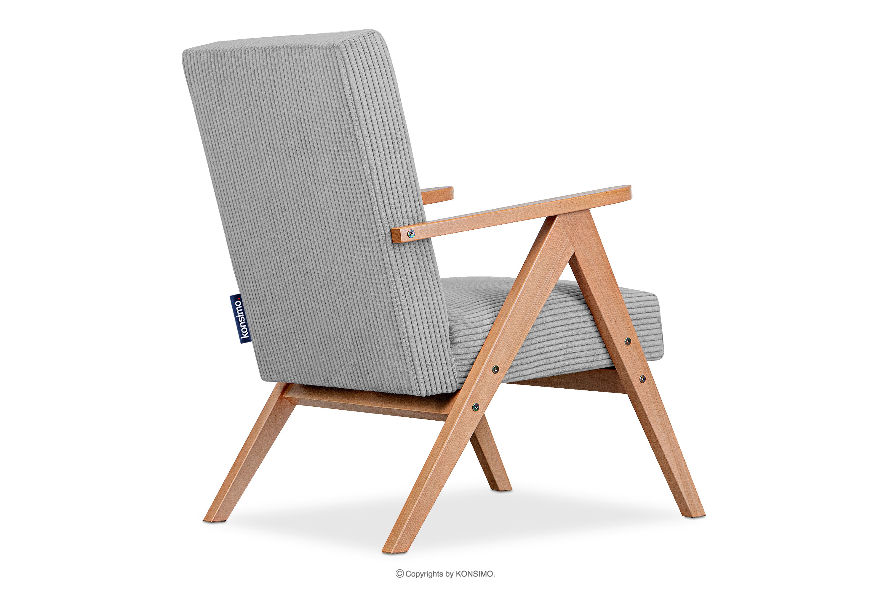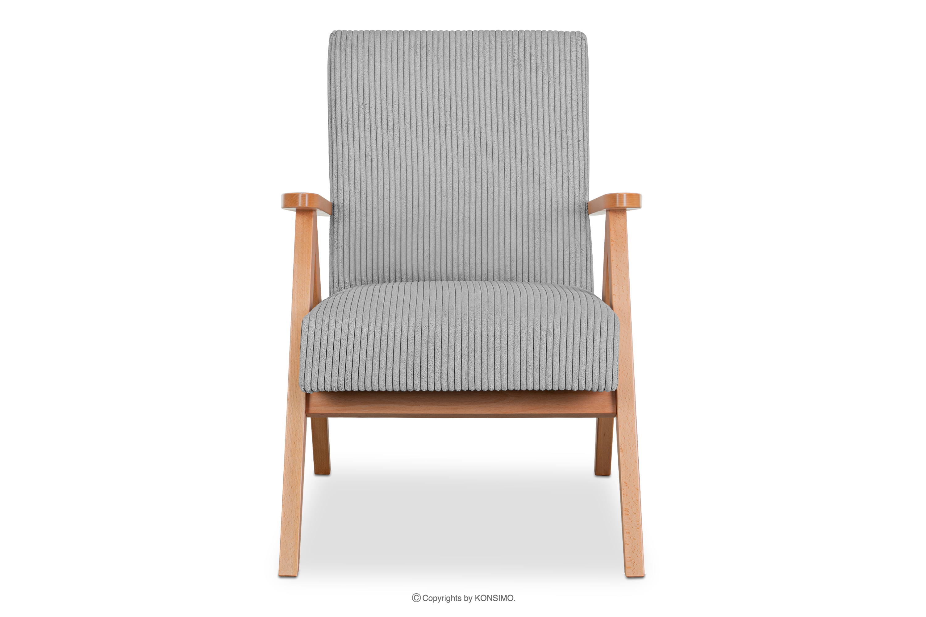 NASET zobacz całą kolekcję Fotel vintage w tkaninie sztruks popielaty/jasny dąb- kolor popielaty/jasny dąb