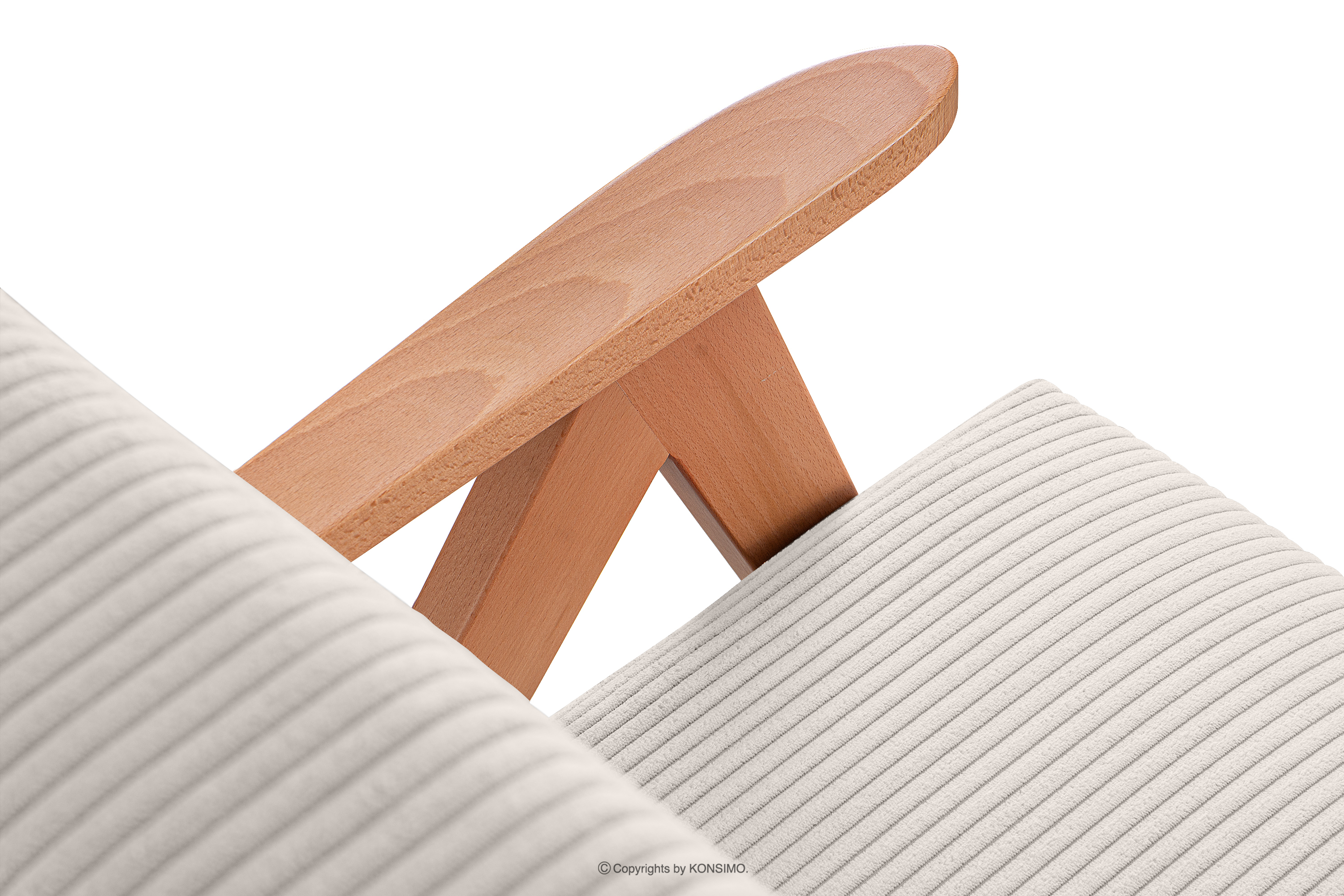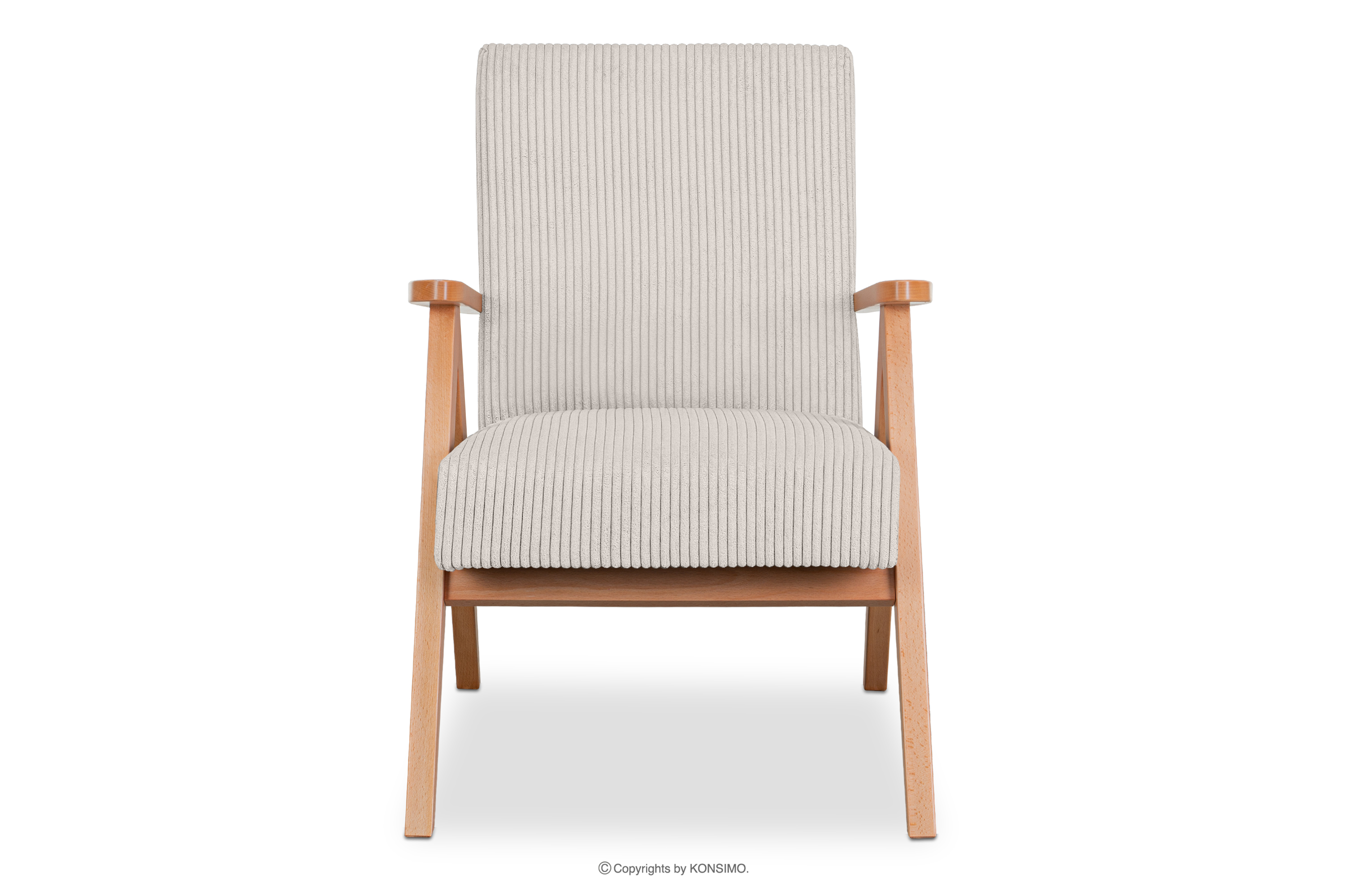 NASET zobacz całą kolekcję Fotel vintage w tkaninie sztruks kremowy/jasny dąb- kolor kremowy/jasny dąb