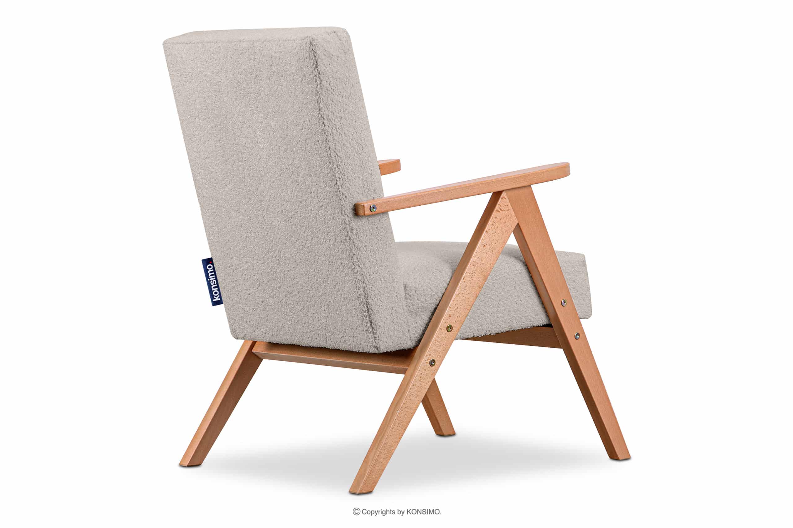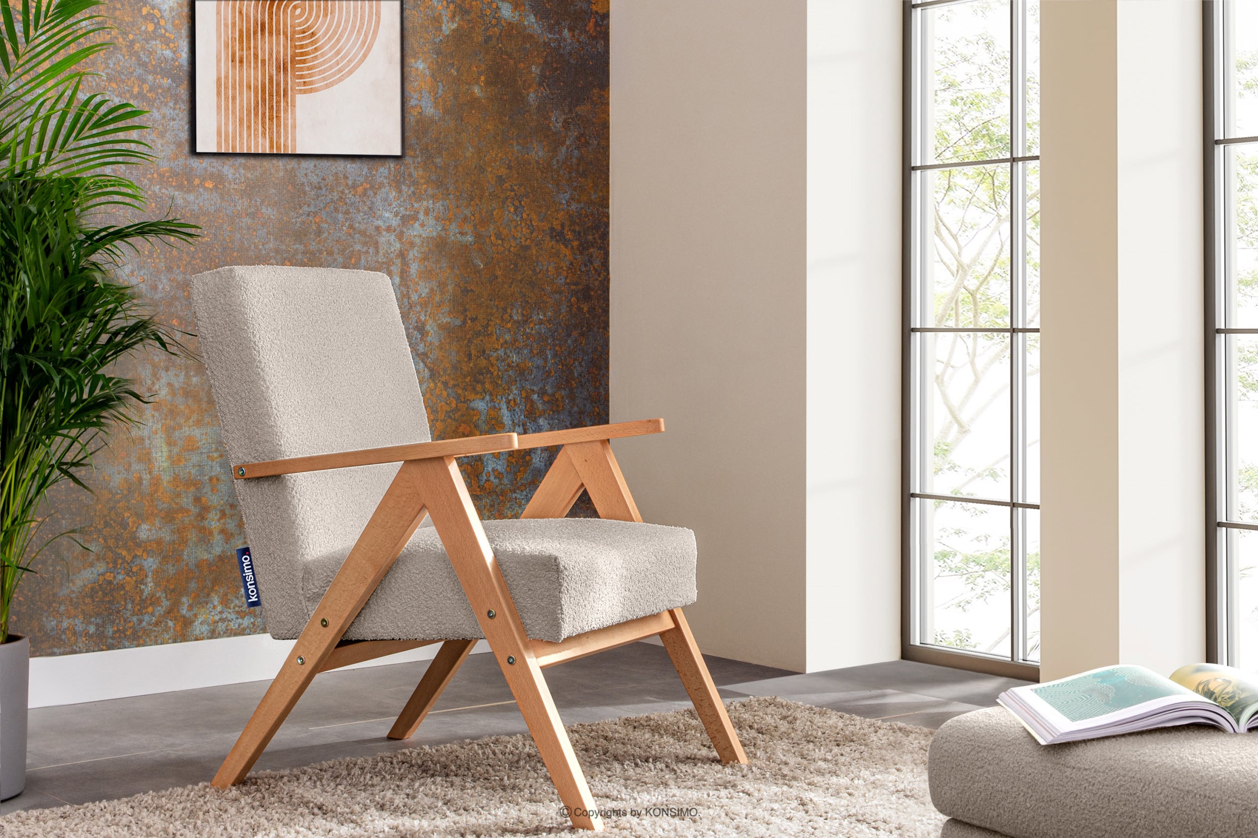 NASET zobacz całą kolekcję Fotel w stylu PRL tkanina baranek beżowy- kolor beżowy/jasny dąb