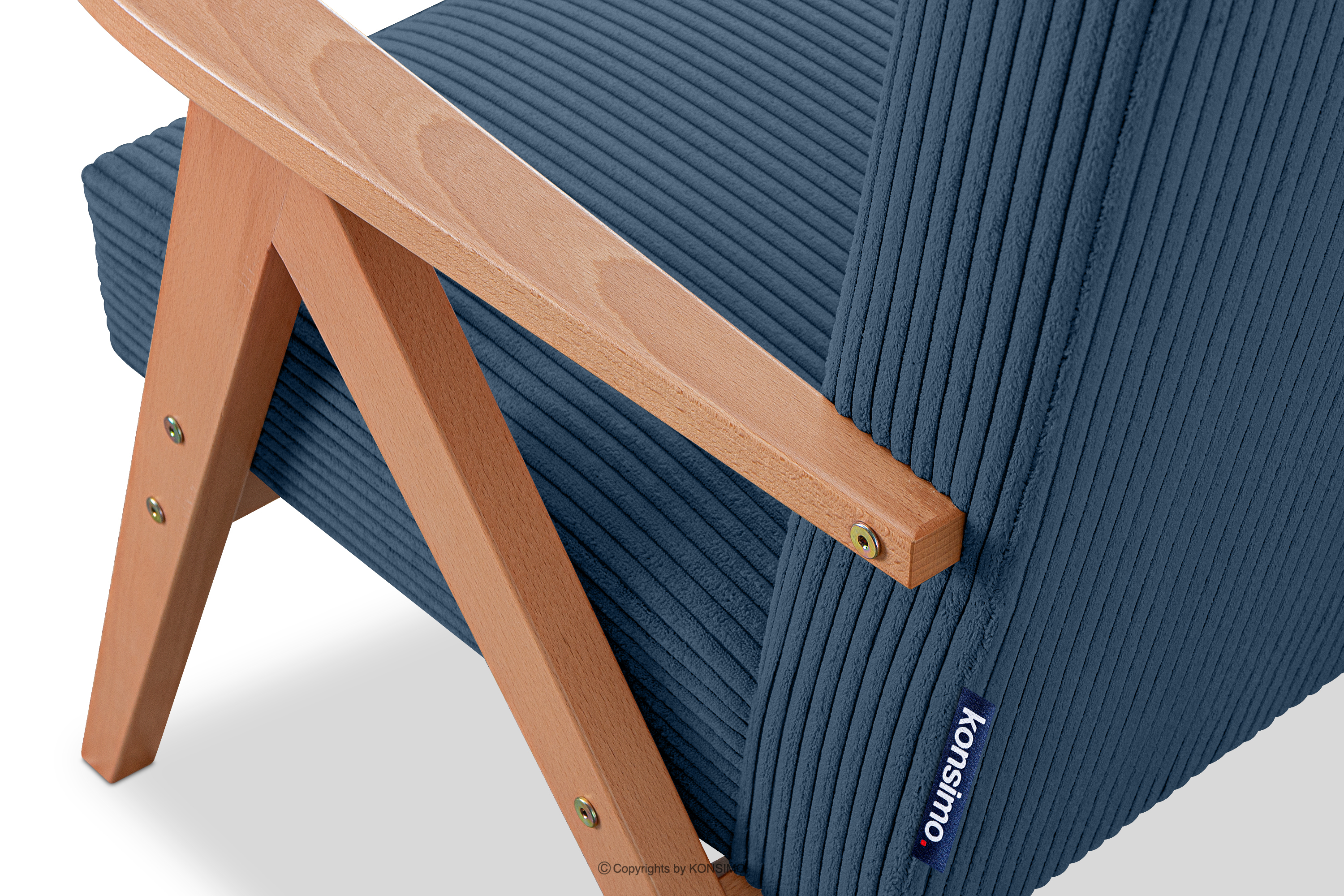 NASET zobacz całą kolekcję Fotel vintage w tkaninie sztruks ciemny ciemny niebieski/jasny dąb- kolor ciemny niebieski/jasny dąb