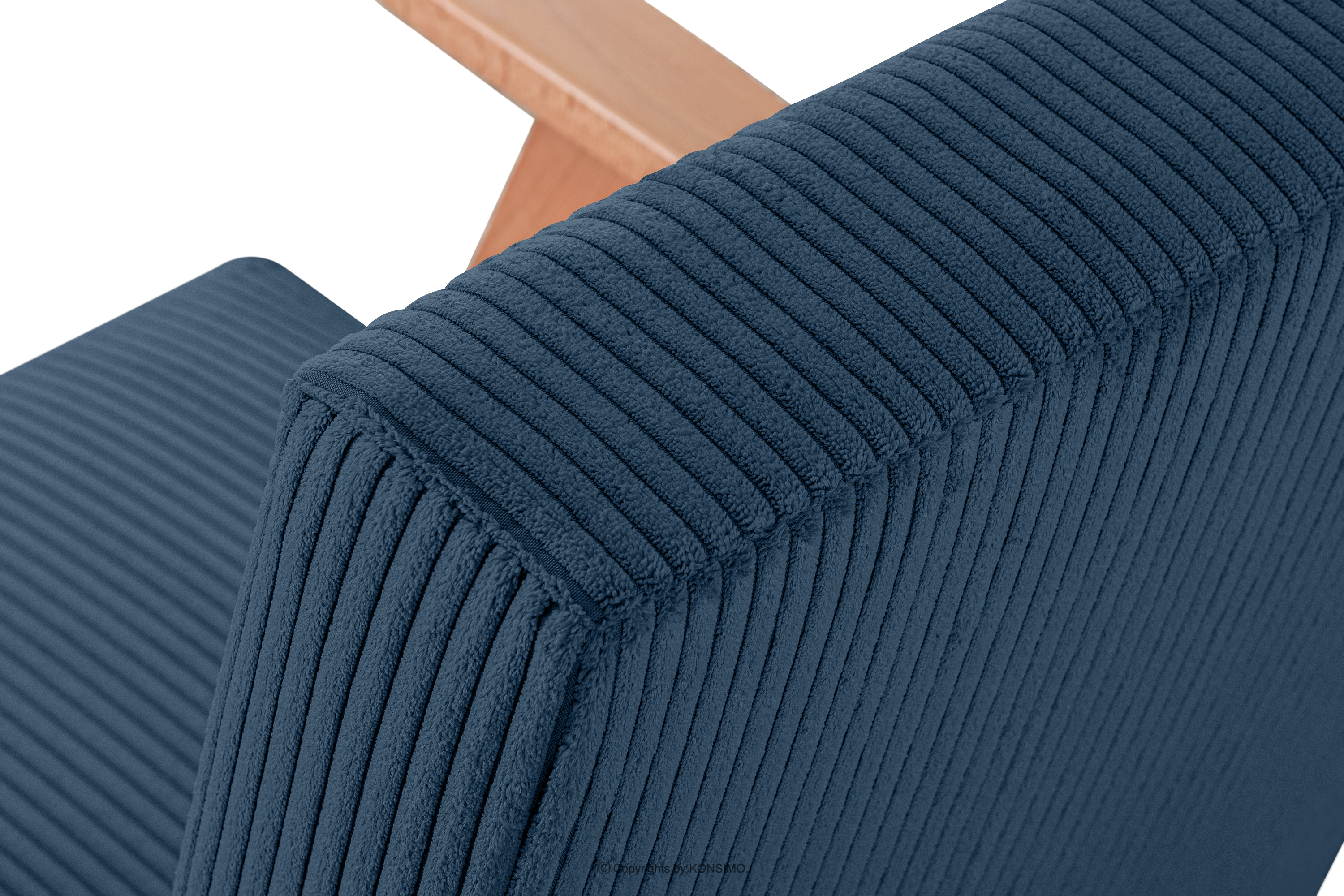 dla produktu Fotel vintage w tkaninie sztruks ciemny ciemny niebieski/jasny dąb