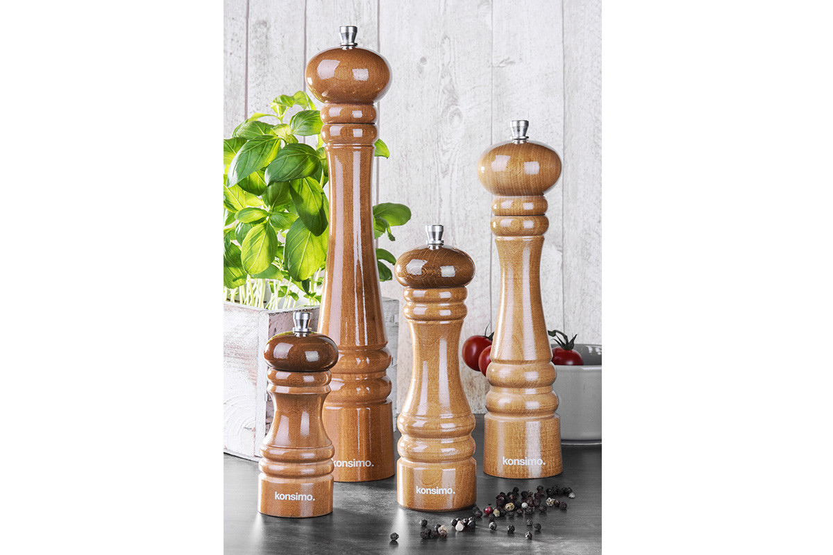 - Dodatkowe informacje: Drewniany młynek jest szczelny, ale niehermetyczny, dopuszczone powietrze podkreśla walory przypraw, Nie kłaść na mokrej powierzchni, Uwaga! Młynków z solą nie należy zostawiać na wilgotnych powierzchniach – sól może wchłonąć wilgoć, która dostanie się do wnętrza młynka