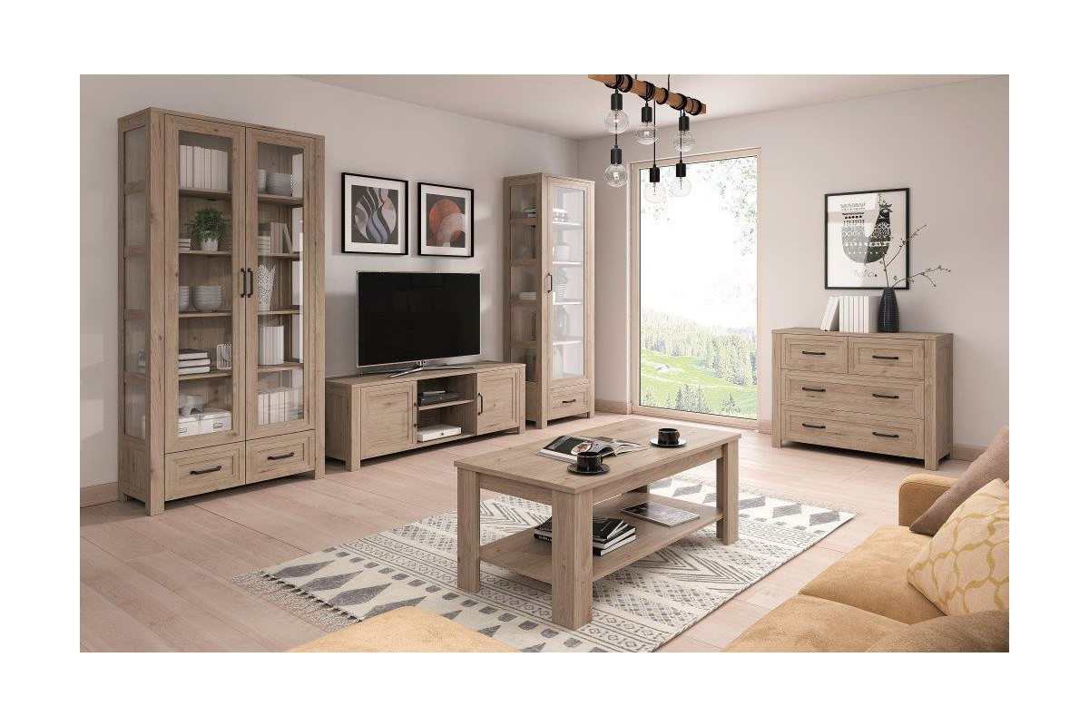 EDENO zobacz całą kolekcję Szafka rtv z podwójnymi półkami dąb- kolor dąb naturalny