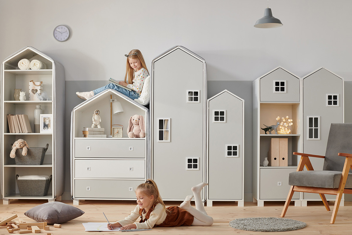 Dzieci najlepiej czują się w kolorowym, łagodnym otoczeniu. To właśnie w takich warunkach chcą się uczyć, bawić i odpoczywać. Szafa z daszkiem świetnie prezentuje się samodzielnie, a w kompozycji z innymi meblami dziecięcymi MRIUM tworzy magiczną uliczkę domków. Dziecięcą wyobraźnię pobudzają jedyne w swoim rodzaju uchwyty-okienka. Pokryte miękkim i bezpiecznym tworzywem, są wyjątkowo przyjemne w dotyku i wygodne. Ta niezwykła szafa dziecięca stanie się nie tylko funkcjonalnym meblem, ale też wspaniałą dekoracją pokoju przedszkolaka i ucznia.