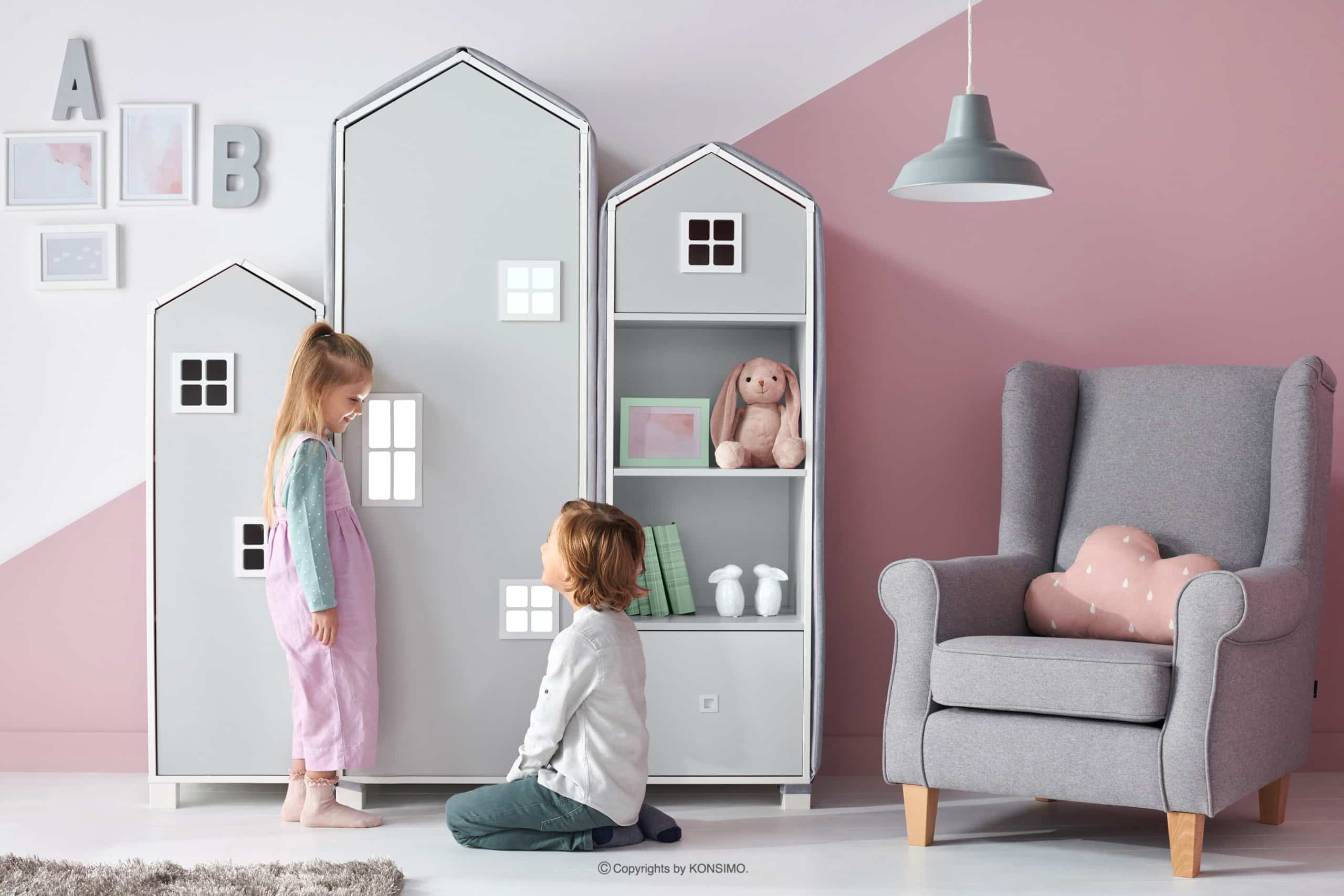 Specjaliści Konsimo wiedzą, że najważniejsze w dziecięcym pokoju jest bezpieczeństwo. Zestaw meble domki dla dzieci szare 6 elementów został zaprojektowany i wyprodukowany w Polsce. Wyróżniają się niezwykłym designem oraz jakością. Pryzma daszku jest w stanie wytrzymać obciążenie, aż do 120 kg. Dzięki temu meble dziecięce z tej kolekcji stają się bezpiecznym placem zabaw – można na nie wejść, usiąść na nich i bawić się swobodnie bez obaw!