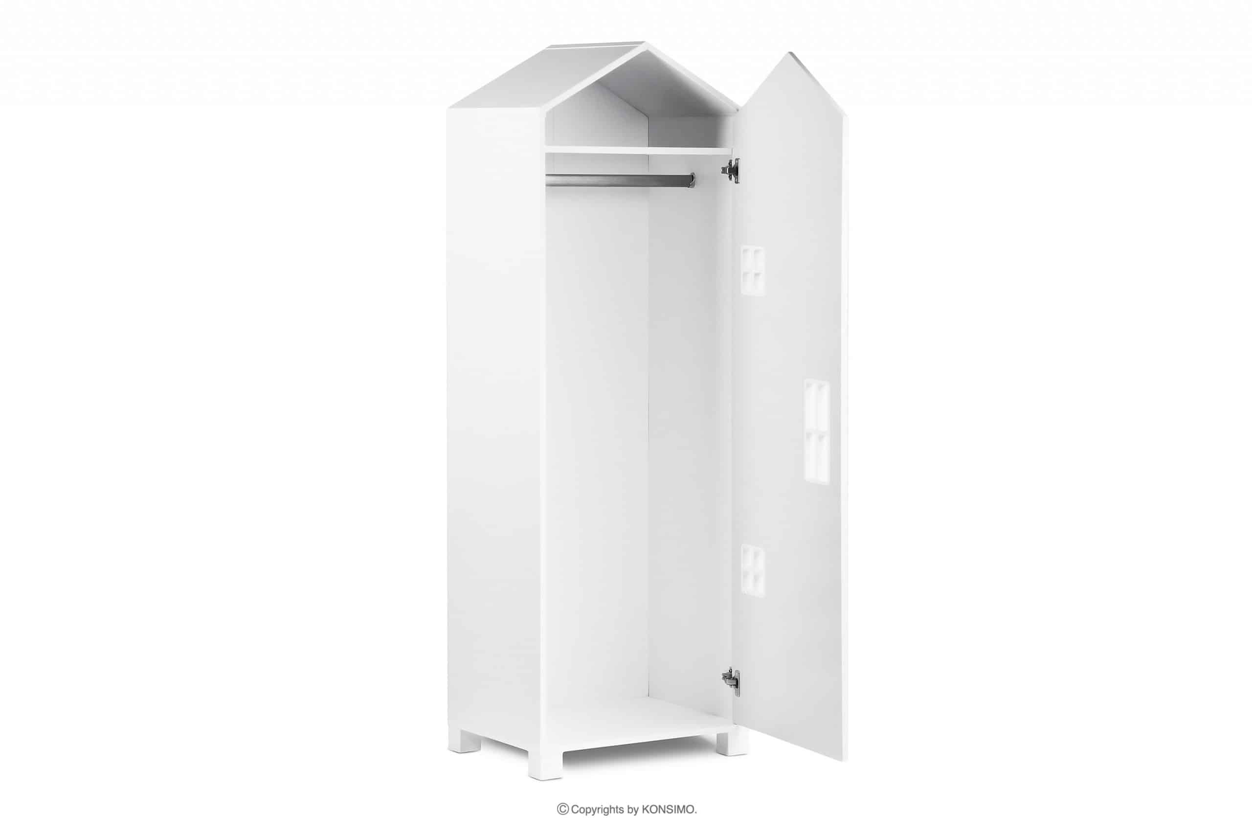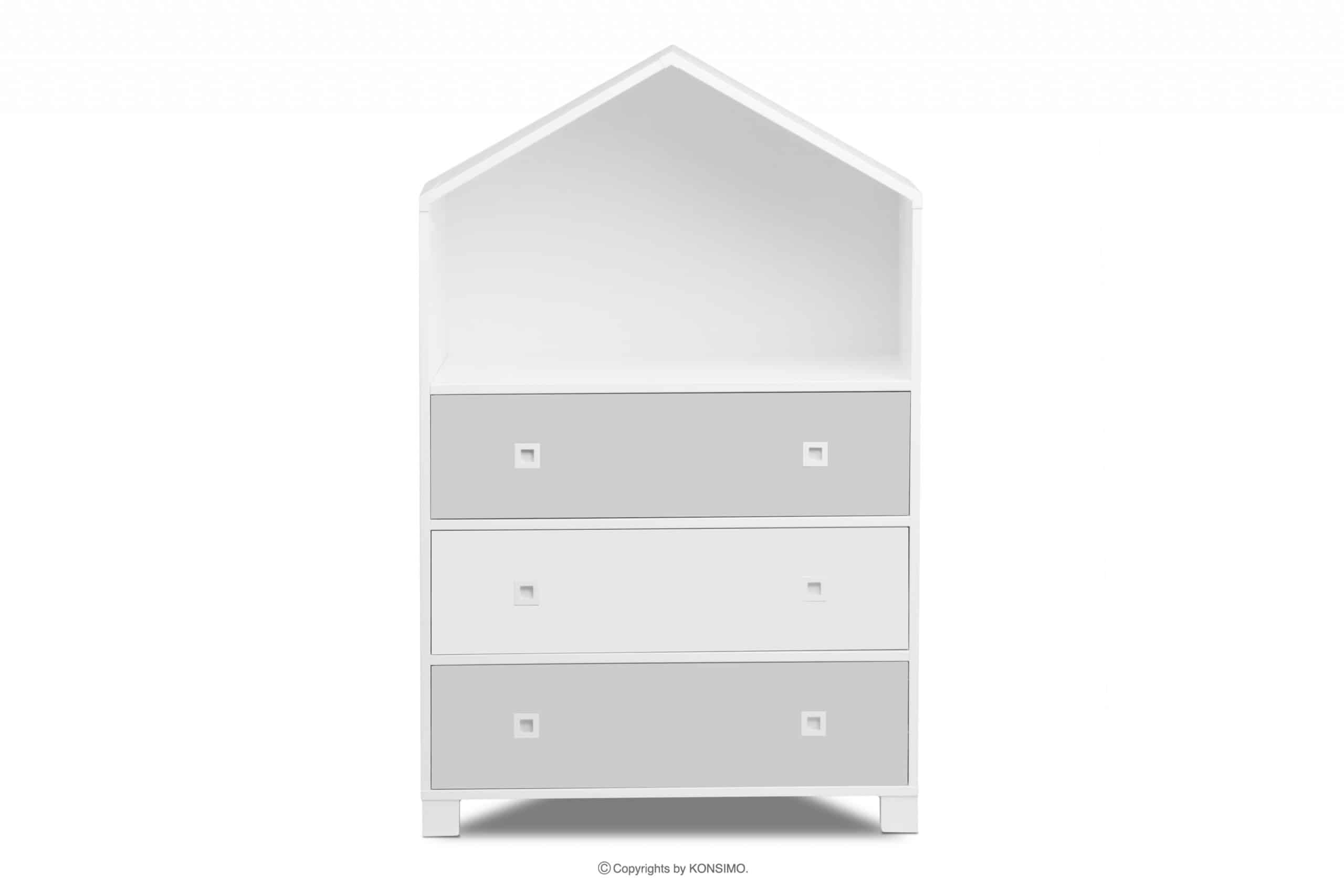 Bajkowa uliczka domków we własnym pokoju – to marzenie każdego dziecka! Wygodnie otwierane szuflady zamiast uchwytów posiadają malutkie okienka. Dwustronnie kolorowa płyta sprawia, iż komoda z daszkiem ładnie wygląda zarówno na zewnątrz, jak i w środku. Tak urządzone, magiczne wnętrze dziecięcego pokoiku tworzy doskonałe warunki do zabawy, nauki i odpoczynku! Co najważniejsze, dziecko poczuje się jak w prawdziwym, bajkowym świecie