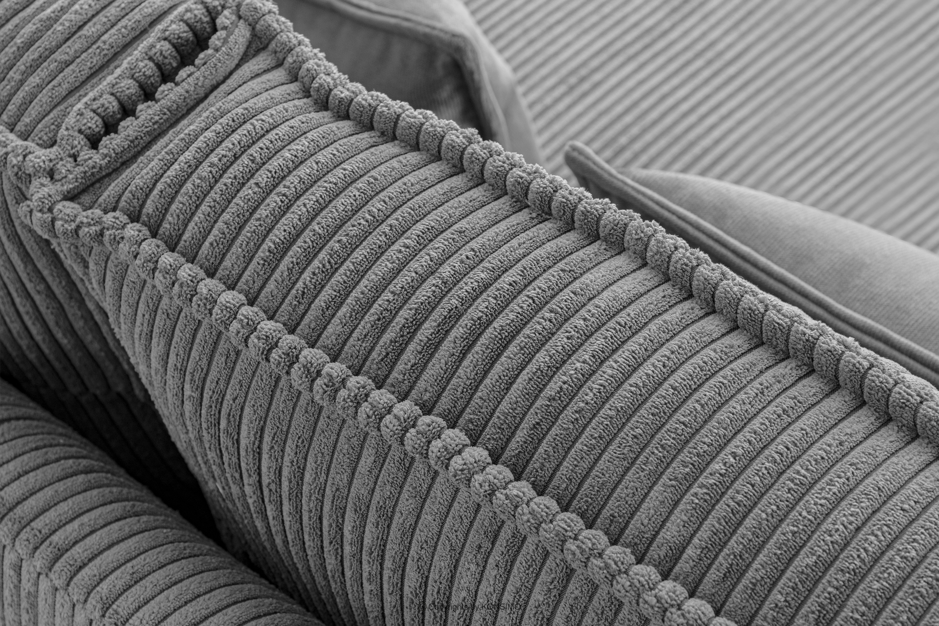 Sztruksowa tkanina użyta do obicia mebla jest niezwykle przyjemna w dotyku, zapewniając wyjątkowy komfort podczas użytkowania.