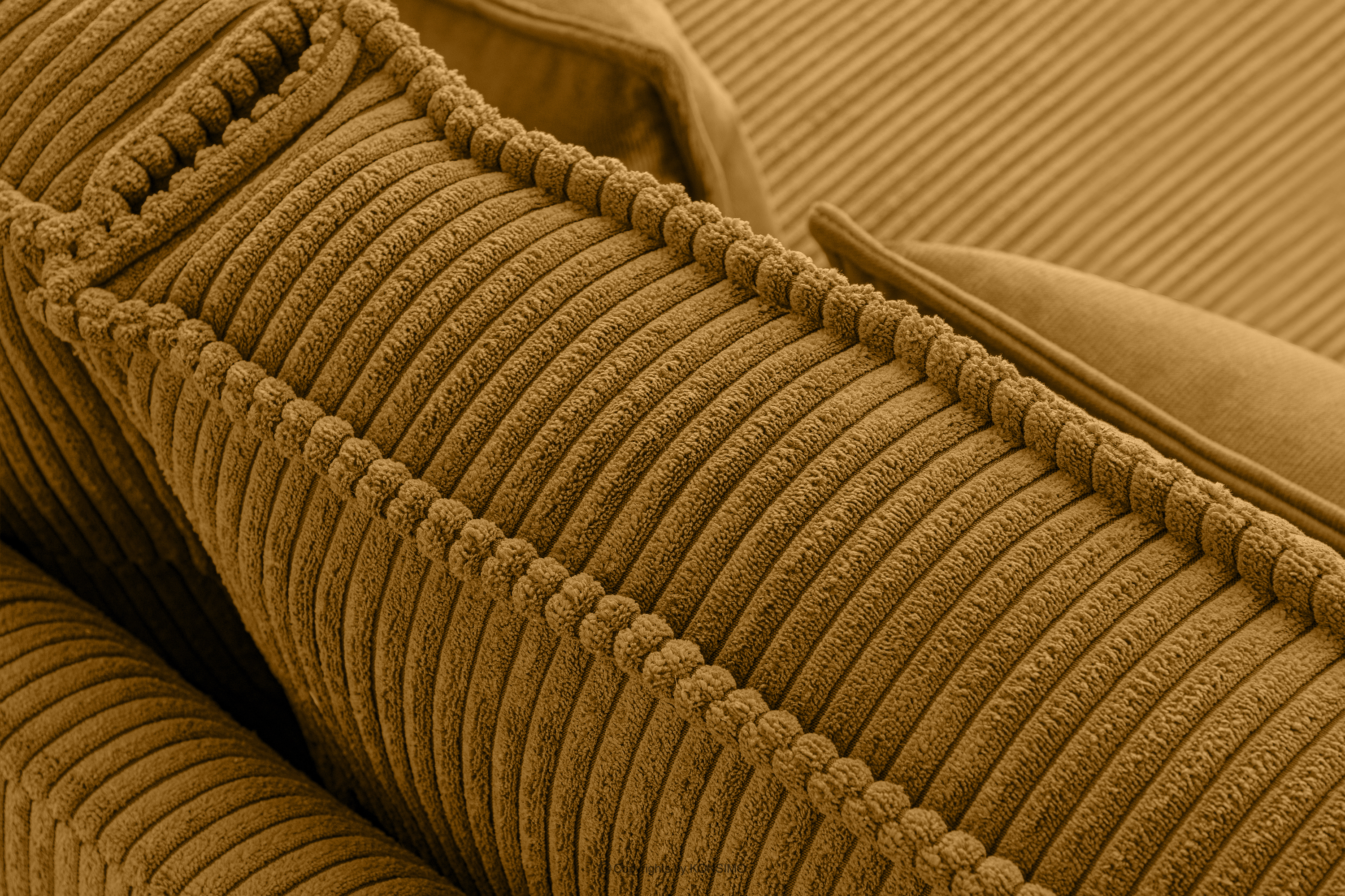 Sztruksowa tkanina użyta do obicia mebla jest niezwykle przyjemna w dotyku, zapewniając wyjątkowy komfort podczas użytkowania.