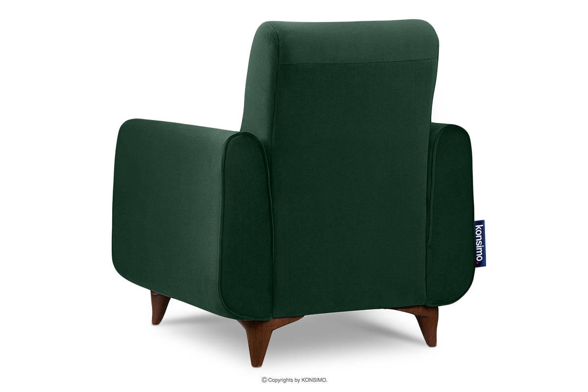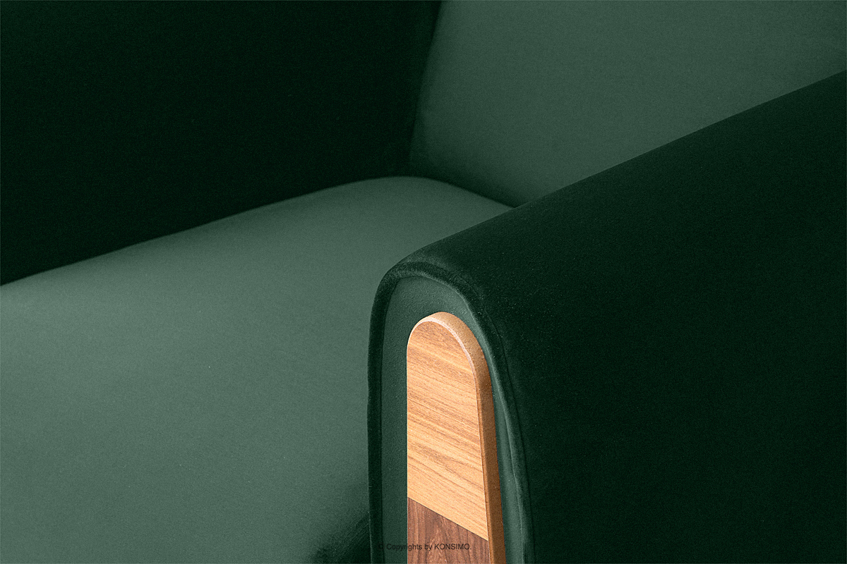 Zielony fotel do salonu welur to mebel w stylu vintage. Został wykonany tak, by spełniał najwyższe oczekiwania. Design inspirowany był czasami PRL, ale nasi designerzy zdecydowali się dodatkowo na wstawki, które są inspirowane skandynawskim stylem. GUSTAVO jest obity tkaniną welurową z każdej strony, łącznie z tyłem, co także go wyróżnia, ponieważ meble o podobnej budowie, mają zwykle czarny zwykły materiał w tym miejscu.