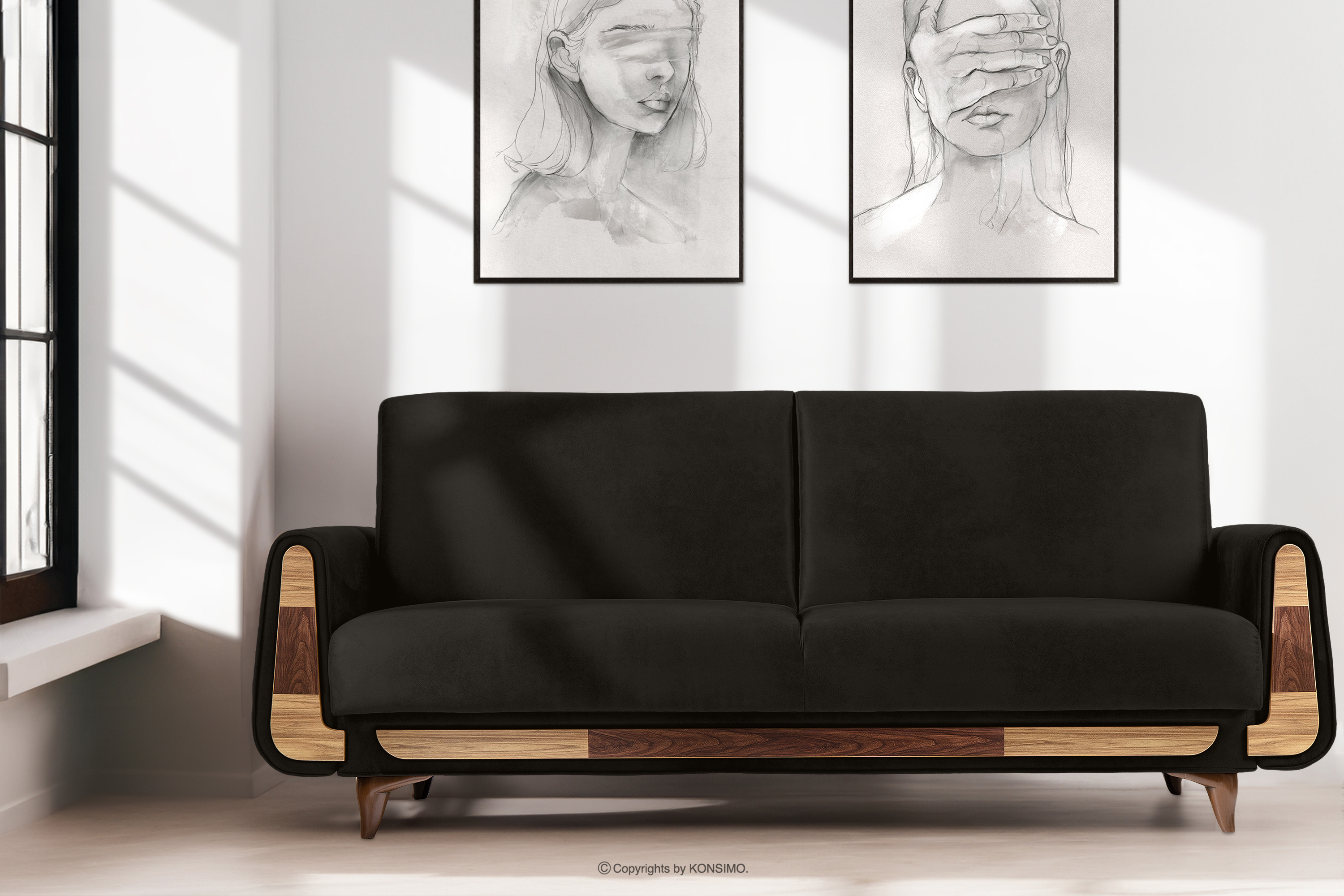 GUSTAVO II zobacz całą kolekcję Sofa trzyosobowa rozkładana imitacja zamszu antracytowy- kolor antracytowy