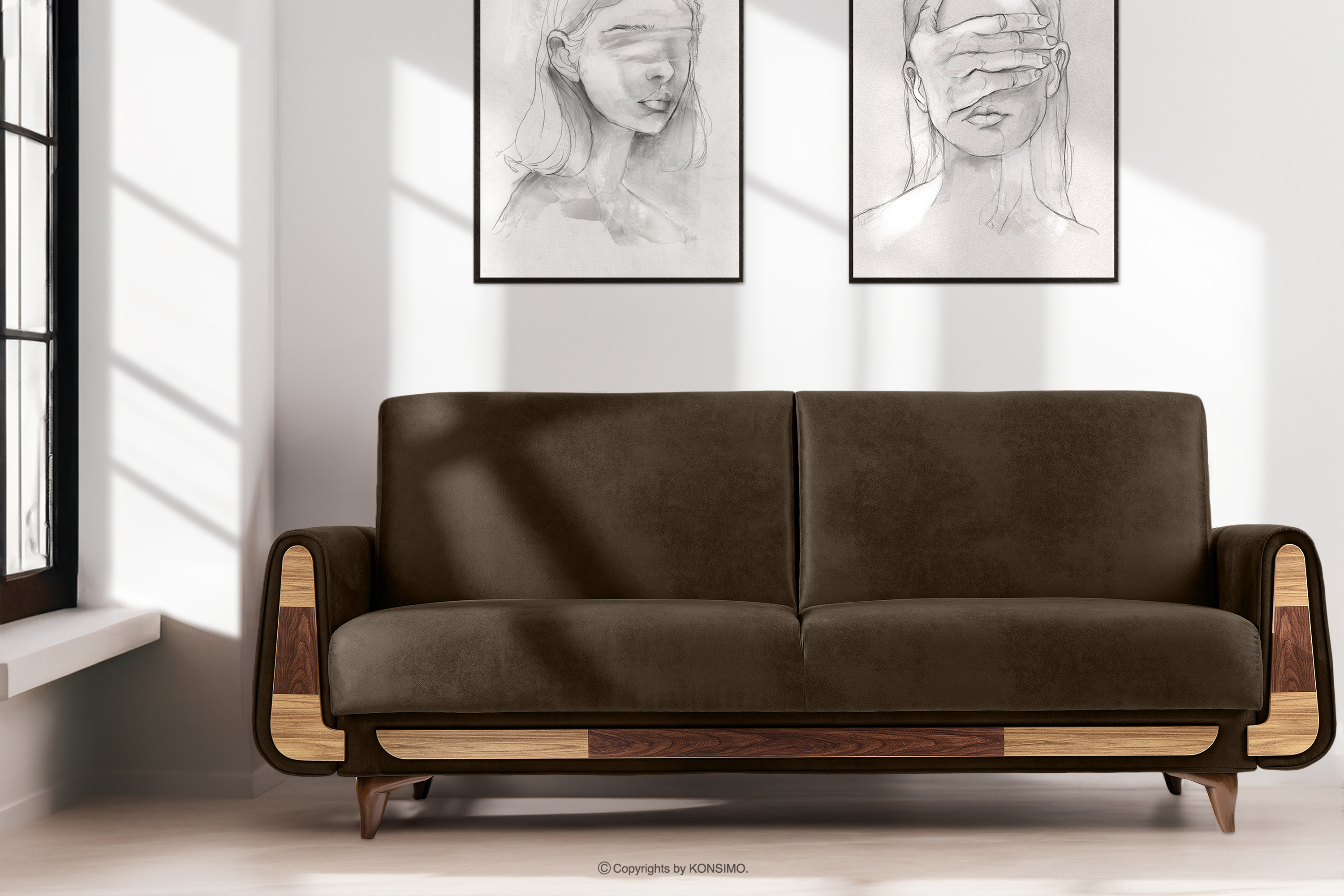 GUSTAVO II zobacz całą kolekcję Sofa trzyosobowa rozkładana imitacja zamszu brązowy- kolor brązowy
