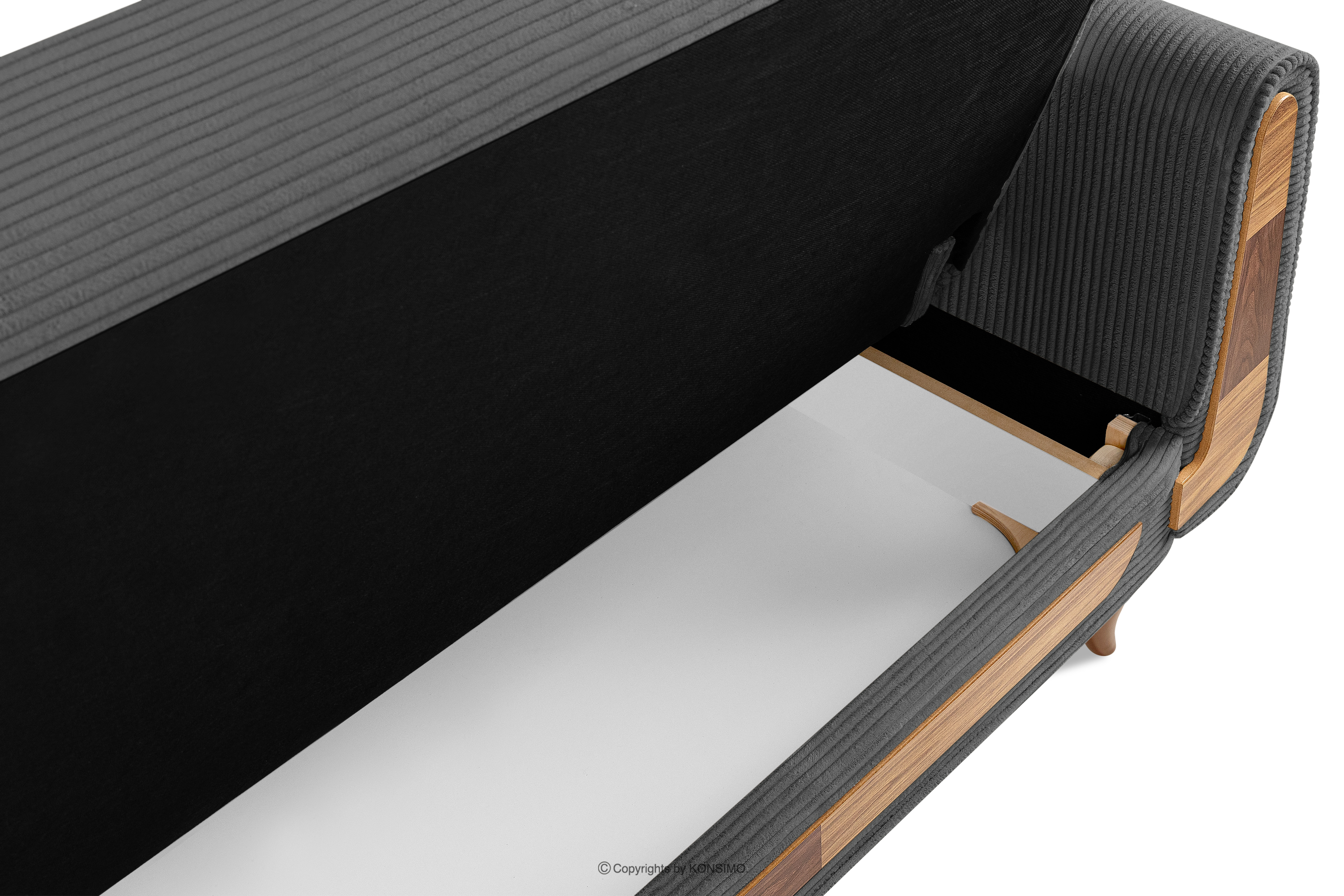 GUSTAVO II zobacz całą kolekcję Sofa trzyosobowa rozkładana w tkaninie sztruks ciemny szary- kolor ciemny szary