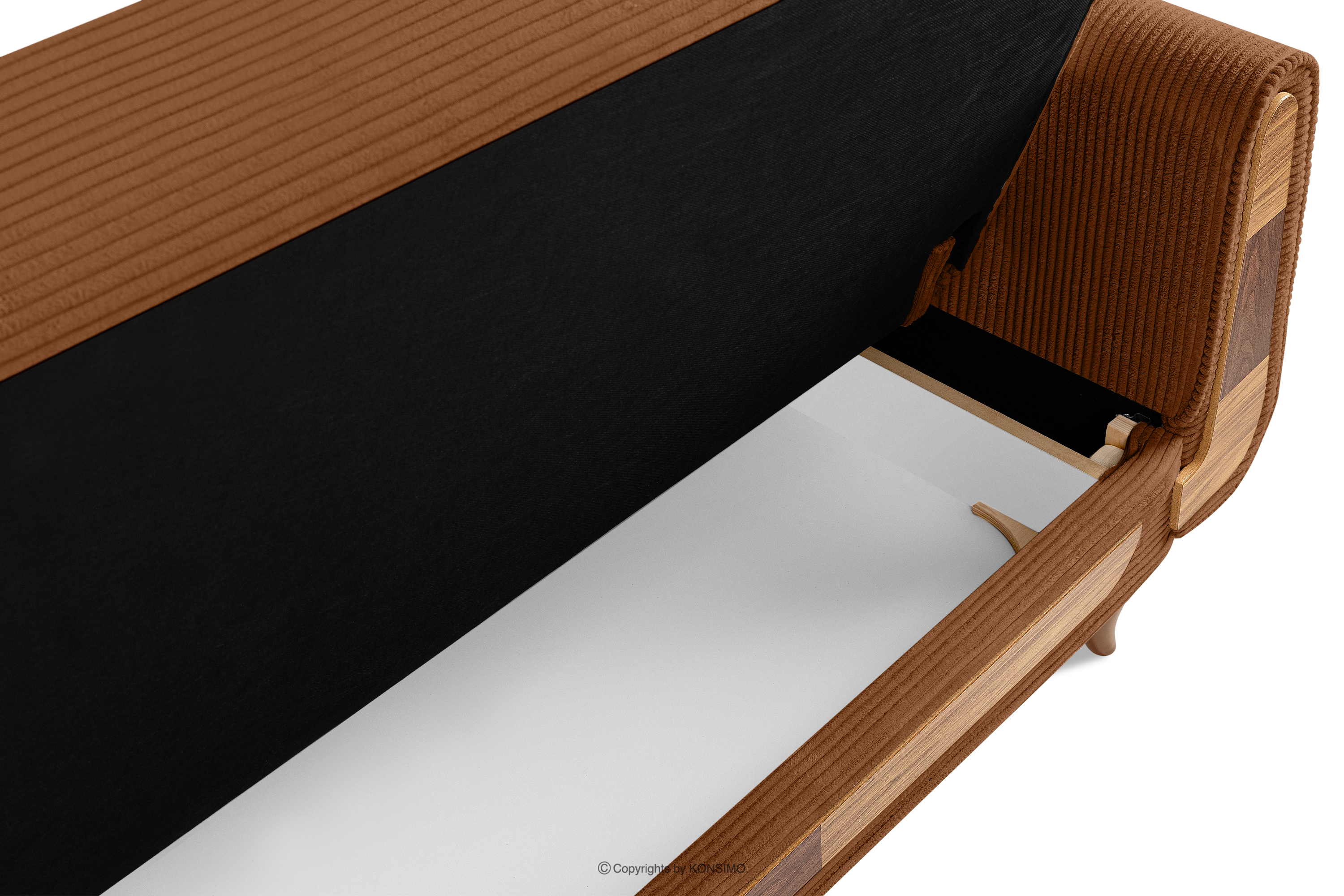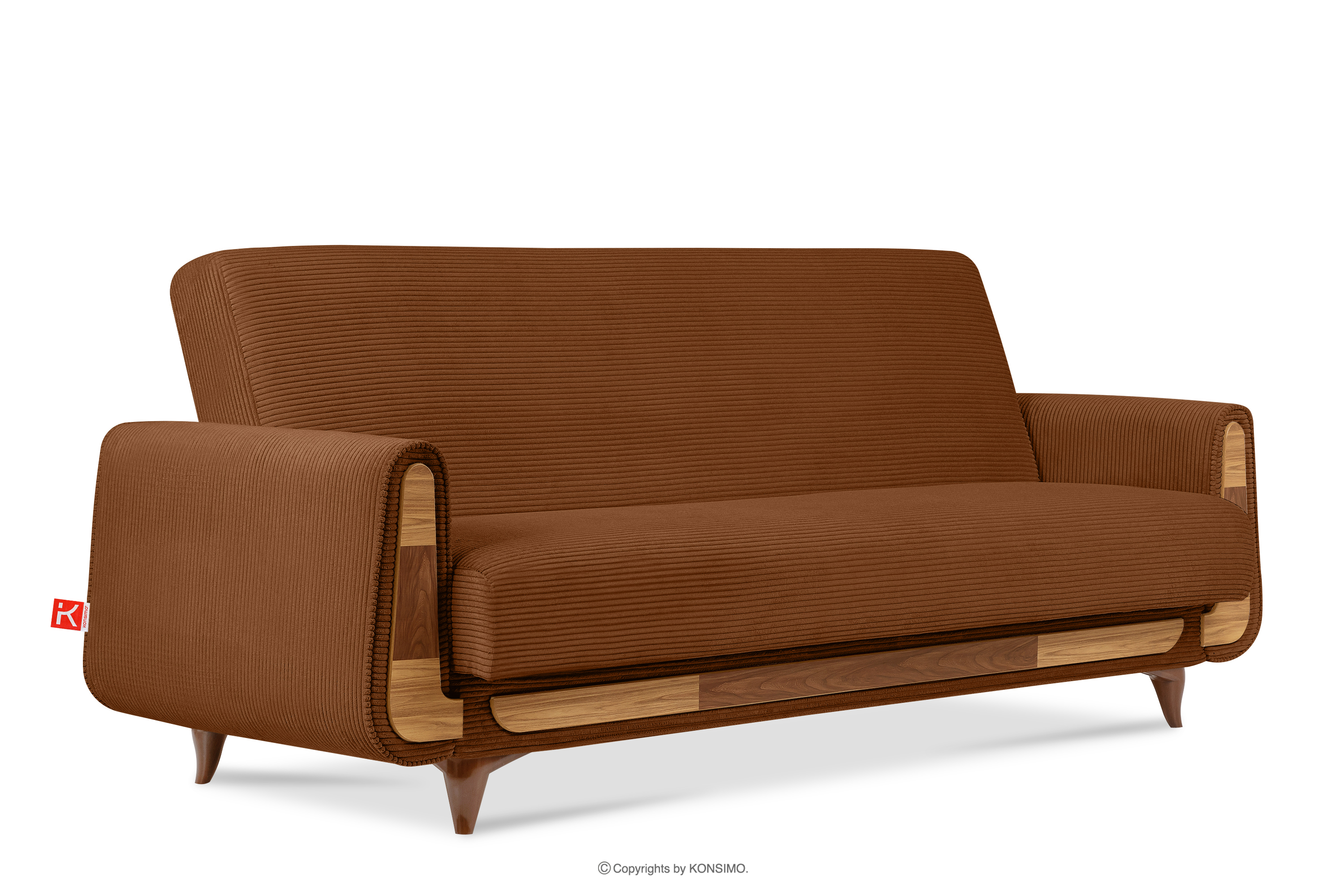 GUSTAVO II zobacz całą kolekcję Sofa trzyosobowa rozkładana w tkaninie sztruks rudy- kolor rudy