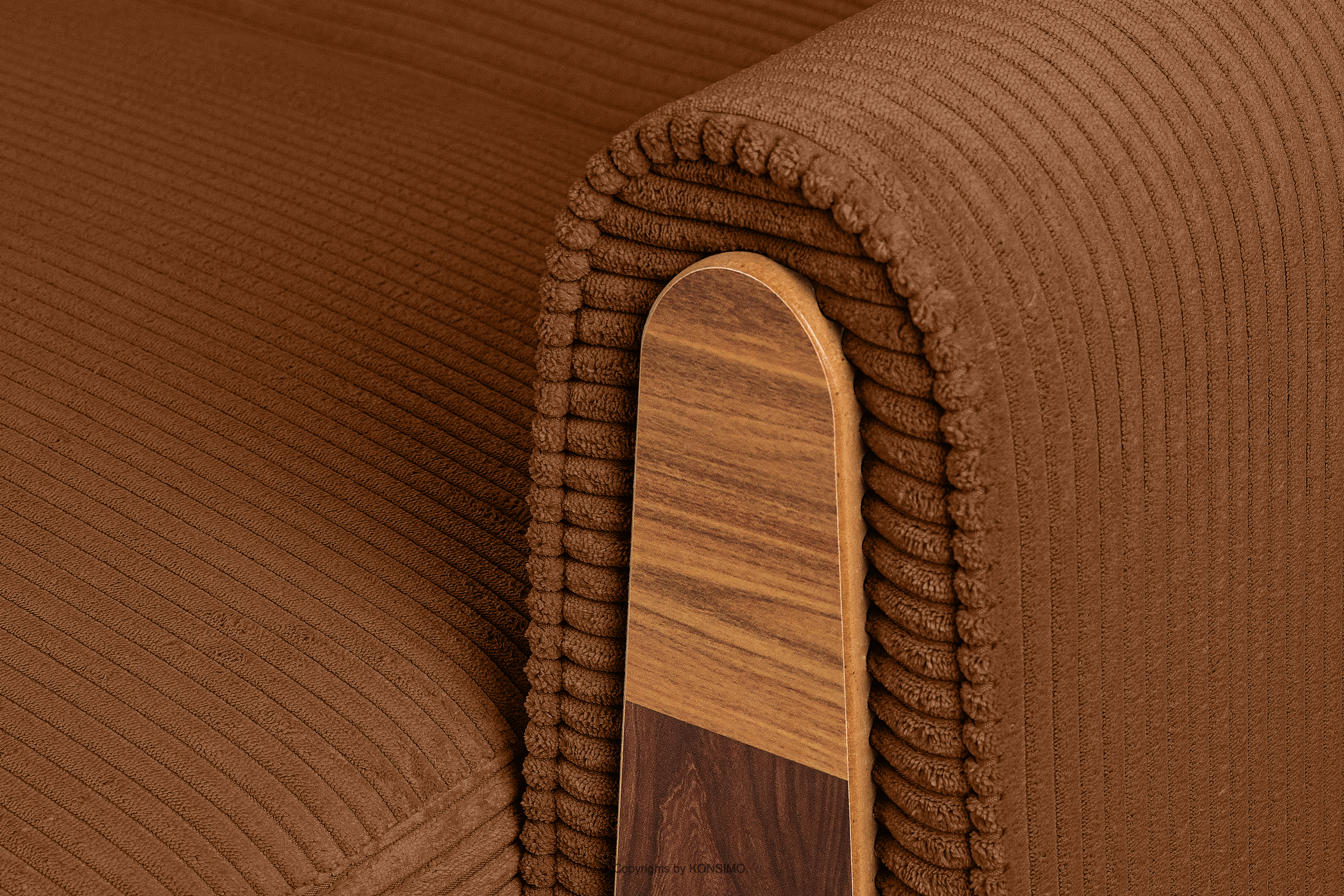 dla produktu Sofa trzyosobowa rozkładana w tkaninie sztruks rudy