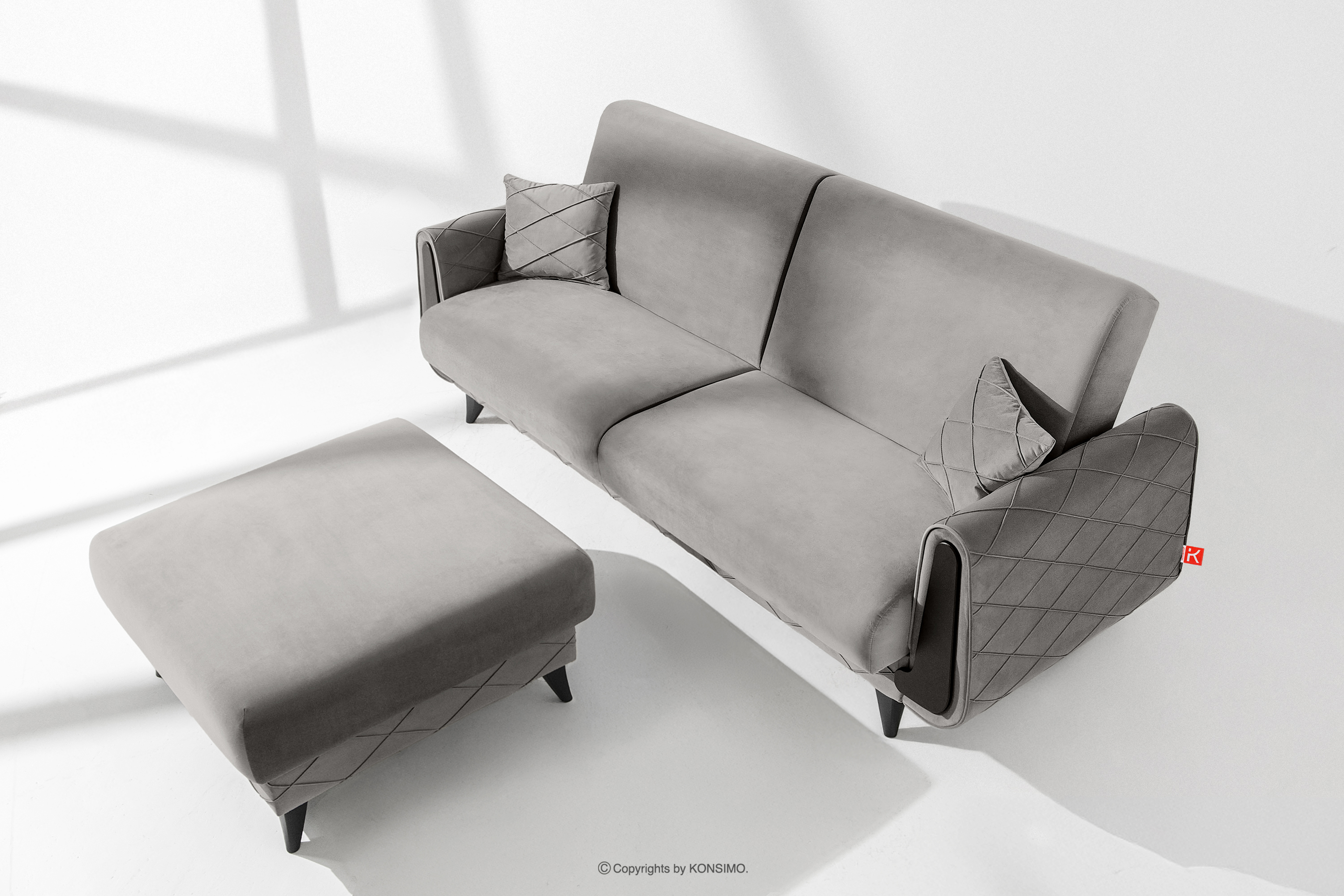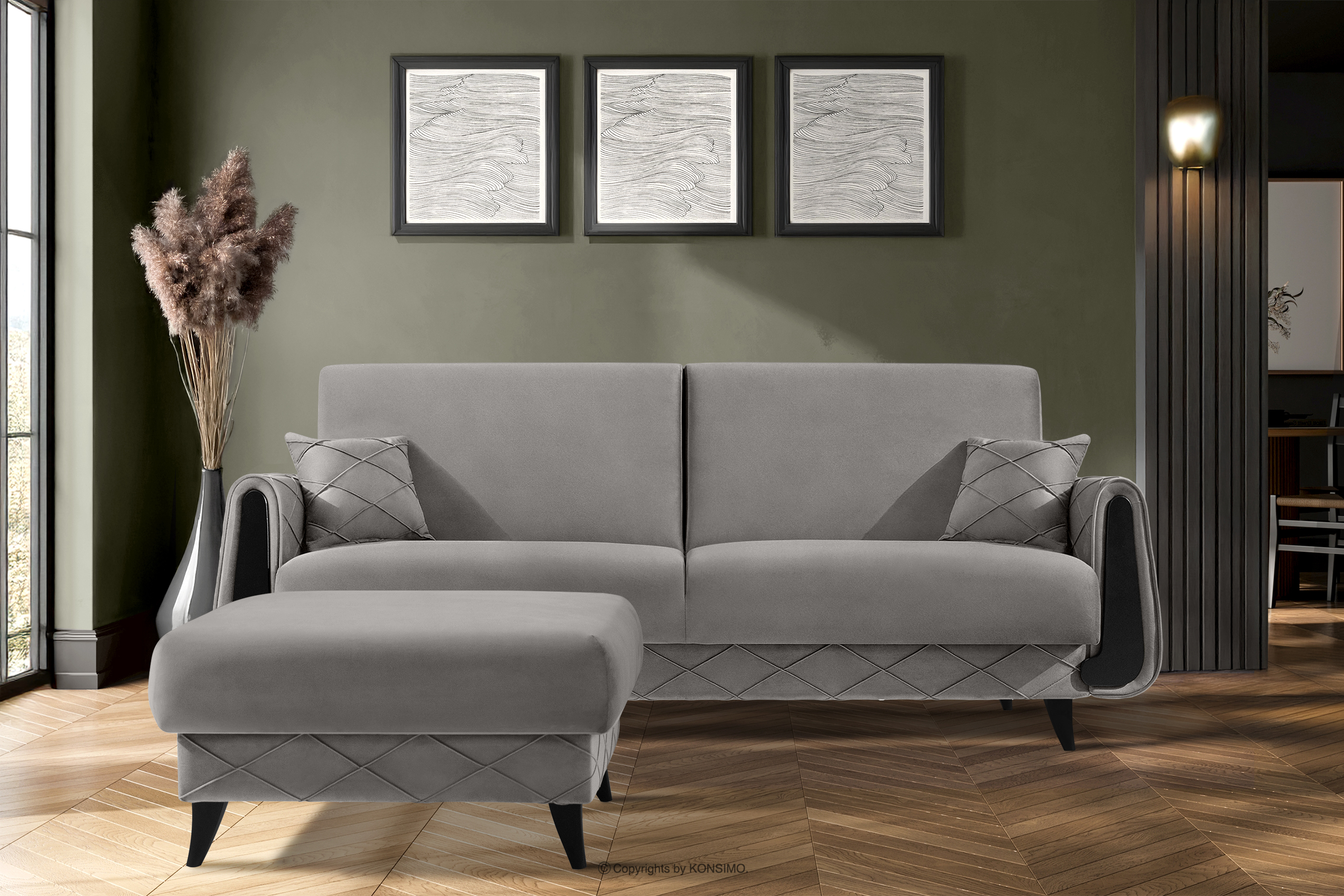 GUSTAVO III zobacz całą kolekcję Sofa trzyosobowa w tkaninie welur rozkładana jasny szary- kolor jasny szary